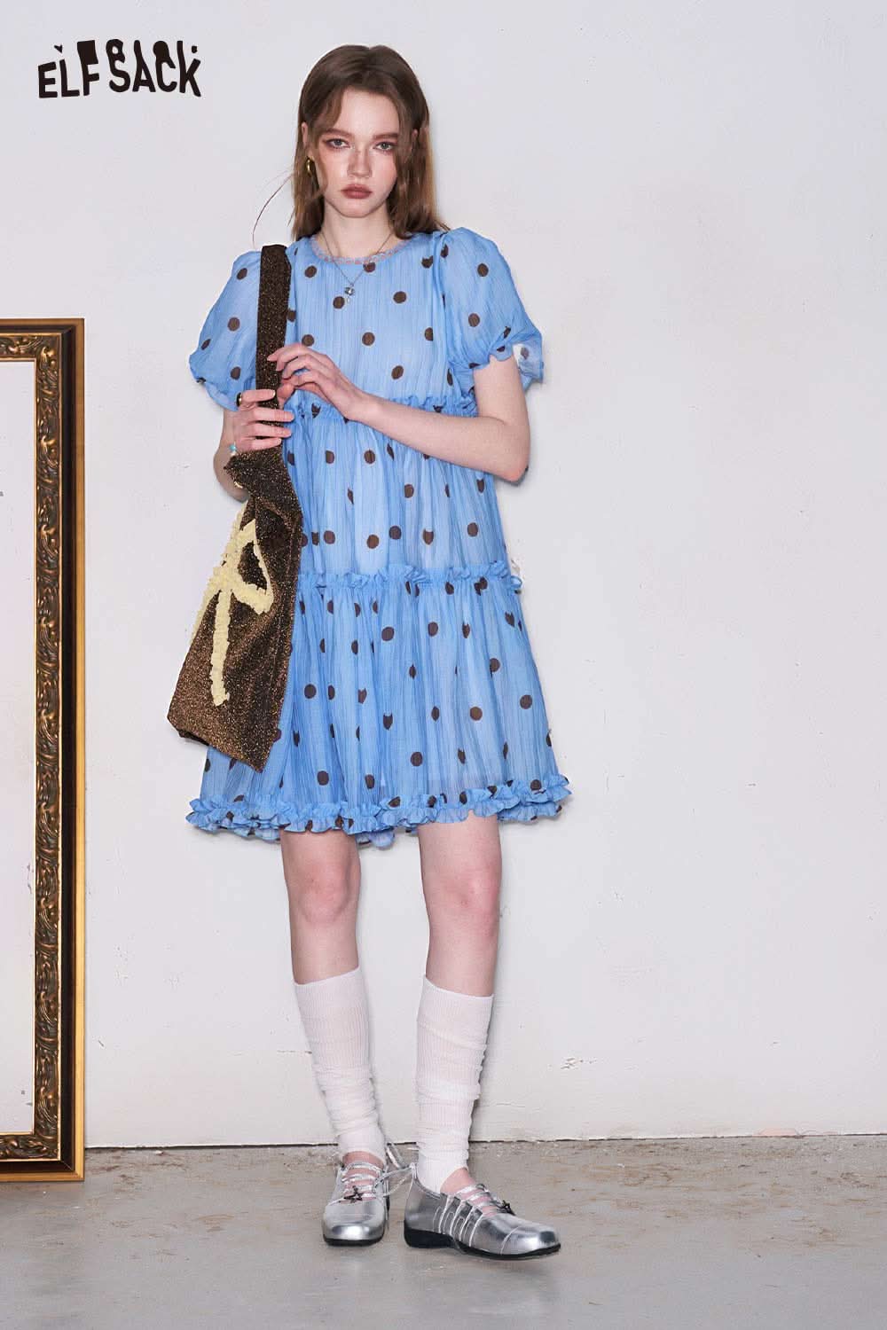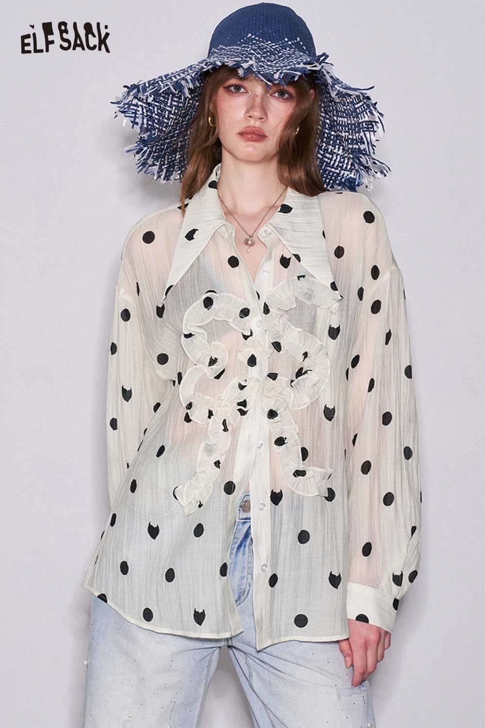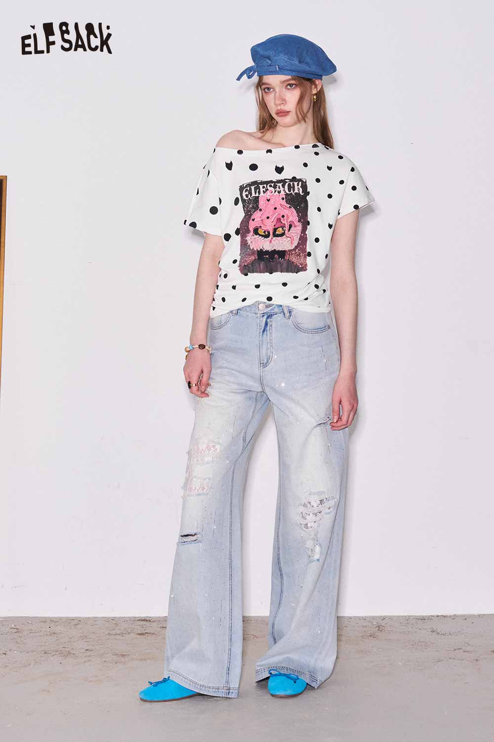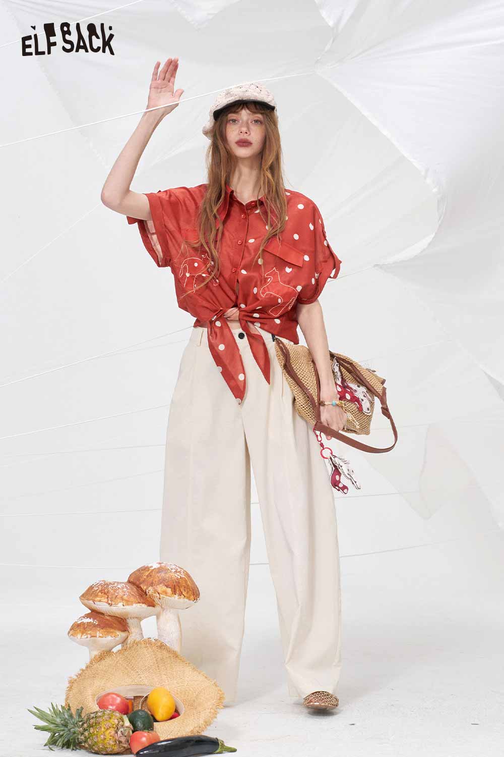 Pantalones de pernera ancha con estampado de lunares y cordón en la cintura