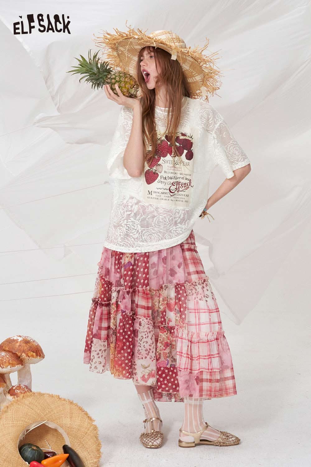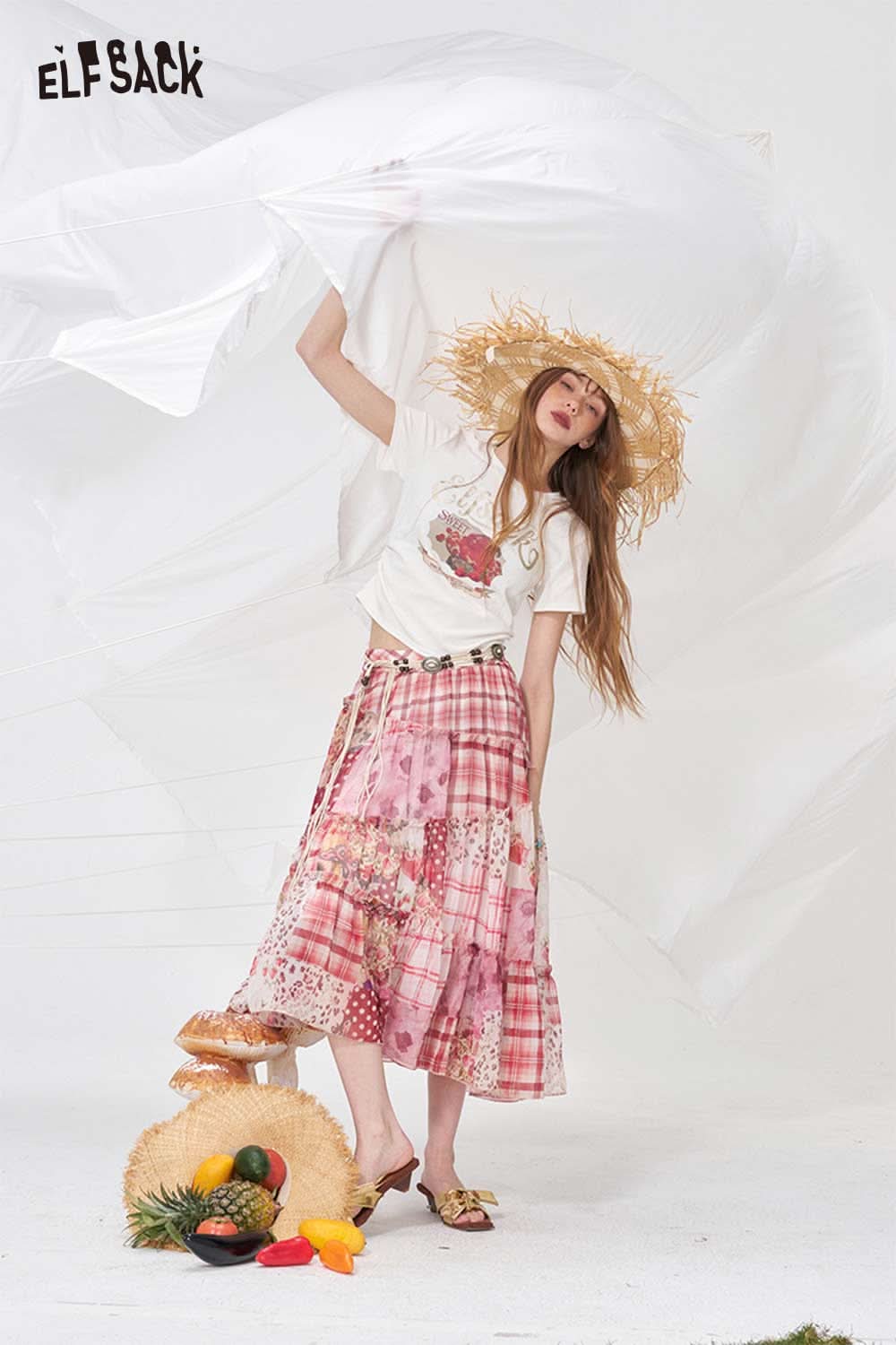 Falda Larga Escalonada de Estilo Rústico con Retales