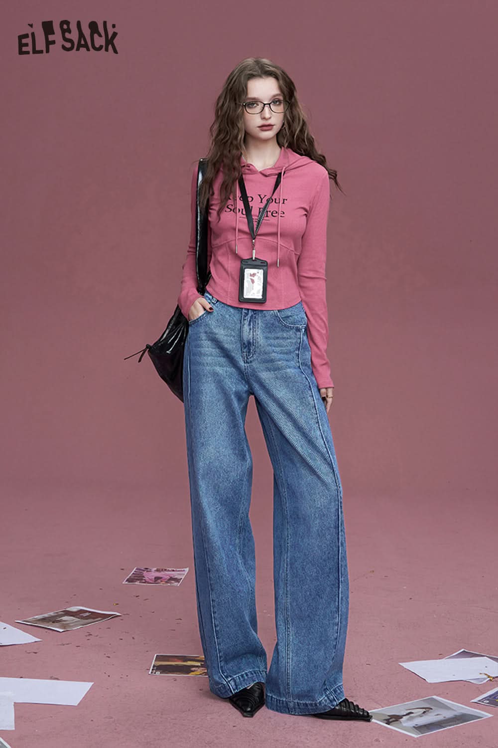 Retro washed mysterious black retro straight deconstructed loose design wide-leg jeans