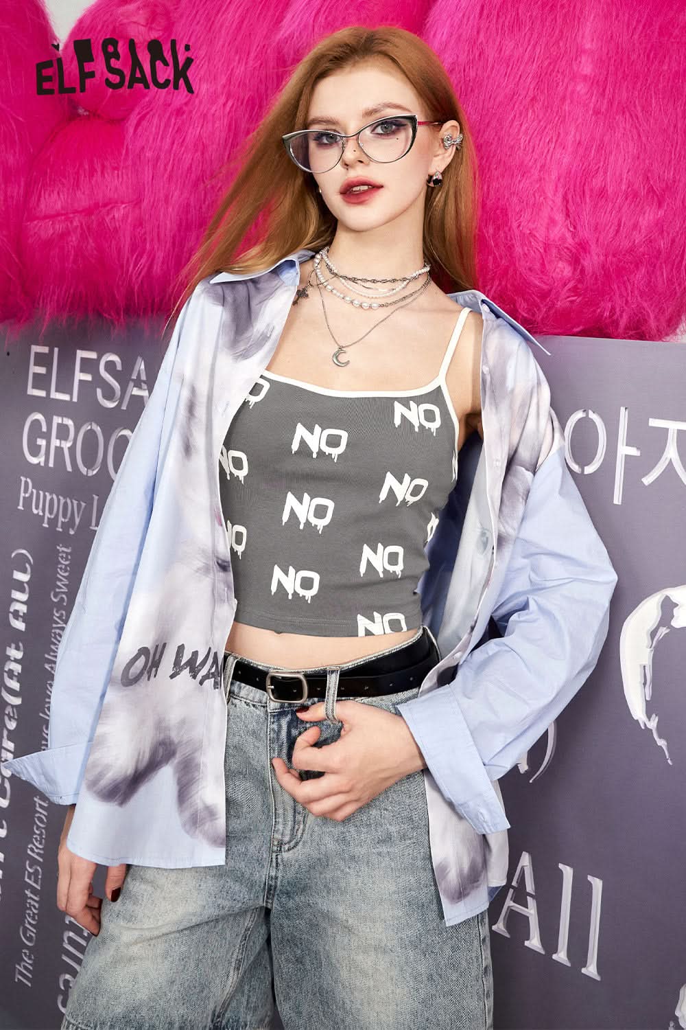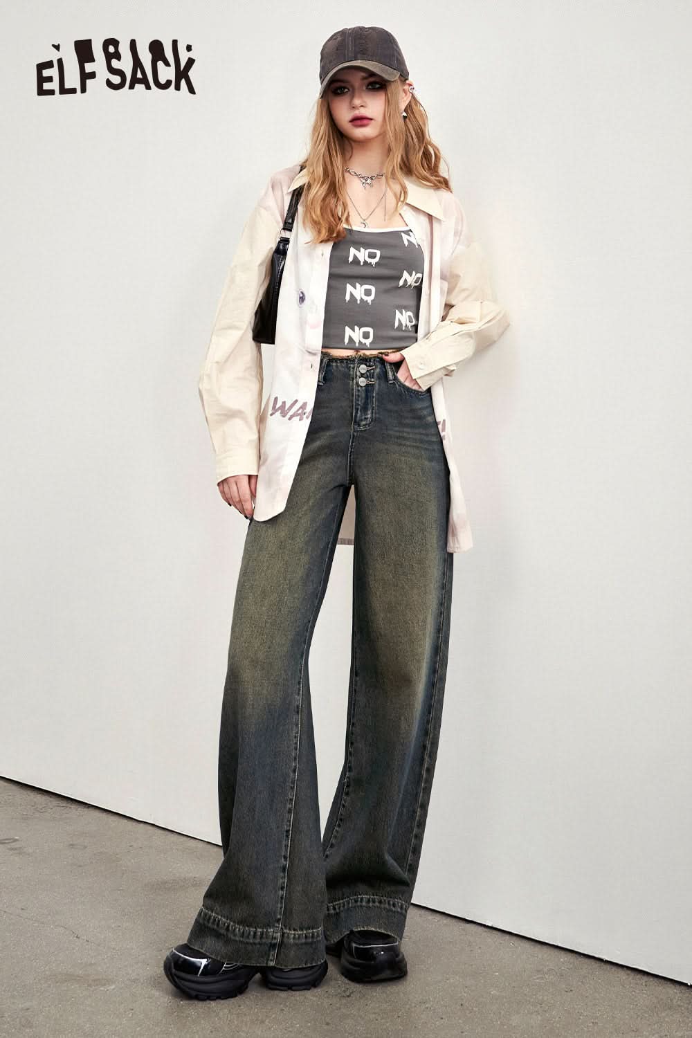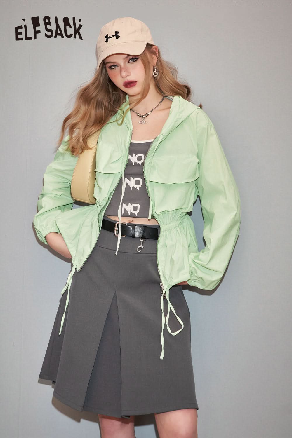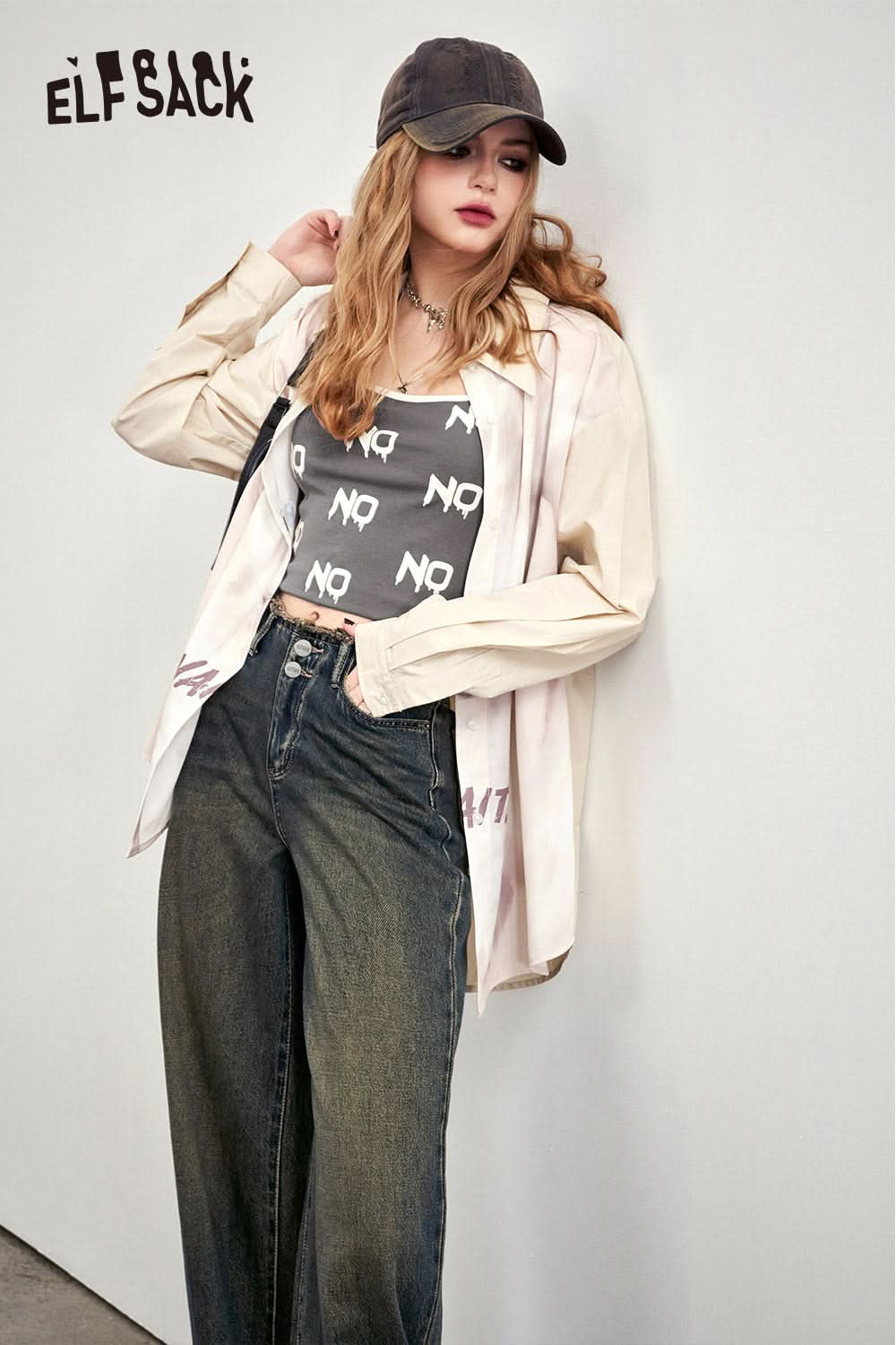 Letter printed gray camisole vest's spring slim fit versatile bottom top