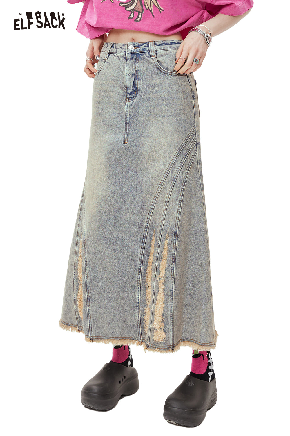 ELFSACK ruched mini skirt for women styled with a colorful cardigan and knee-high socks