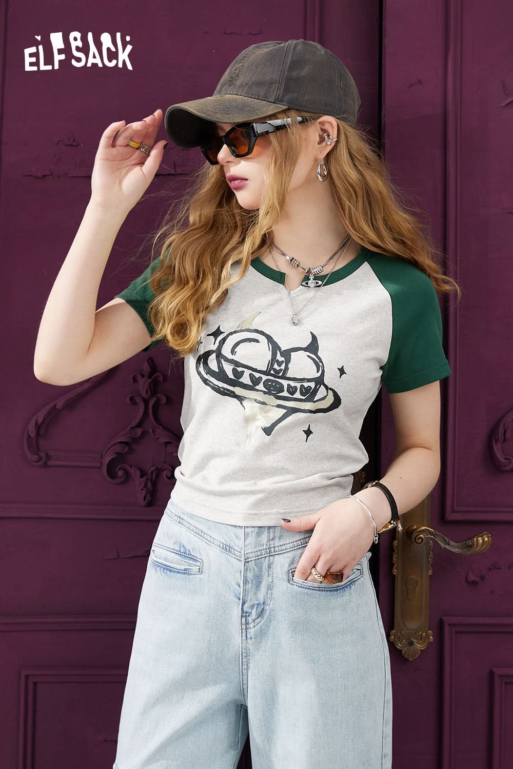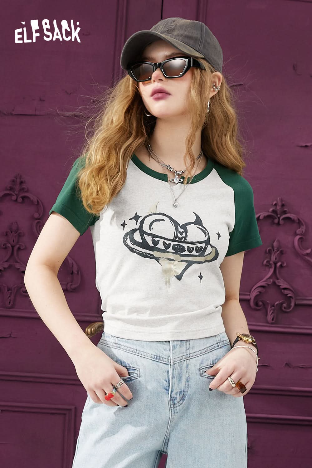 Precio regular $28.49A retro classic, redefined for the modern 'hot girl'. This short sleeve t-shirt features iconic sporty raglan sleeves for a timeless, cool vibe. The flattering slim fit silhouette is pure Y2K, designed to hug your curves and create a standout streetwear look. It??£¤s the perfect blend of athletic charm and playful energy.