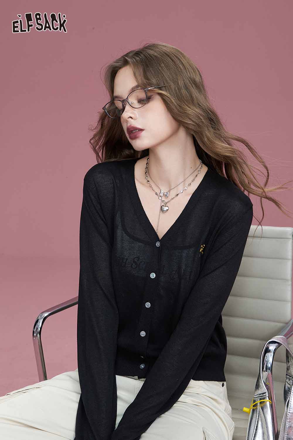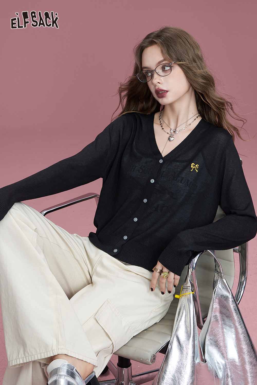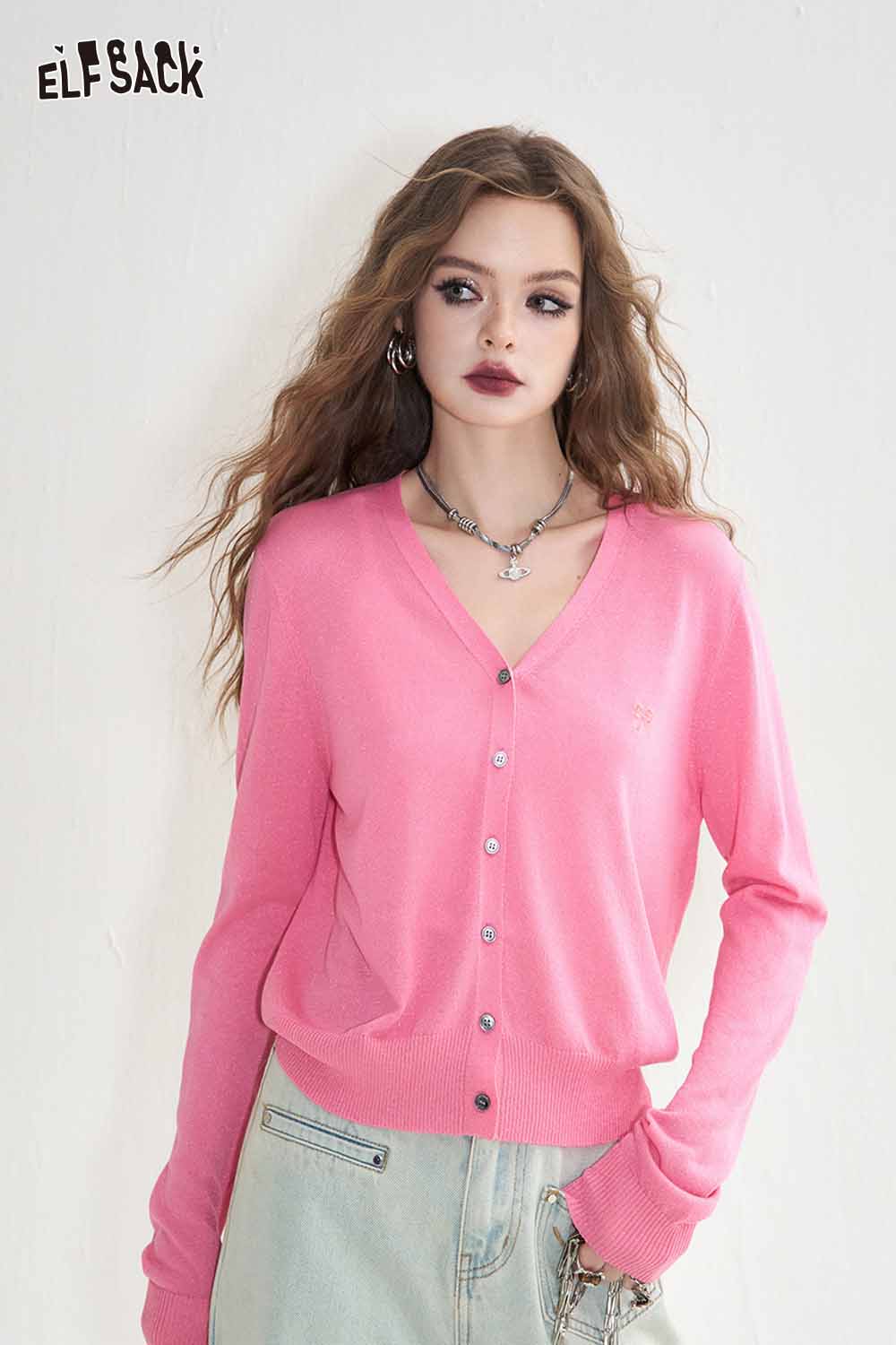 Minimalist French Knitwear V Neck Long Sleeve Cardigan