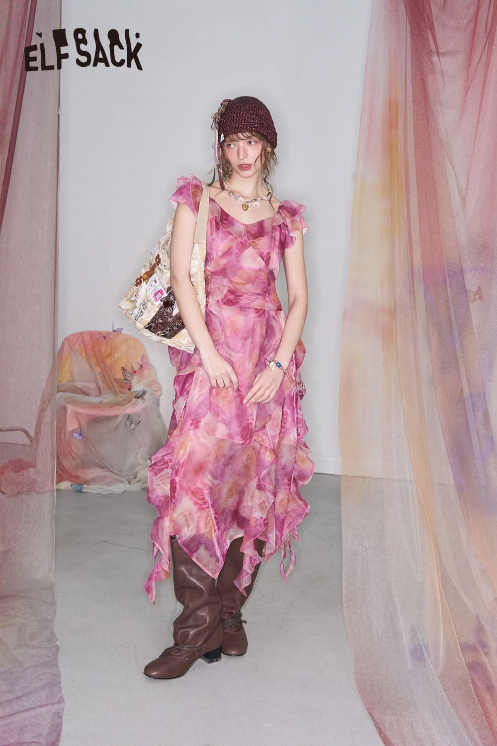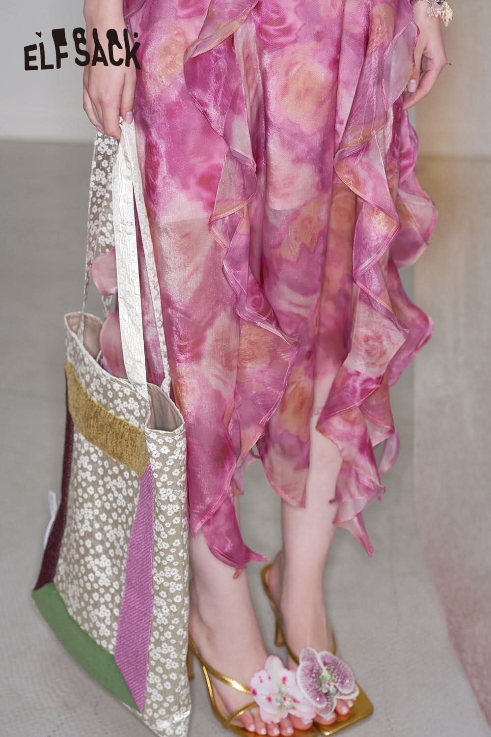 Irregular floral waist cinching vacation dress