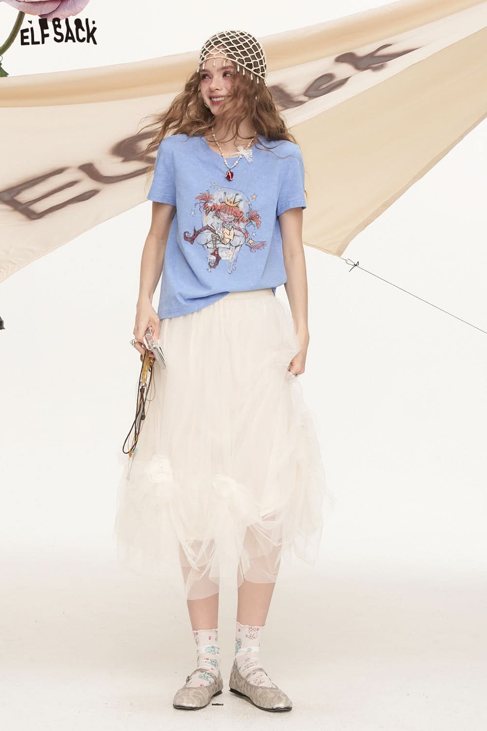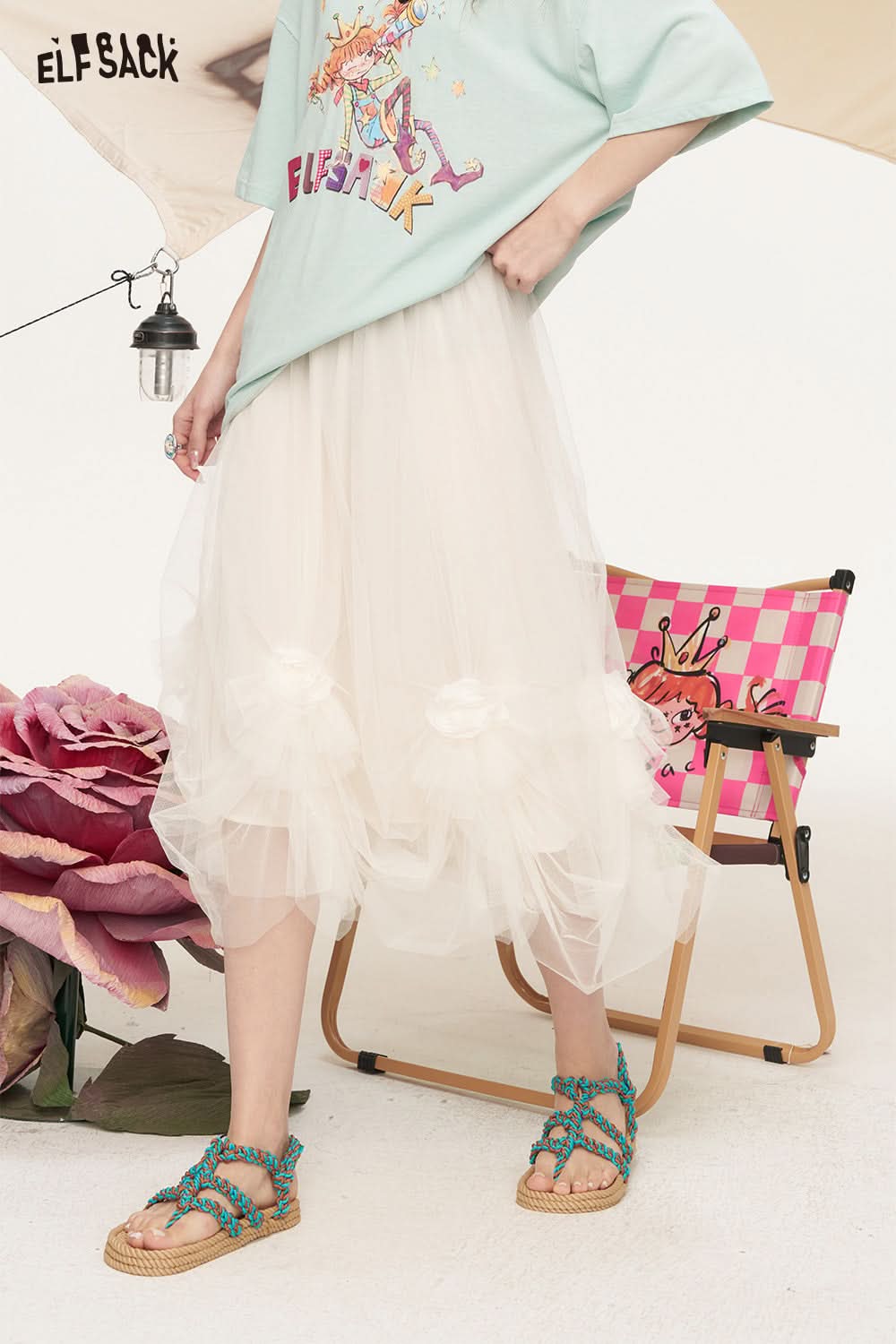 Rice White Sweet Mesh Princess Skirt