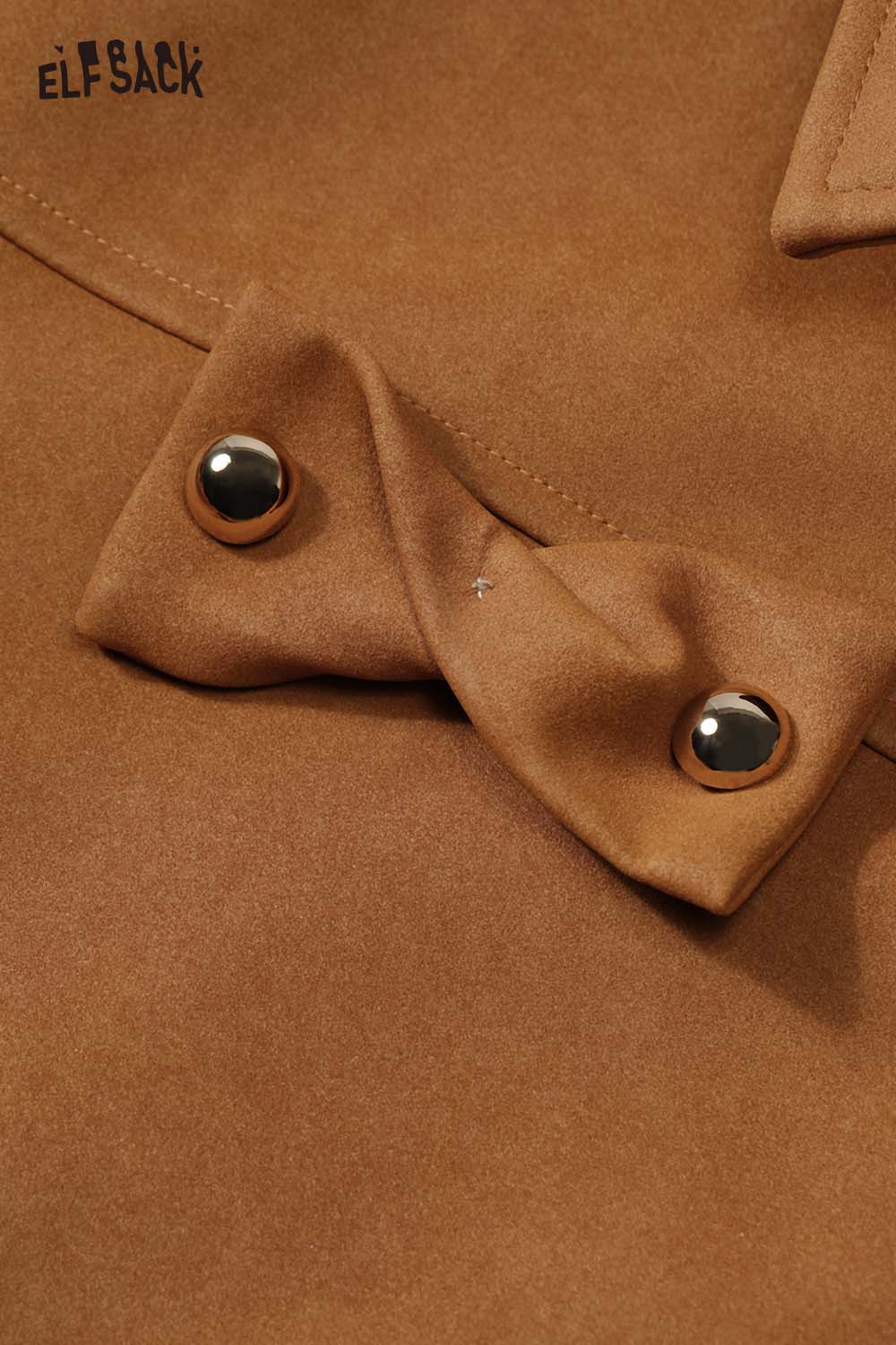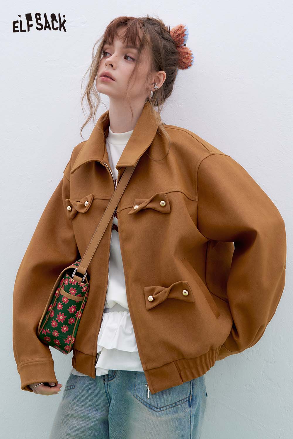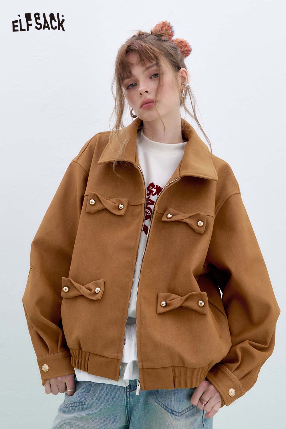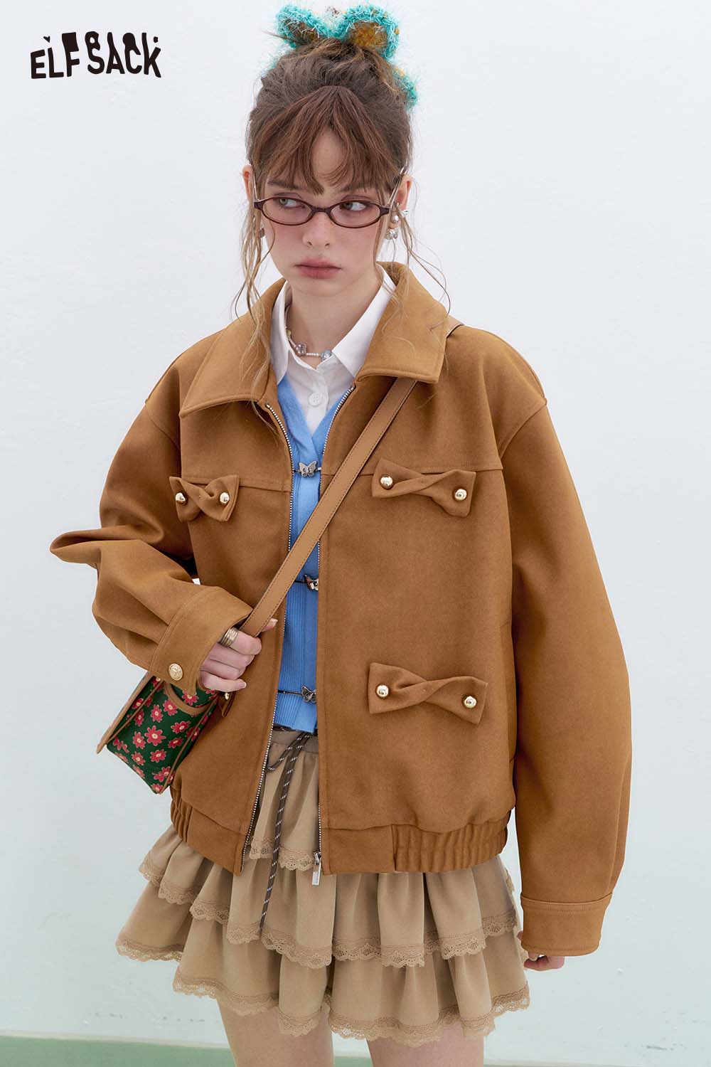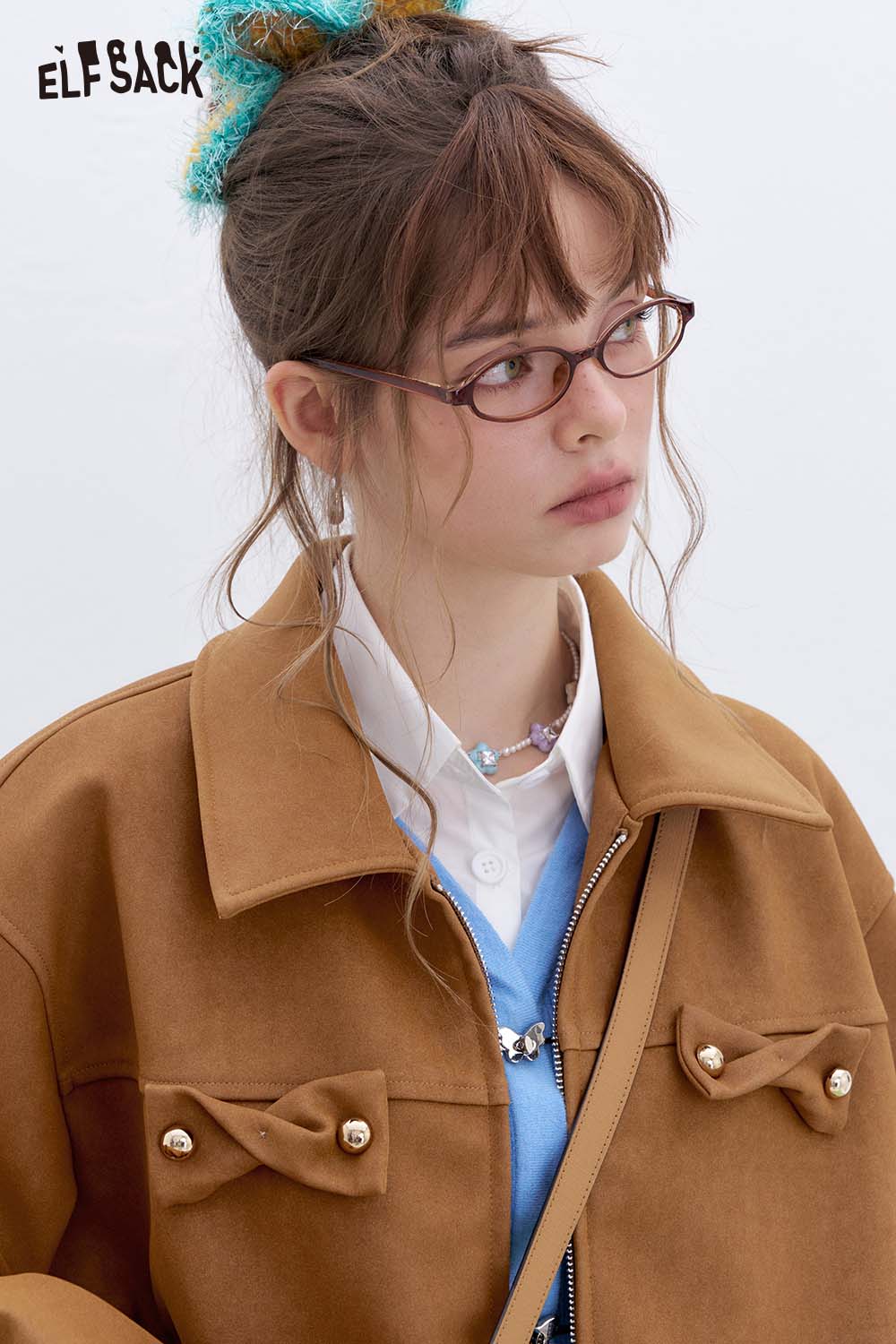 Bow Studded Vintage Jacket Spring Faux Suede PU Coat