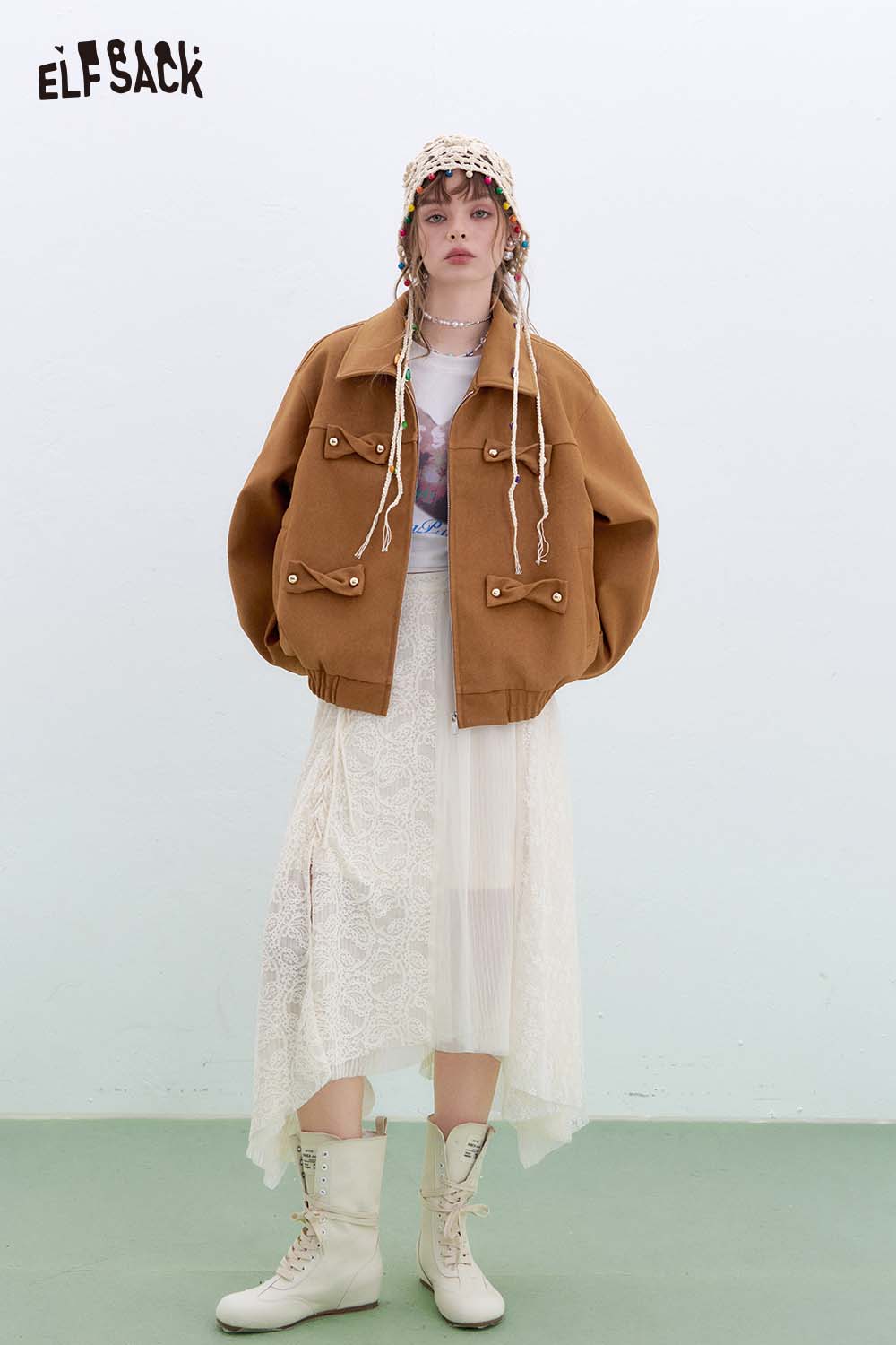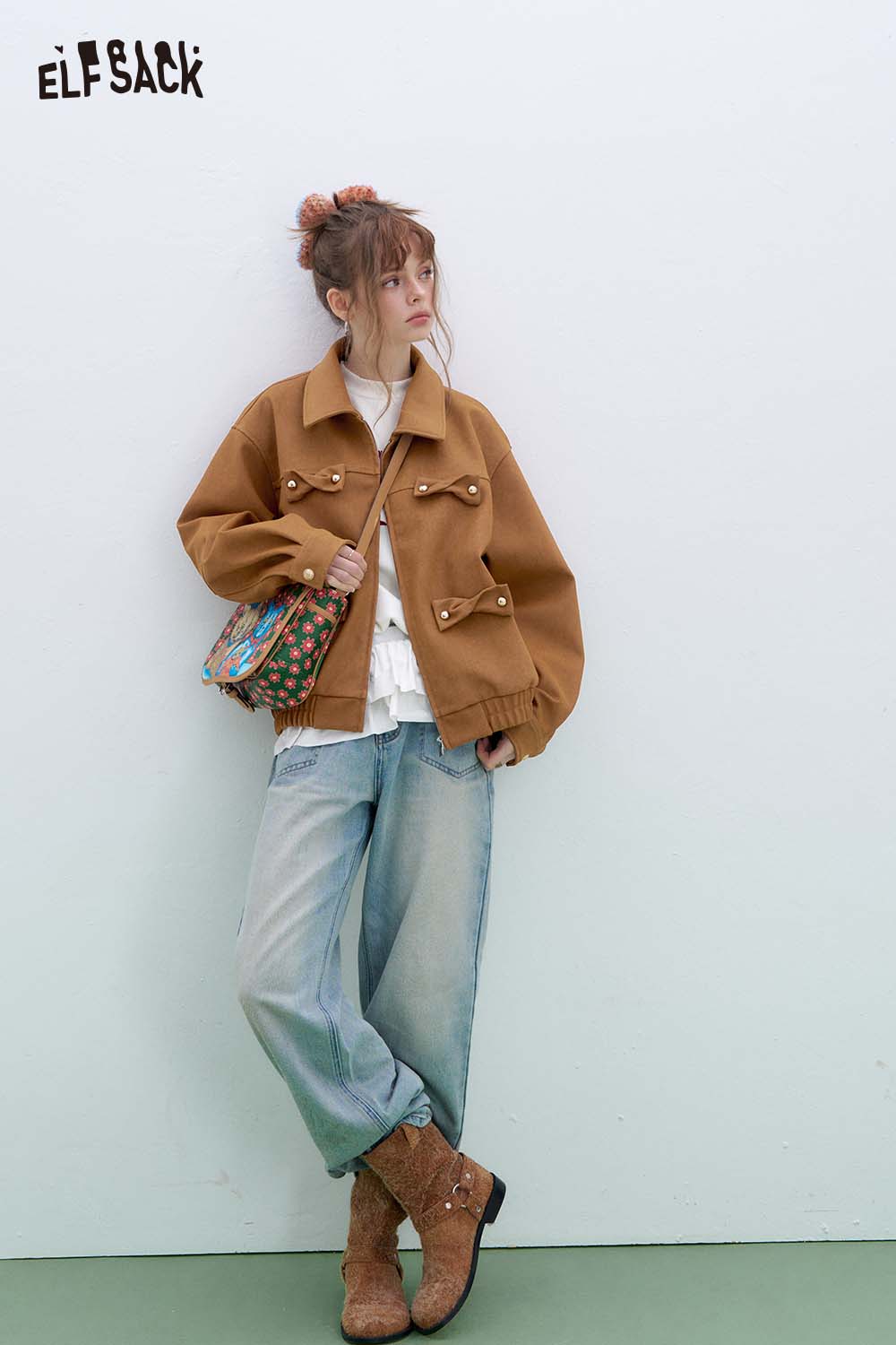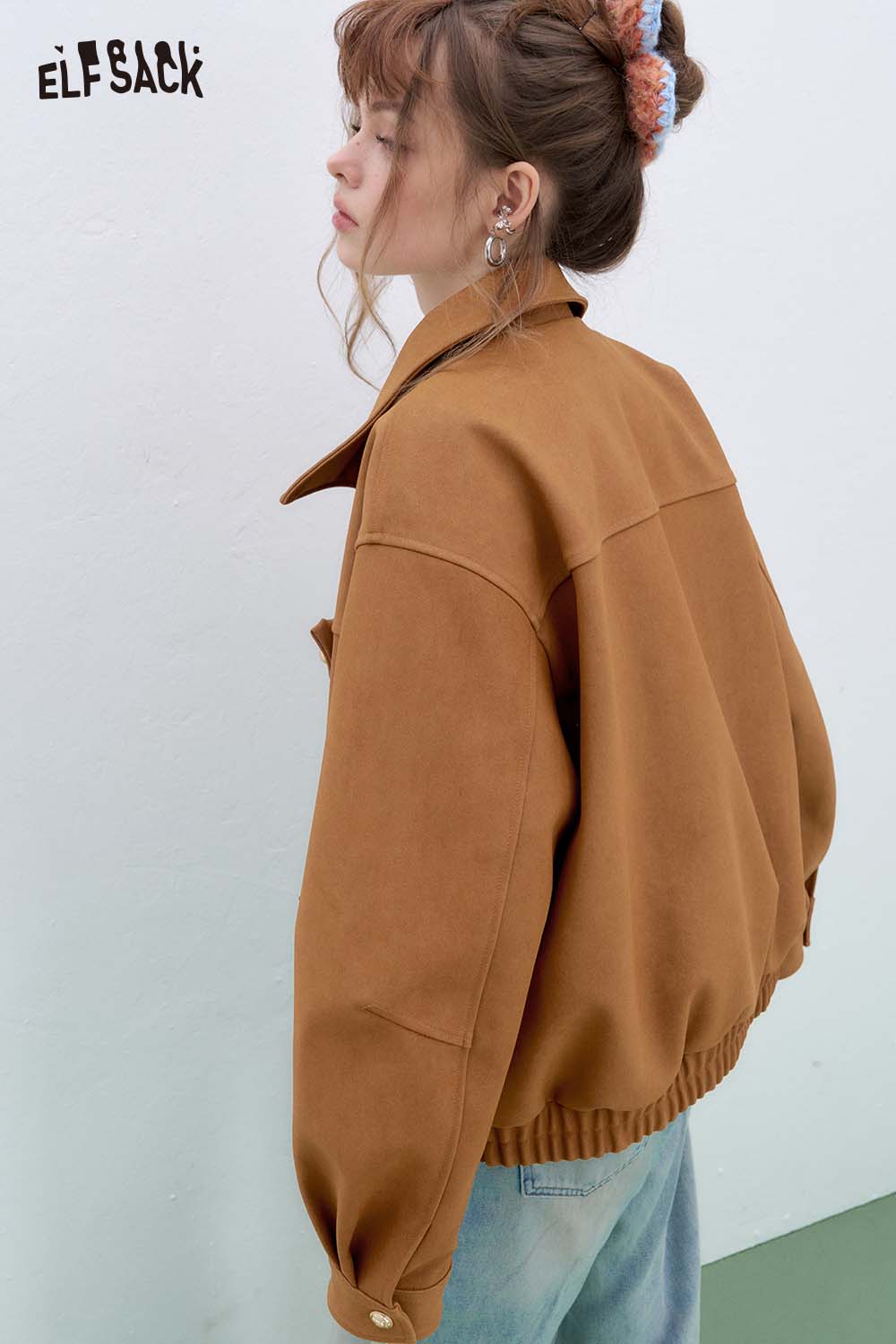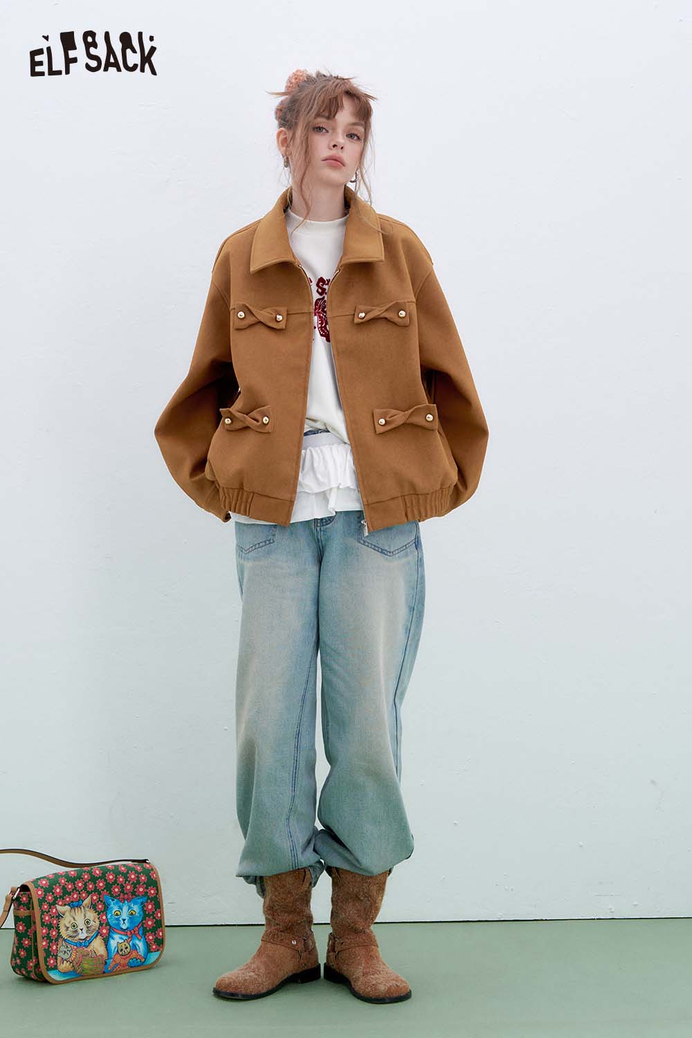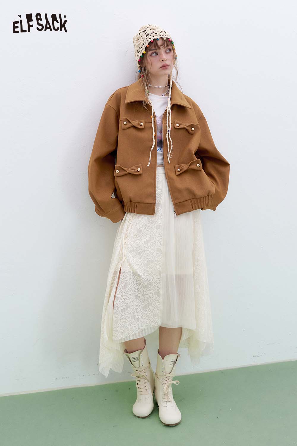Bow Studded Vintage Jacket Spring Faux Suede PU Coat