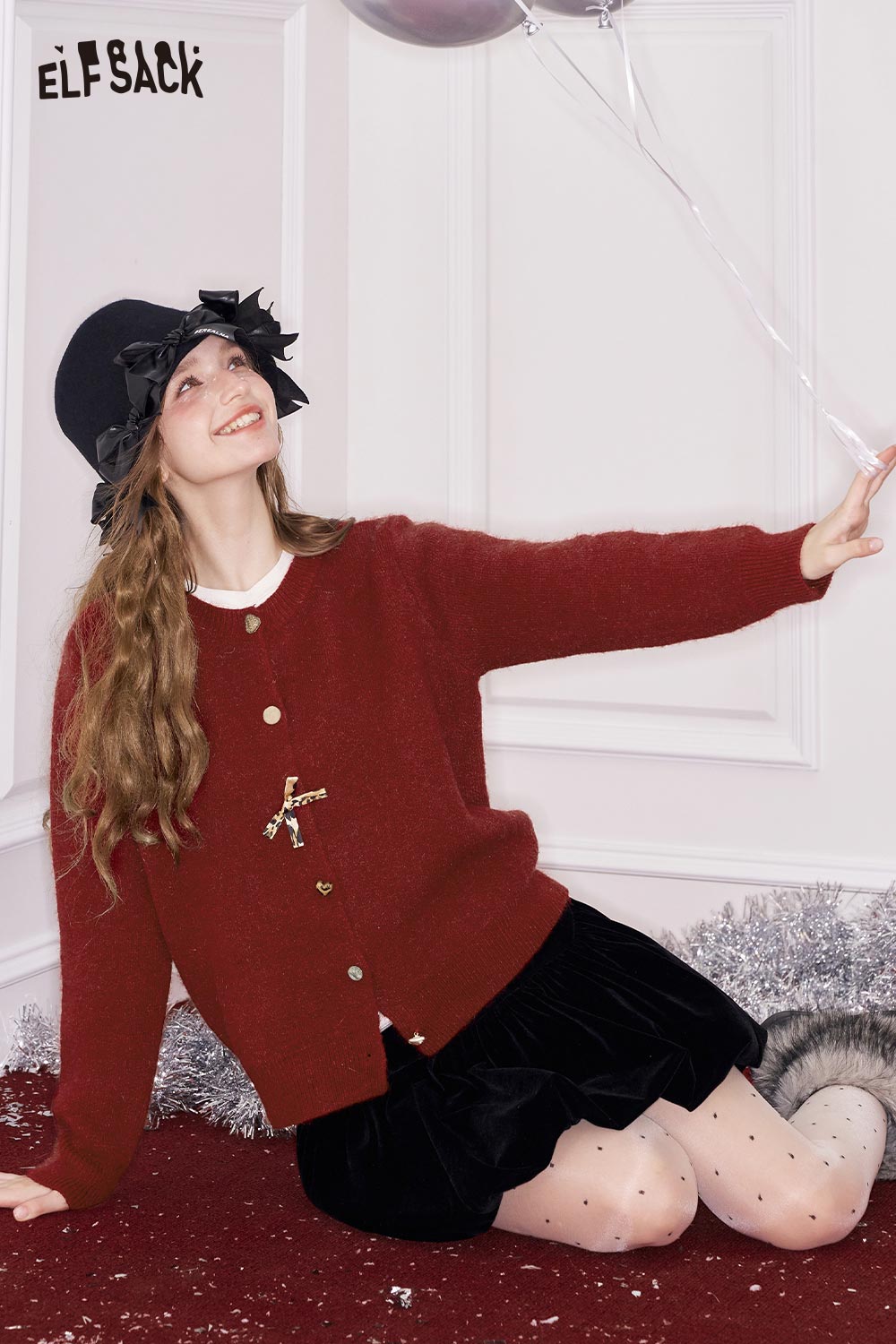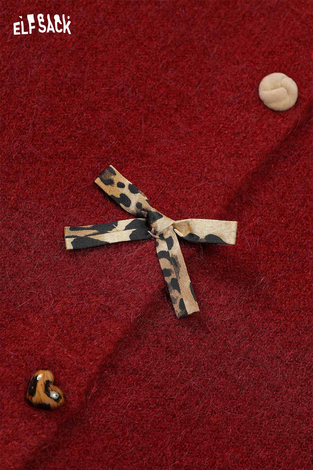 Girly Minimalist Solid Leopard Bow Button Cardigan