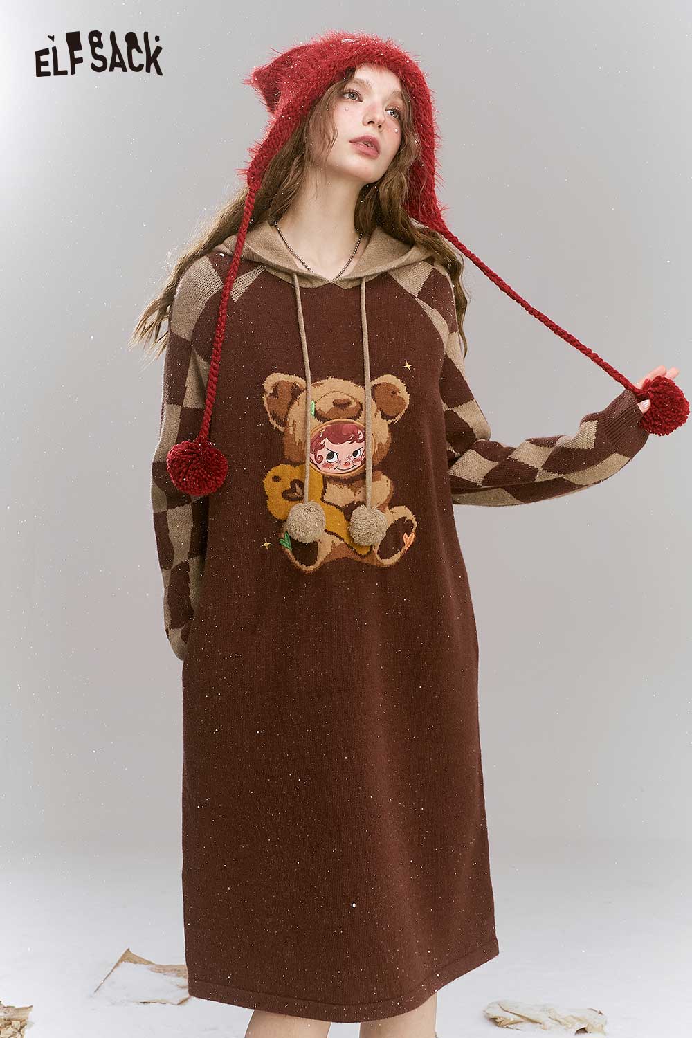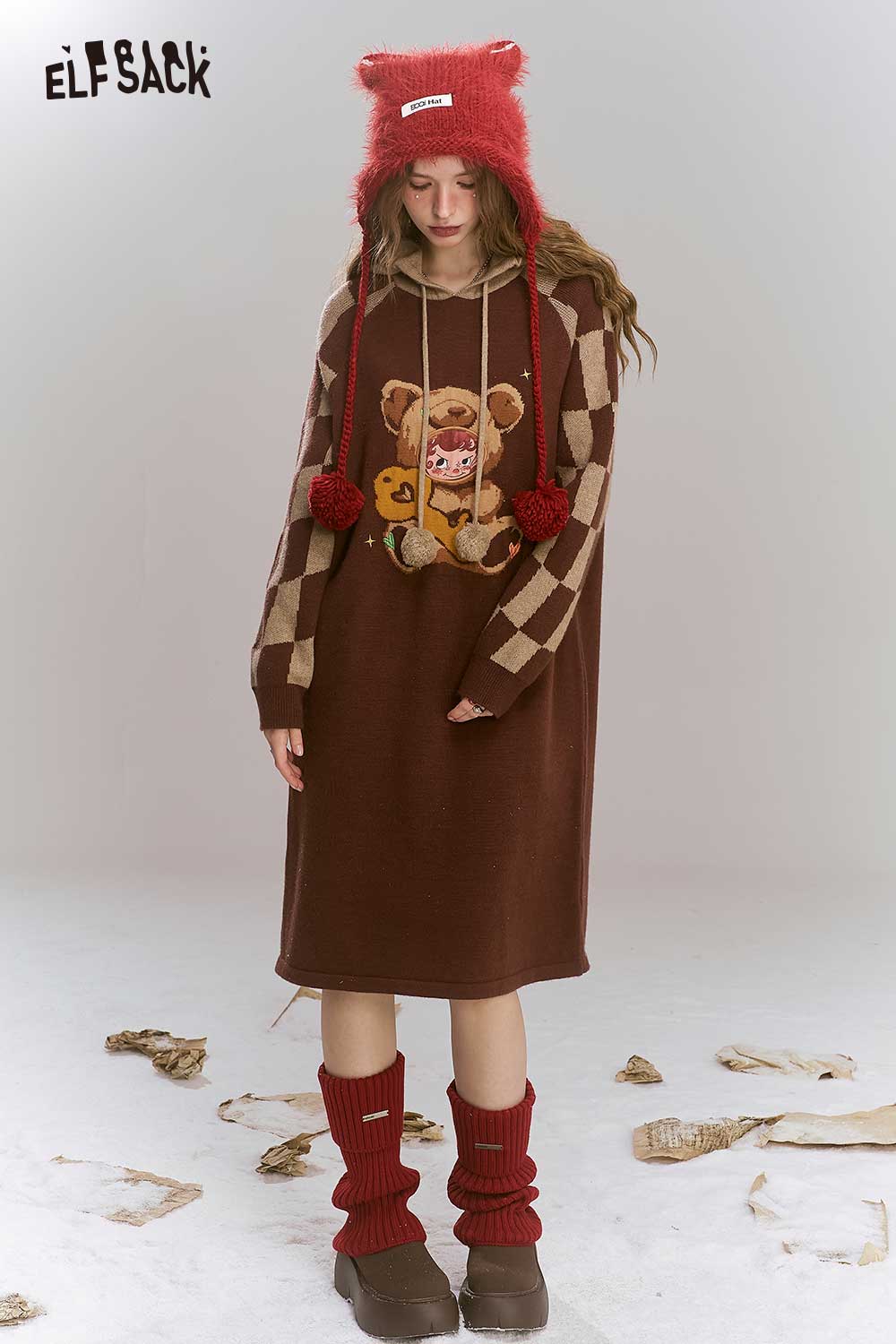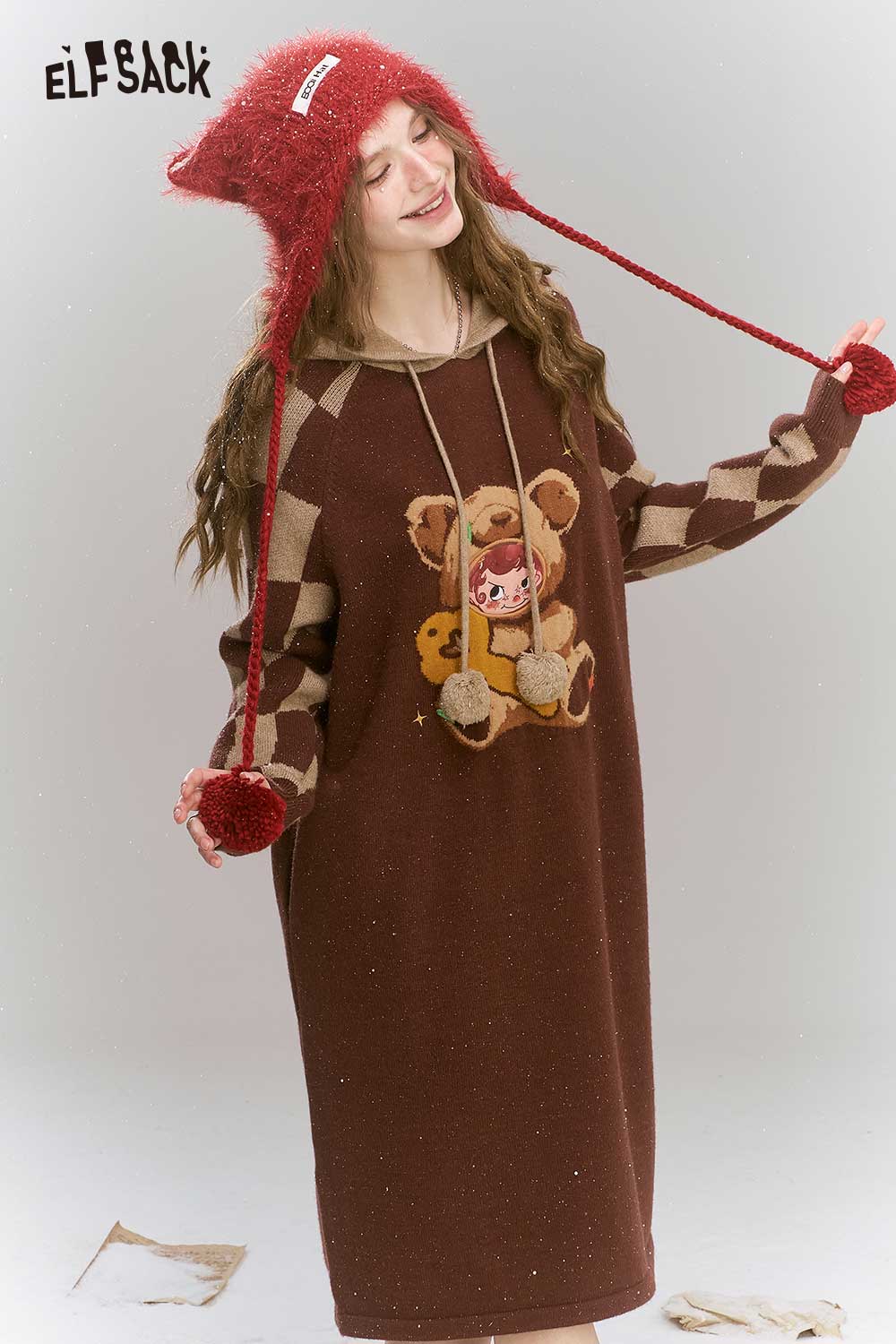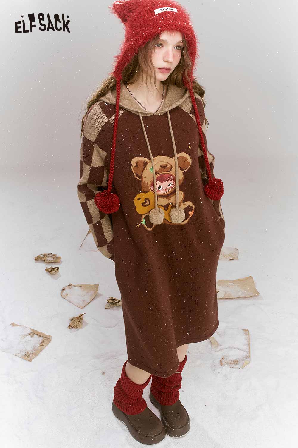 Naughty Kid Graphic Checkerboard Hooded Dress