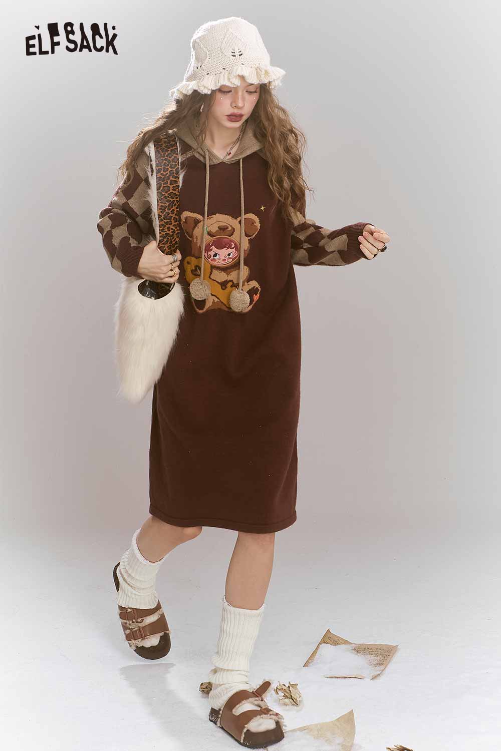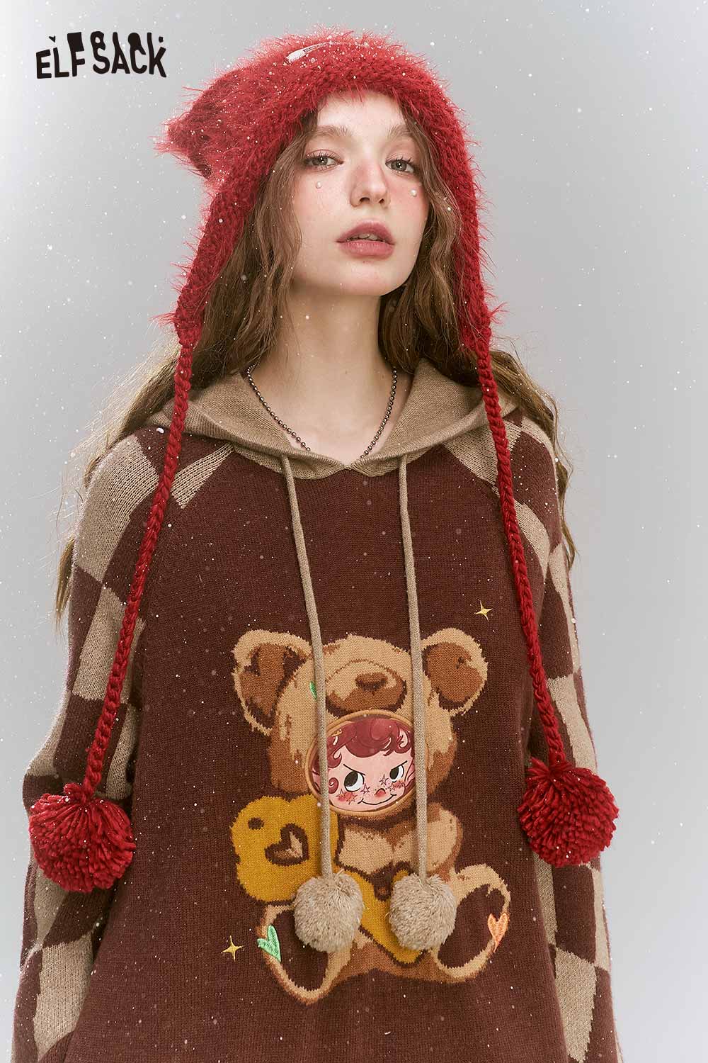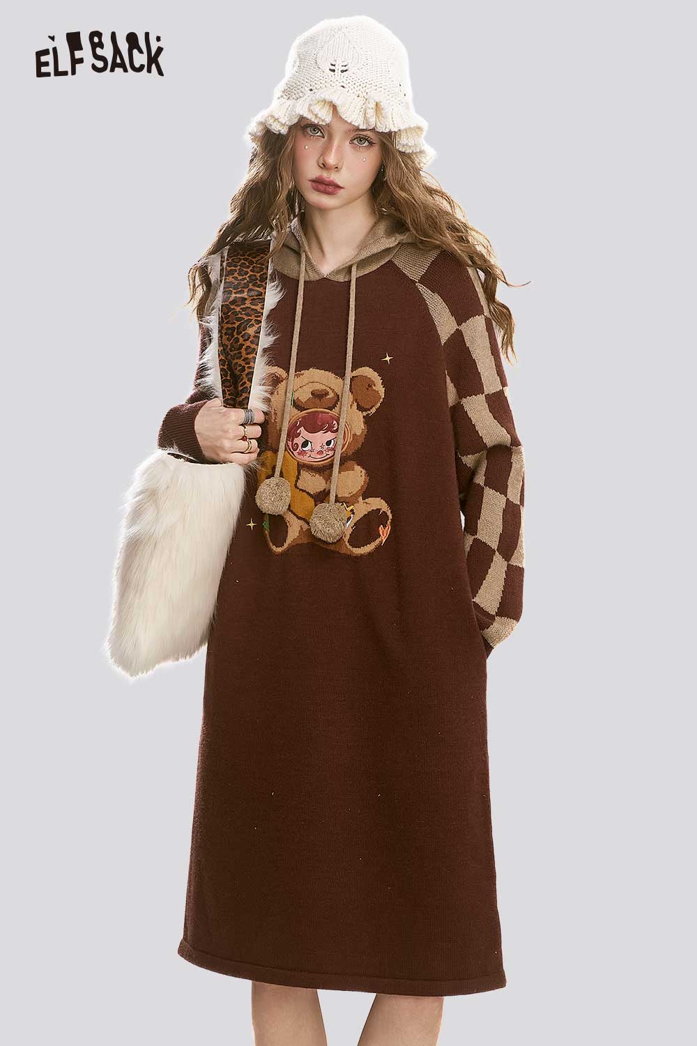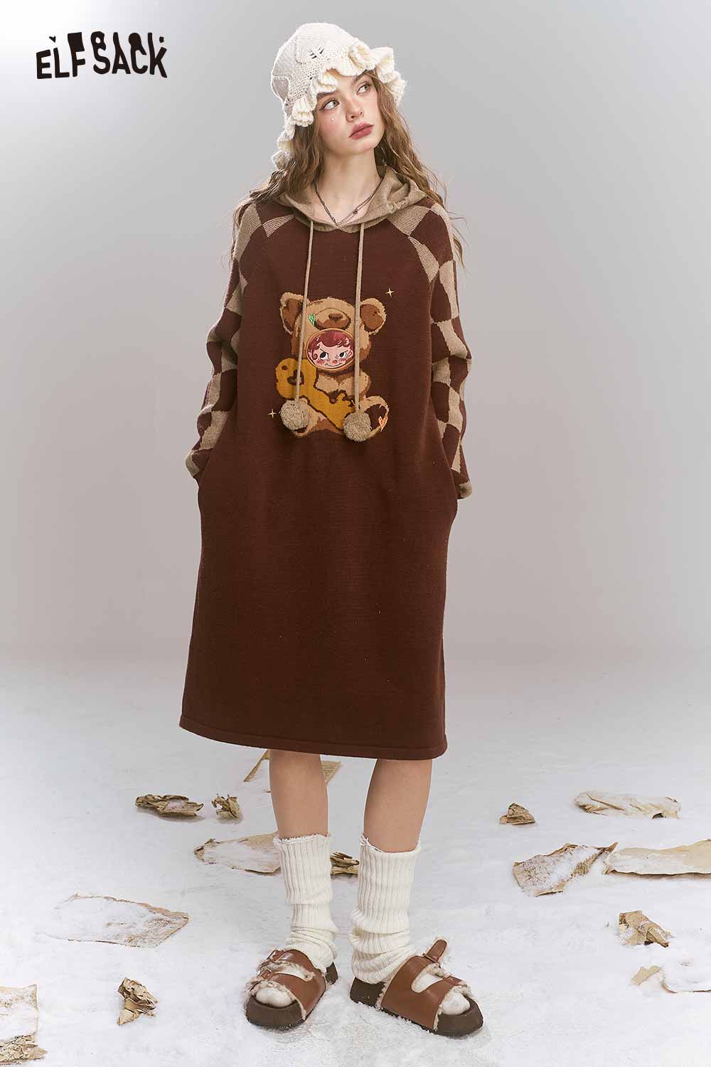 Naughty Kid Graphic Checkerboard Hooded Dress