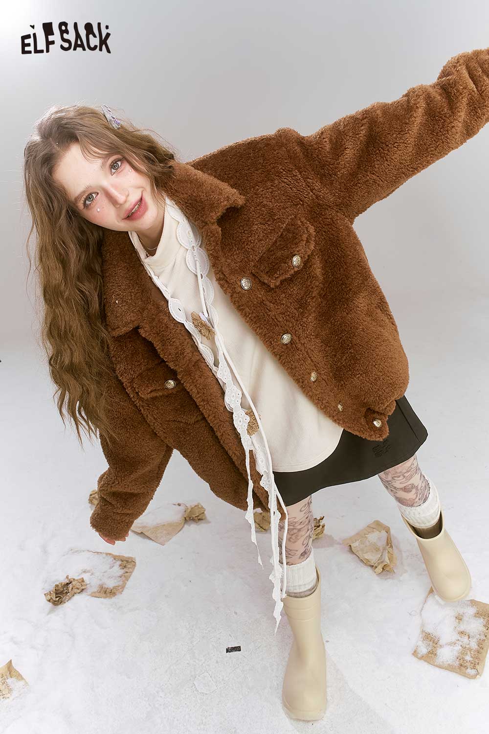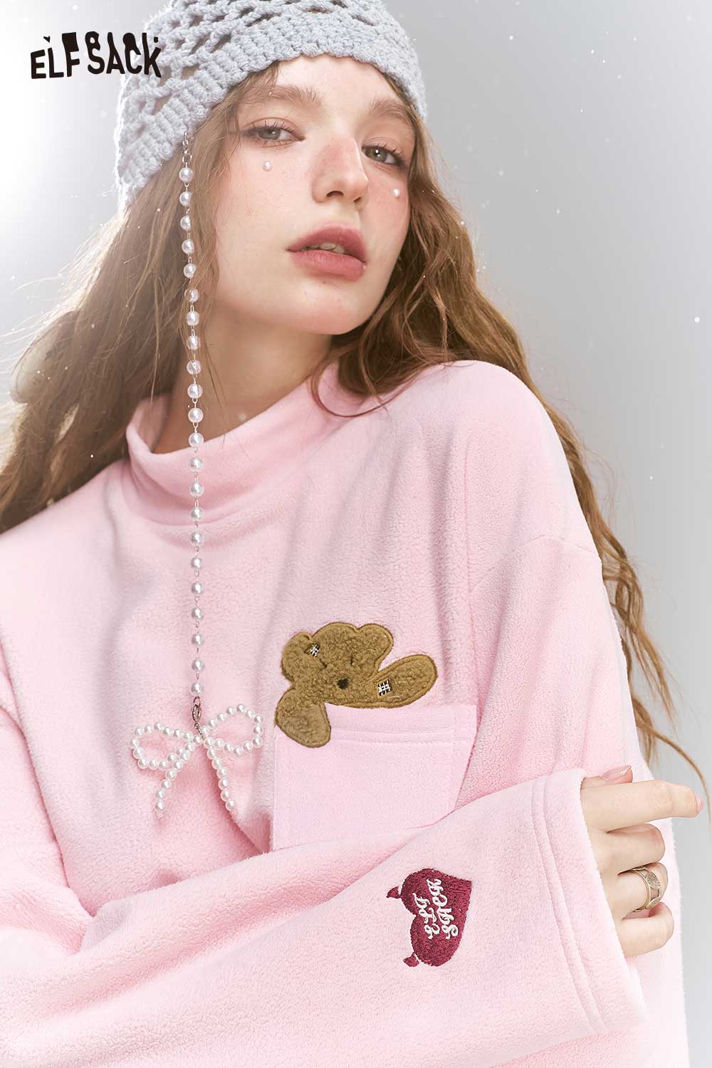 Plush Bear Double Face High Neck Slim Fit Tshirt