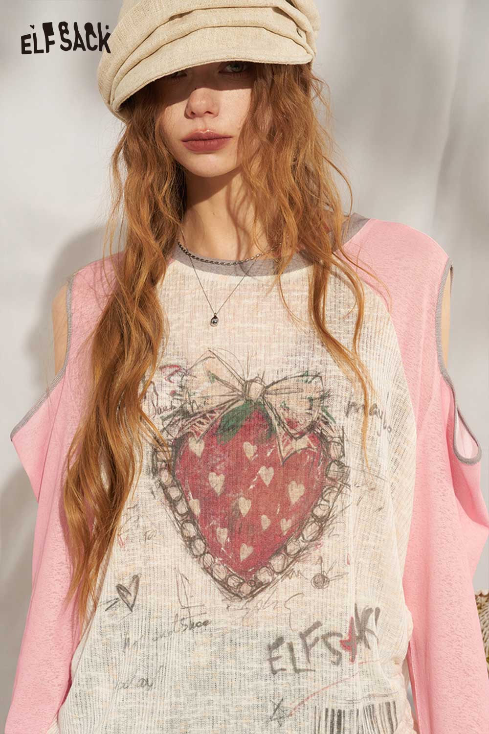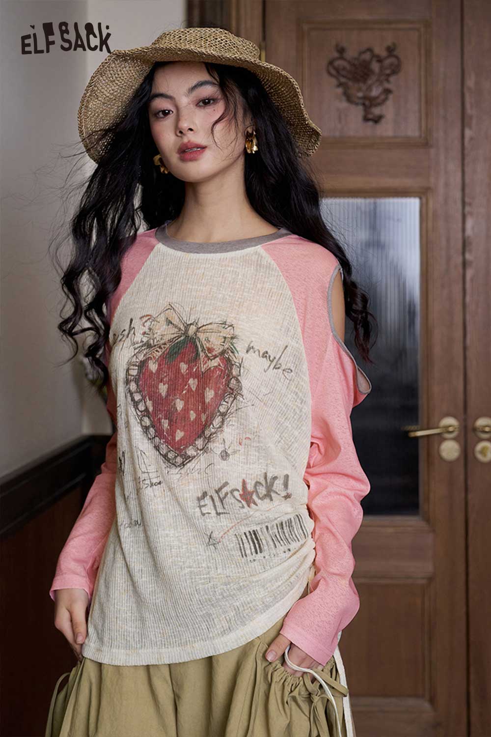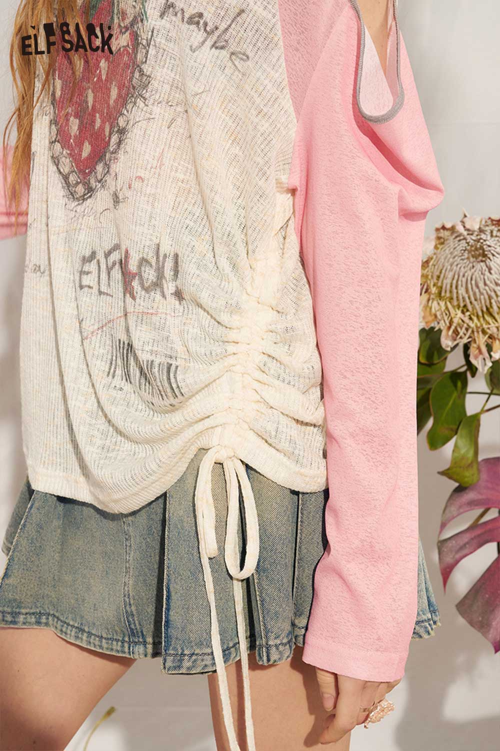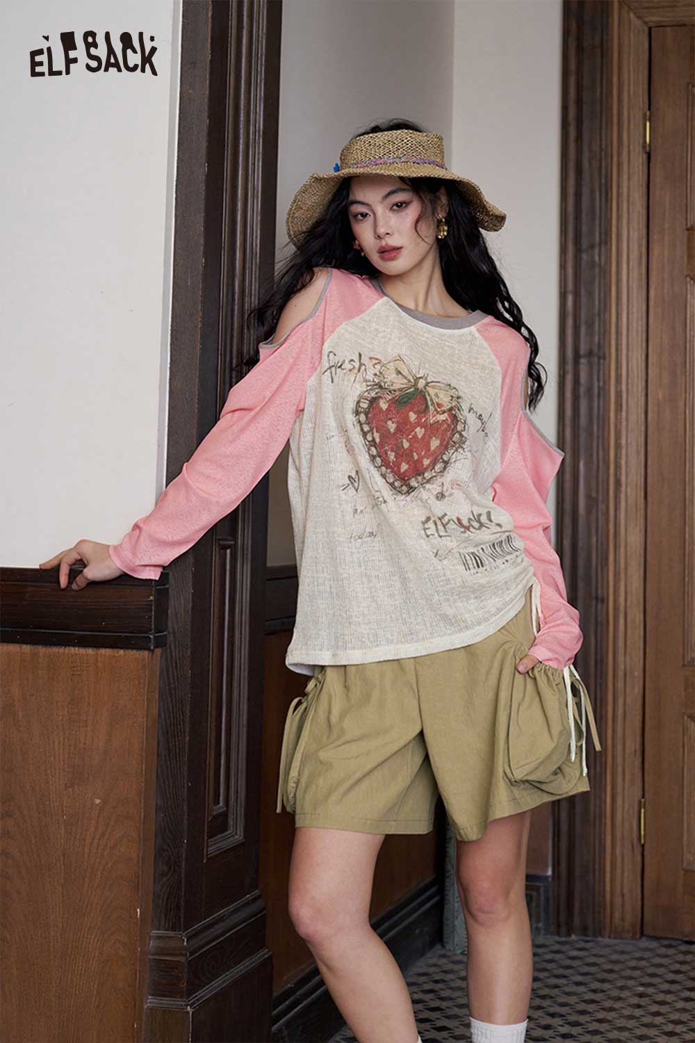 Strawberry Cutout Drawstring Punk Top