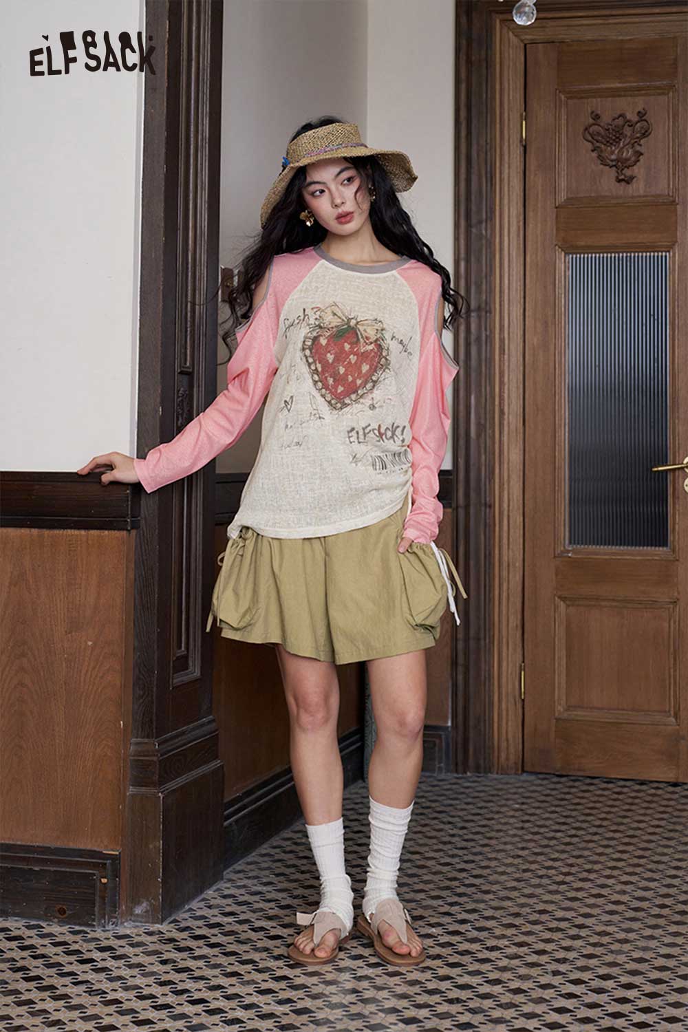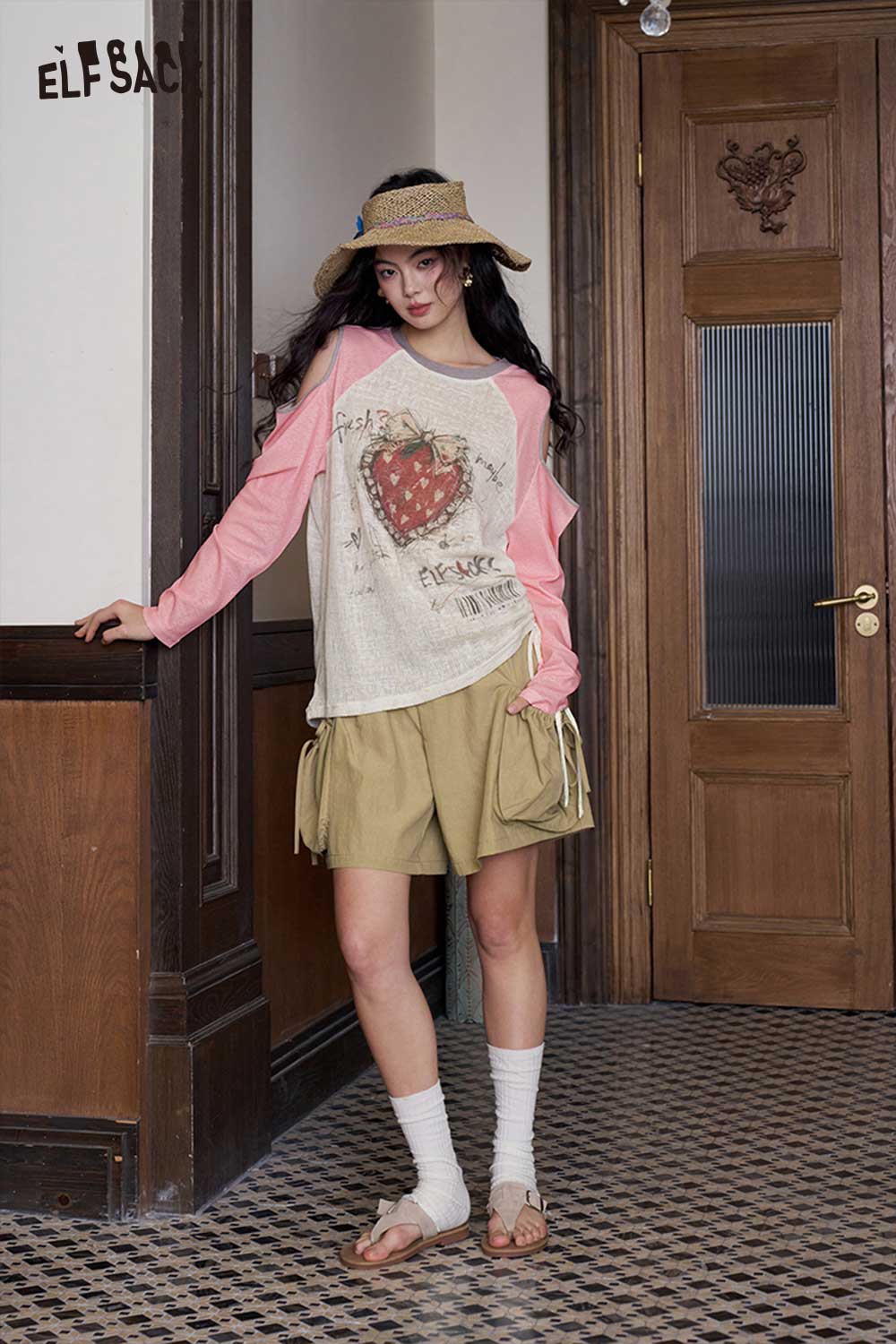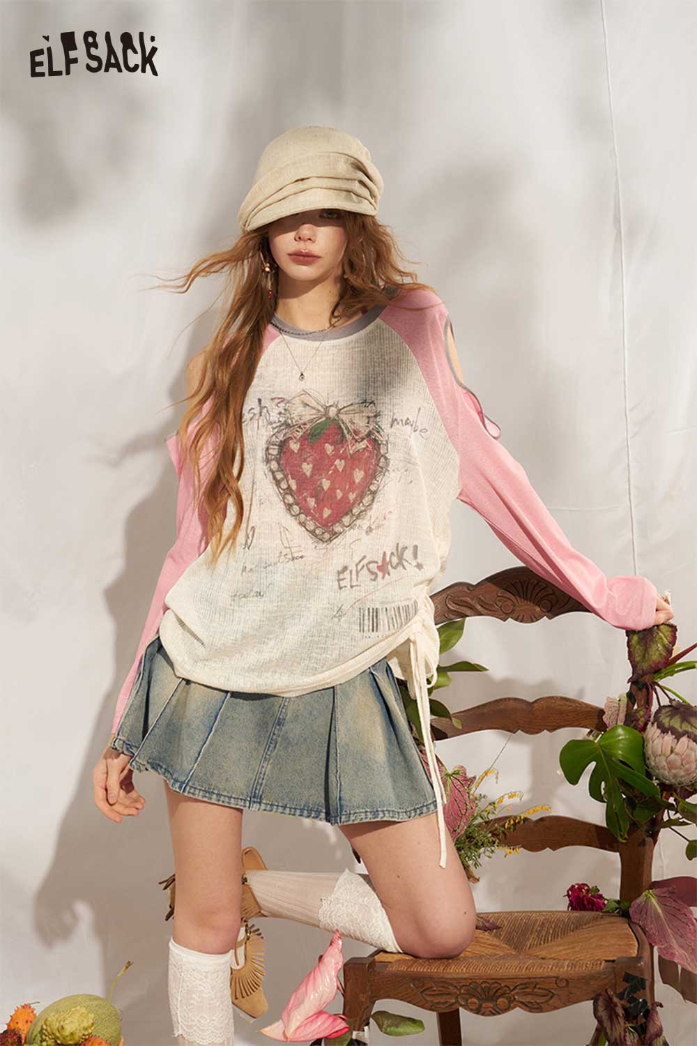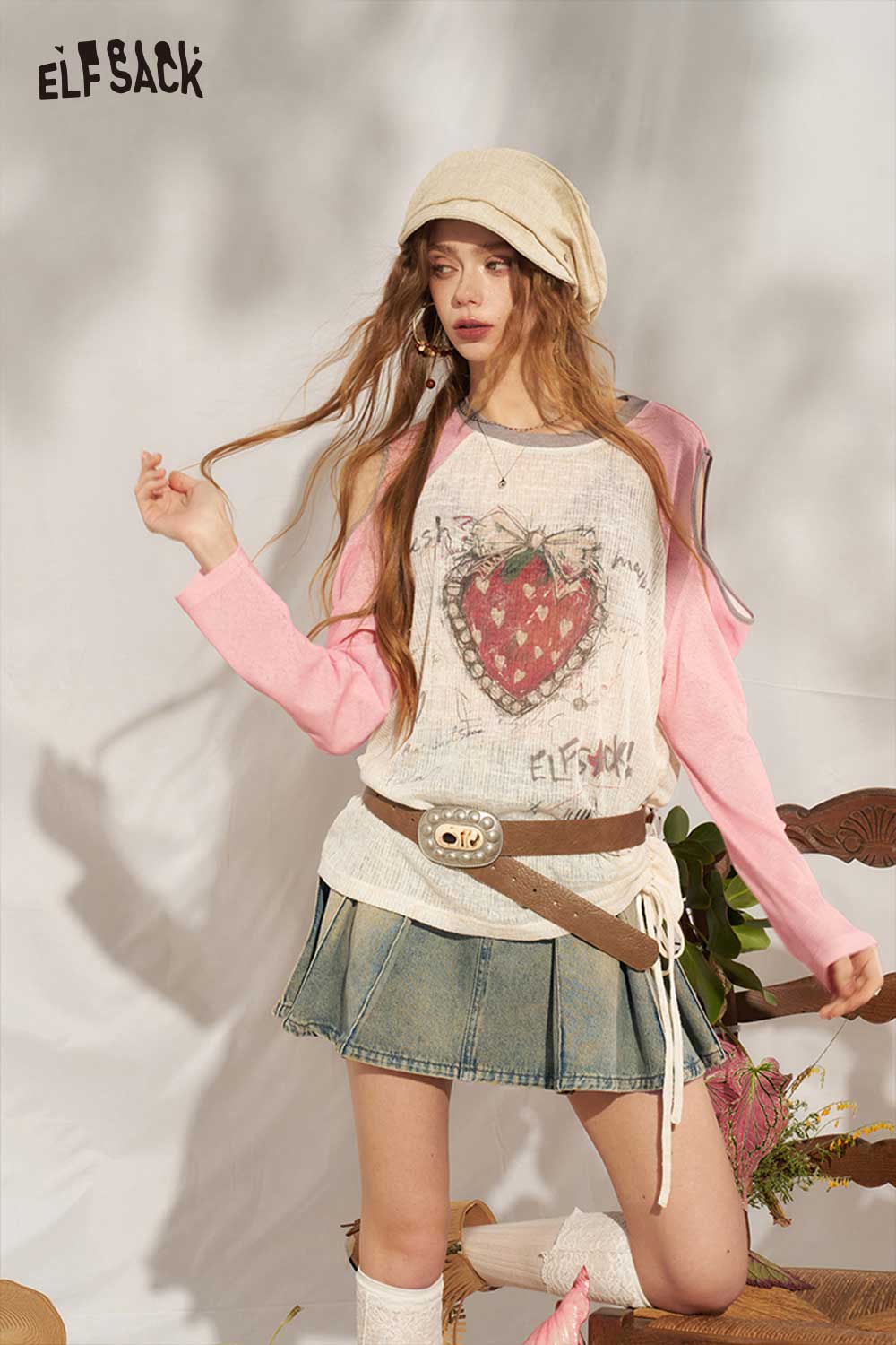 Strawberry Cutout Drawstring Punk Top