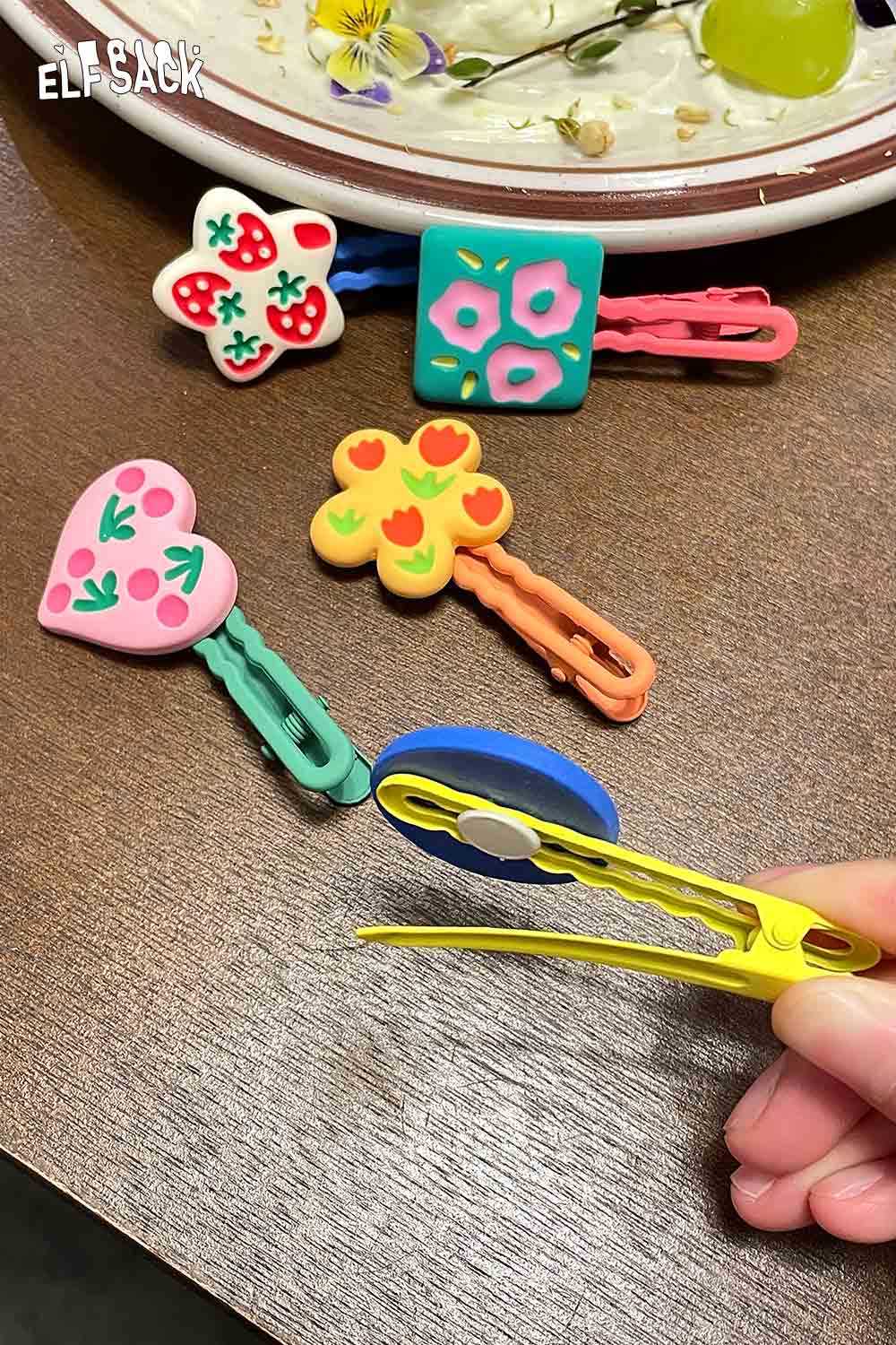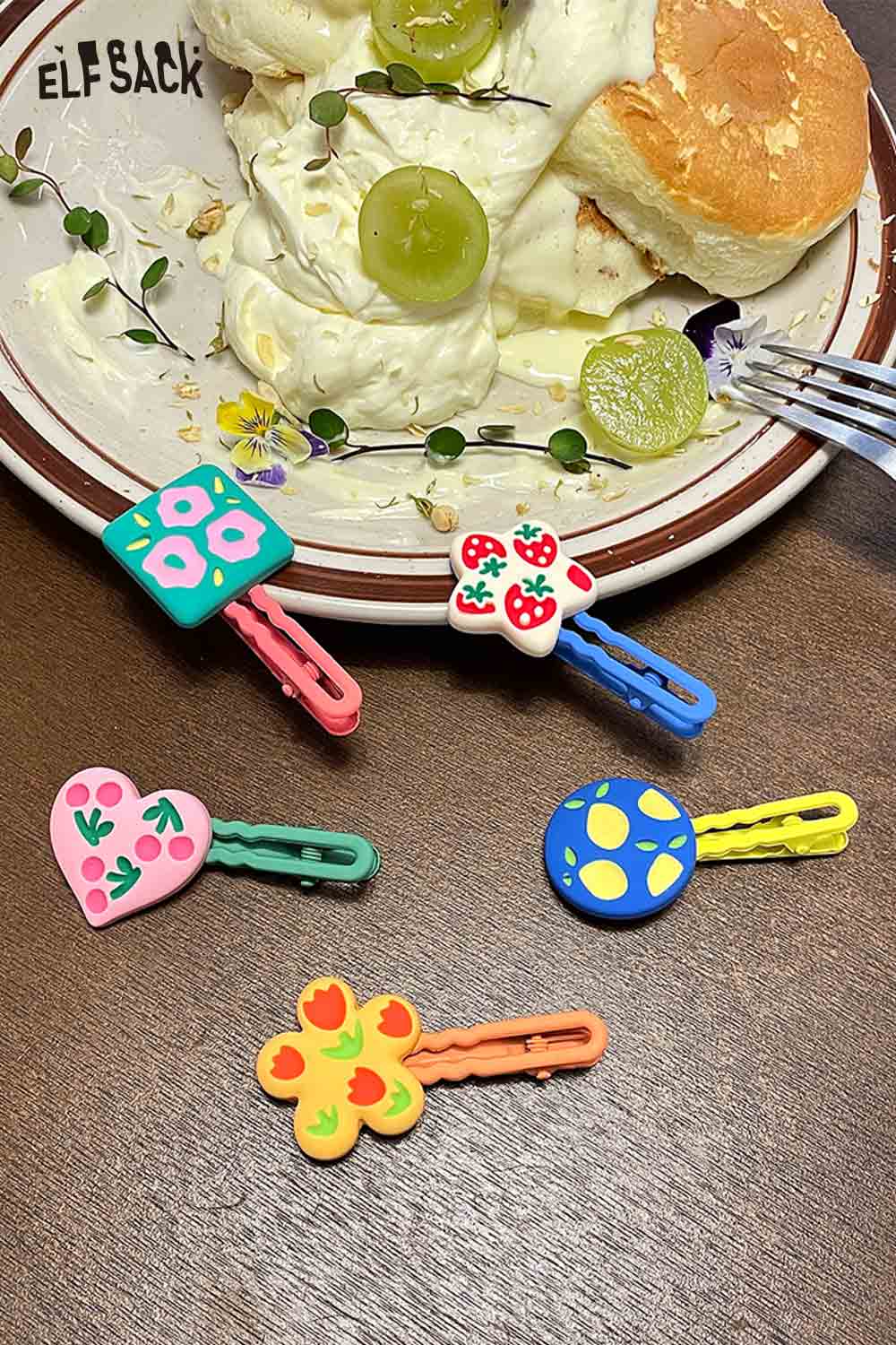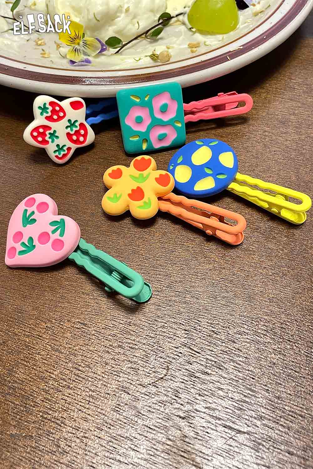 Resin Floral and Fruit Design Color Contrast Dimensional Hairpin