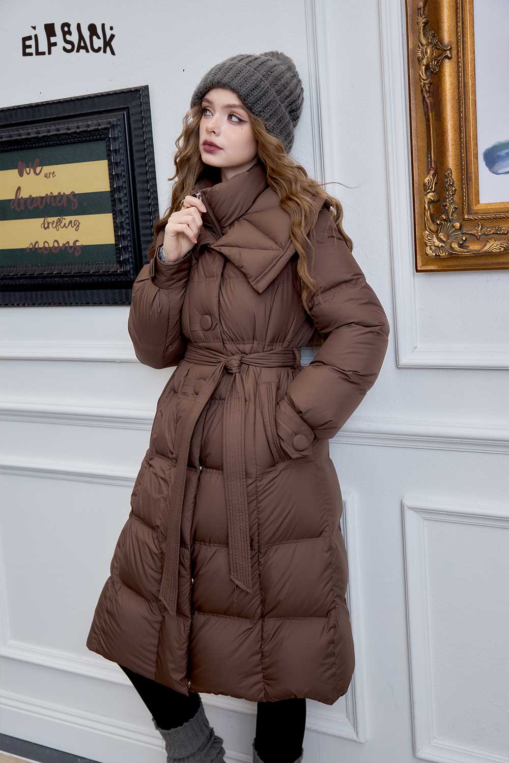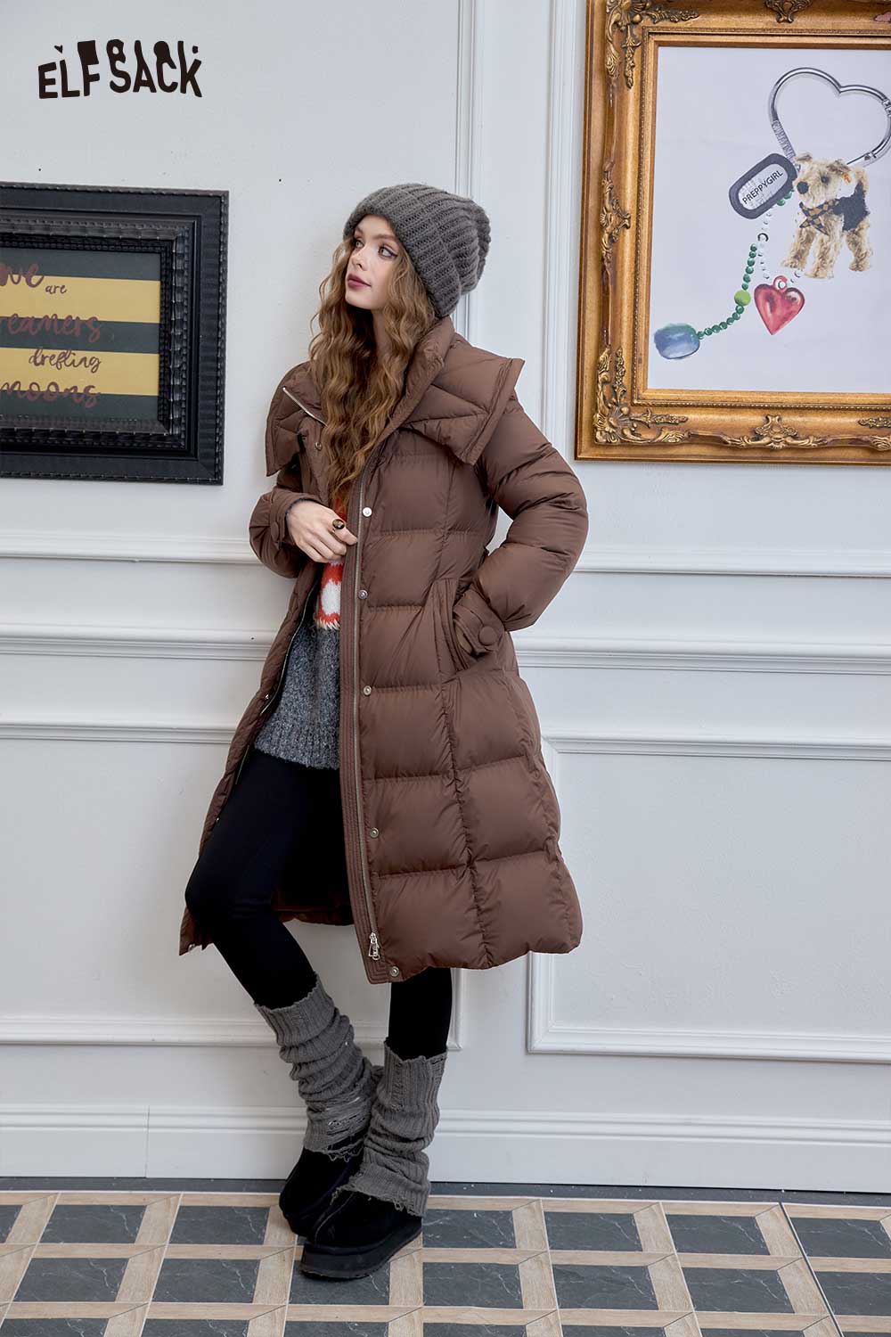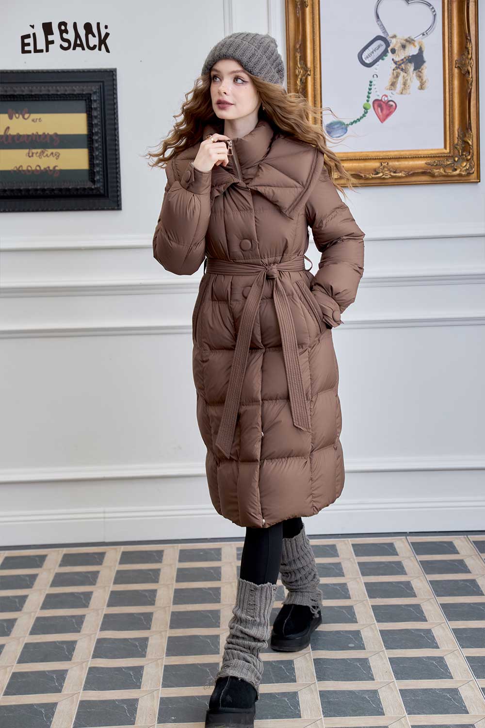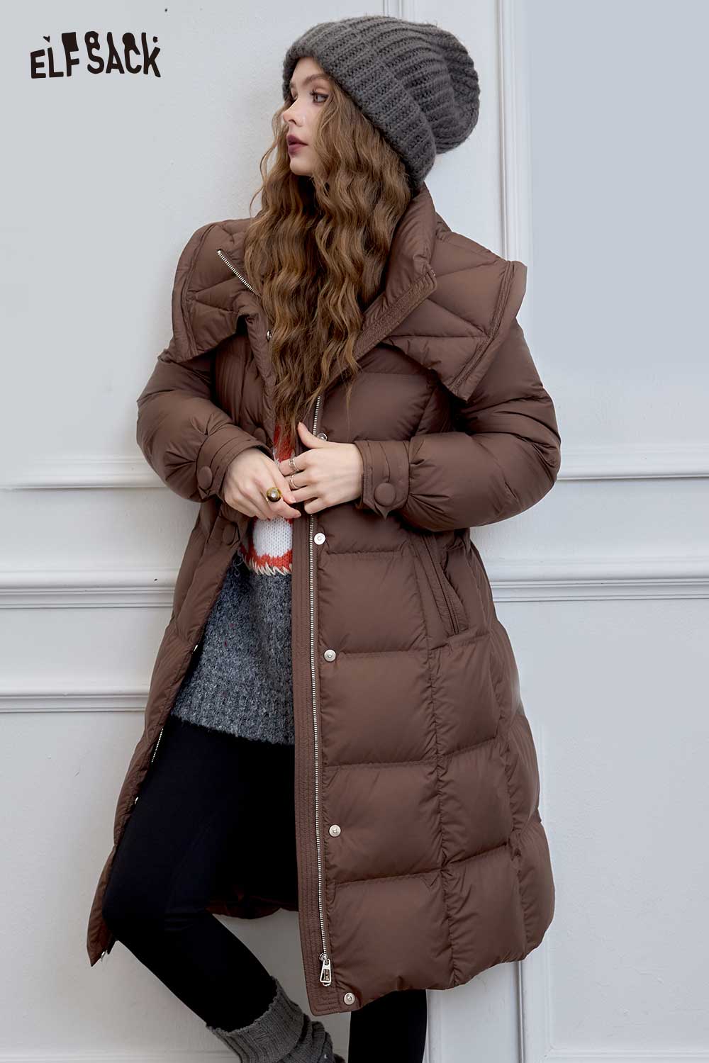 Soft Petite Warm Black Waist Long Stand Collar Down Jacket