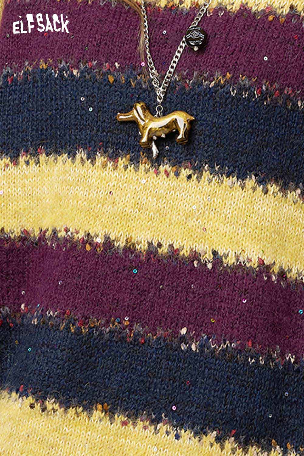 Soft Knit Color Block Striped Star Design Loose Fit Sweater