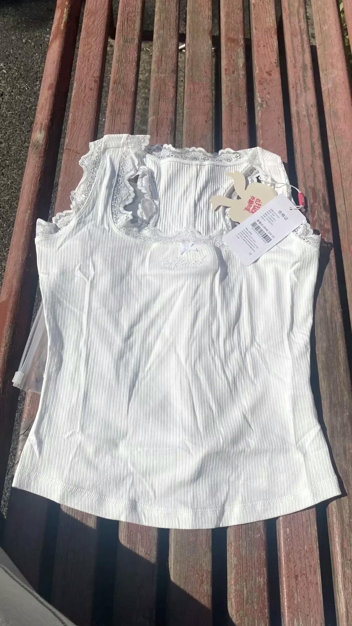 White Lace Stitching Square Neck Camisole Women Casual Sexy Solid Sleeveless Tight Elastic Slimming Top