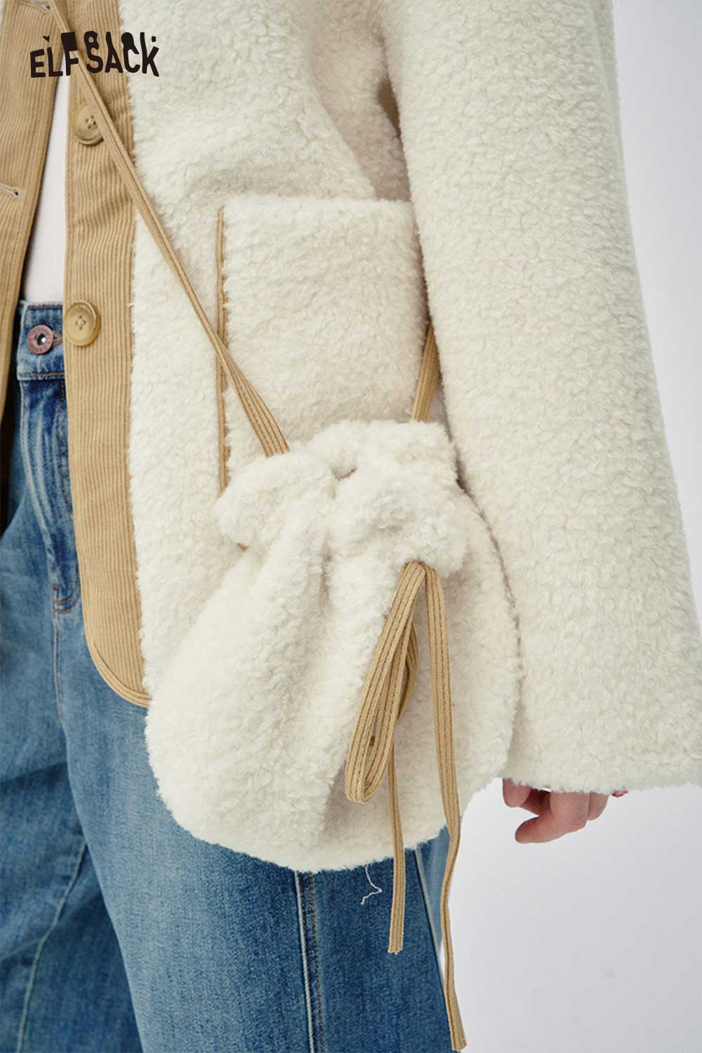 Wool Blend Faux Shearling Collar Solid Color Quilted Coat