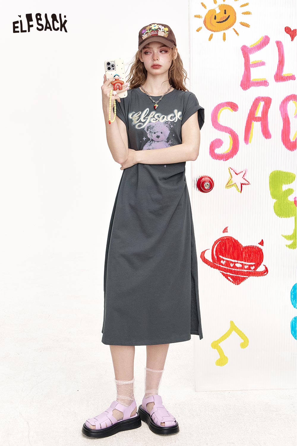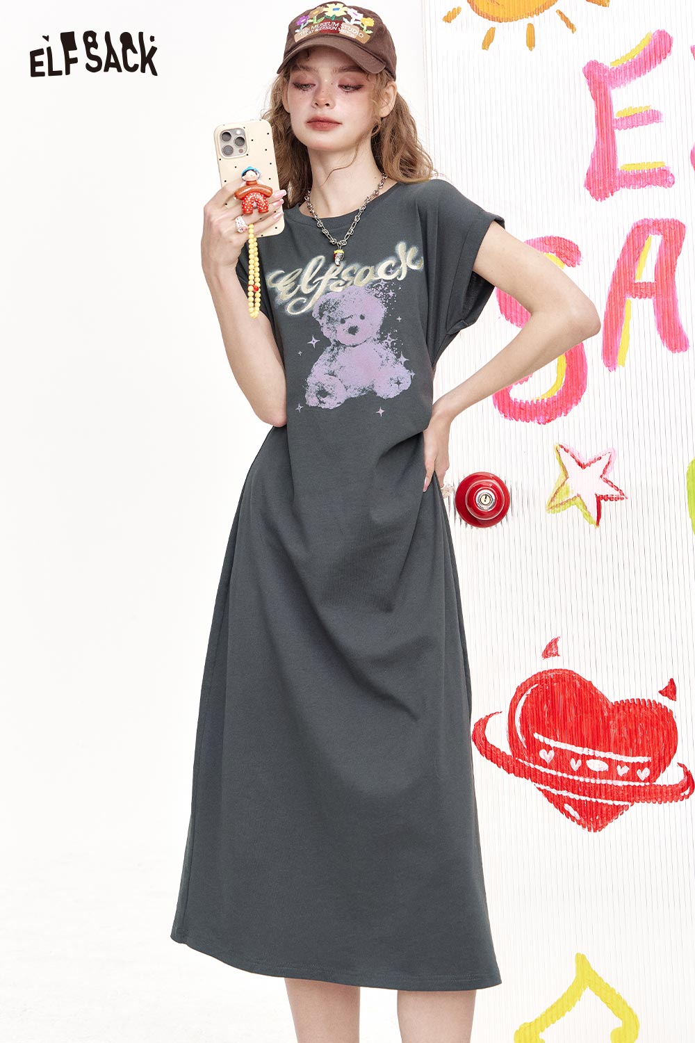 Cotton Jersey Smocked T-shirt Dress Letter Print
