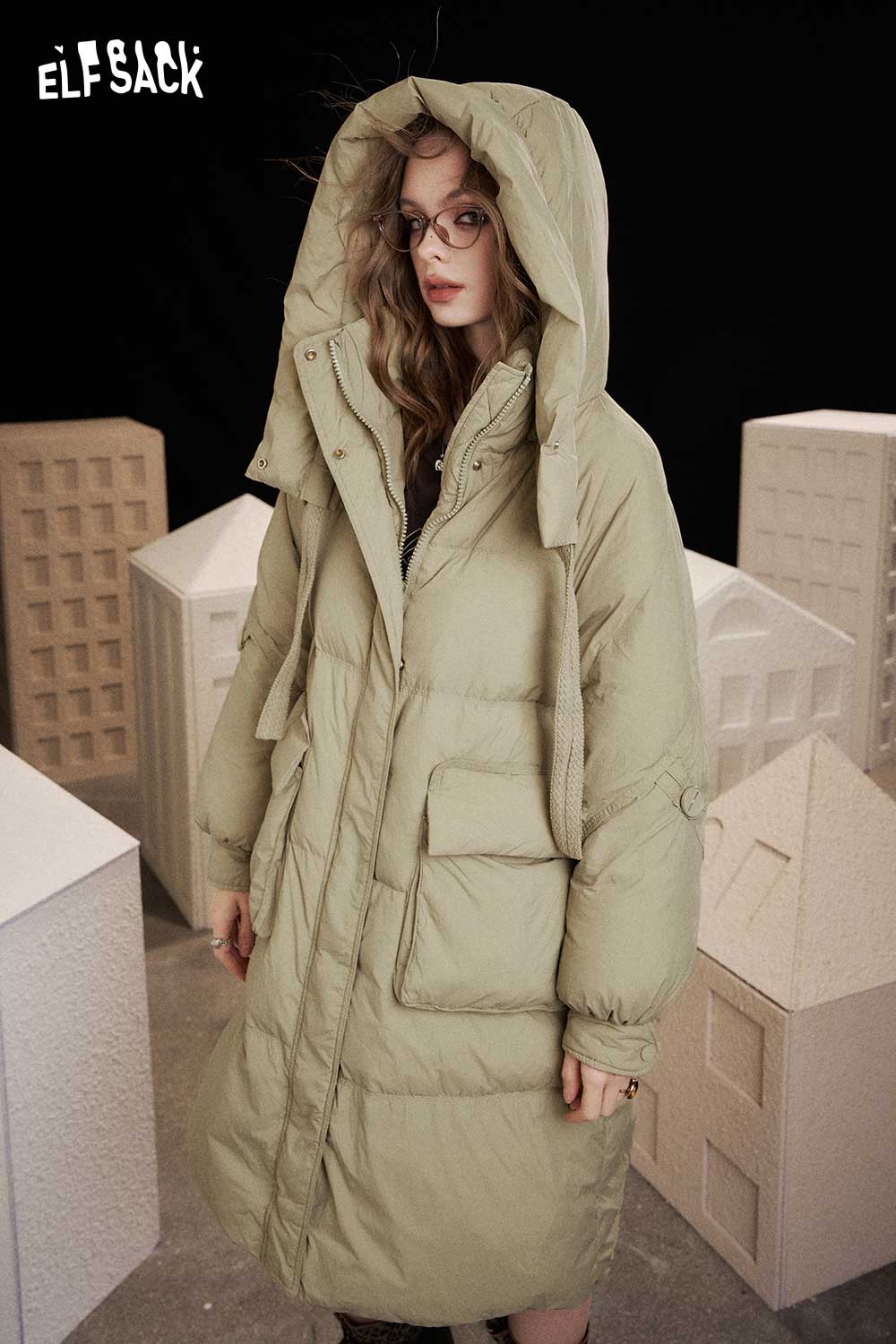 Nylon Long Hooded Oversize Solid Color Down Coat