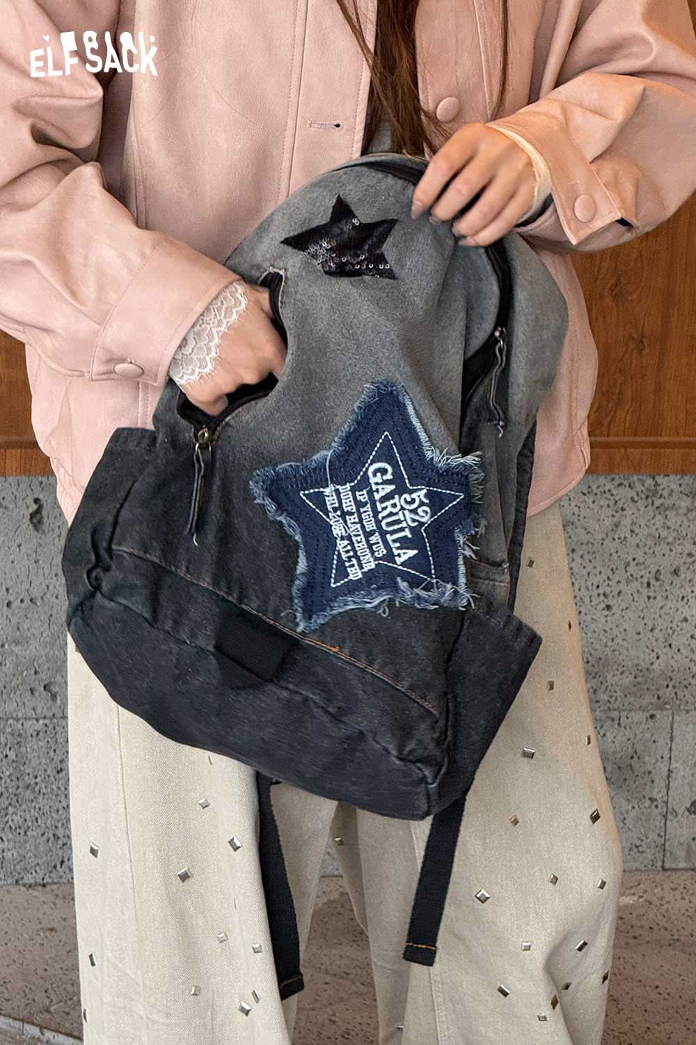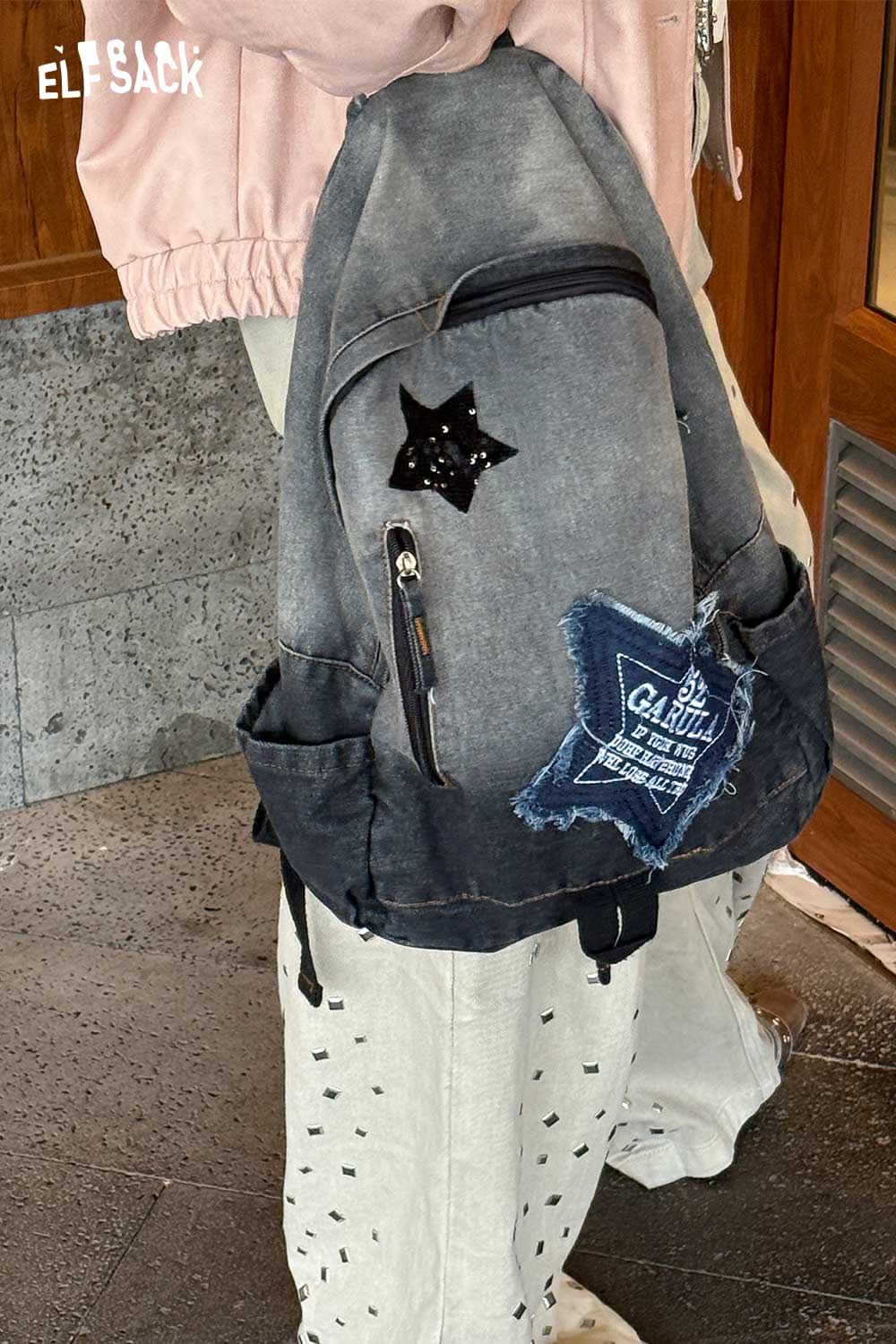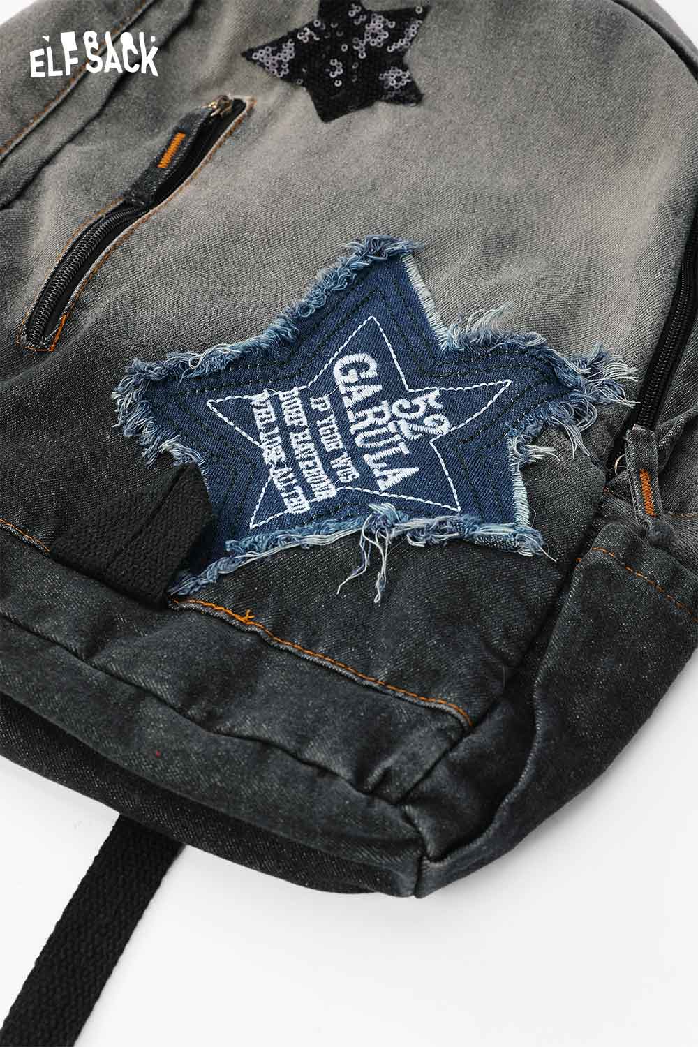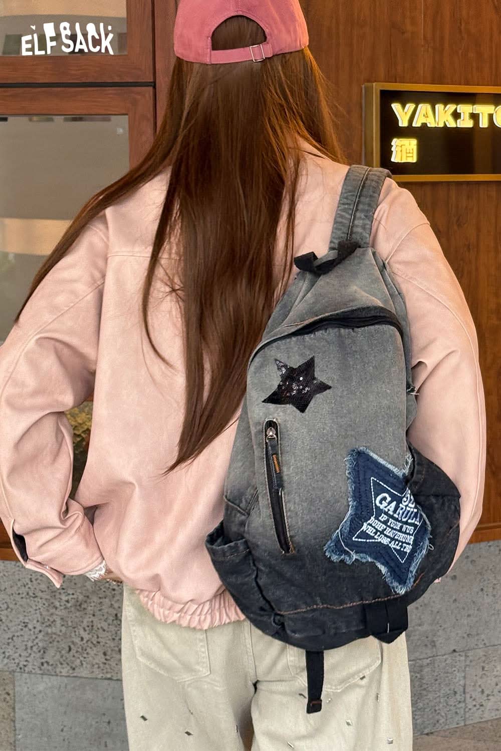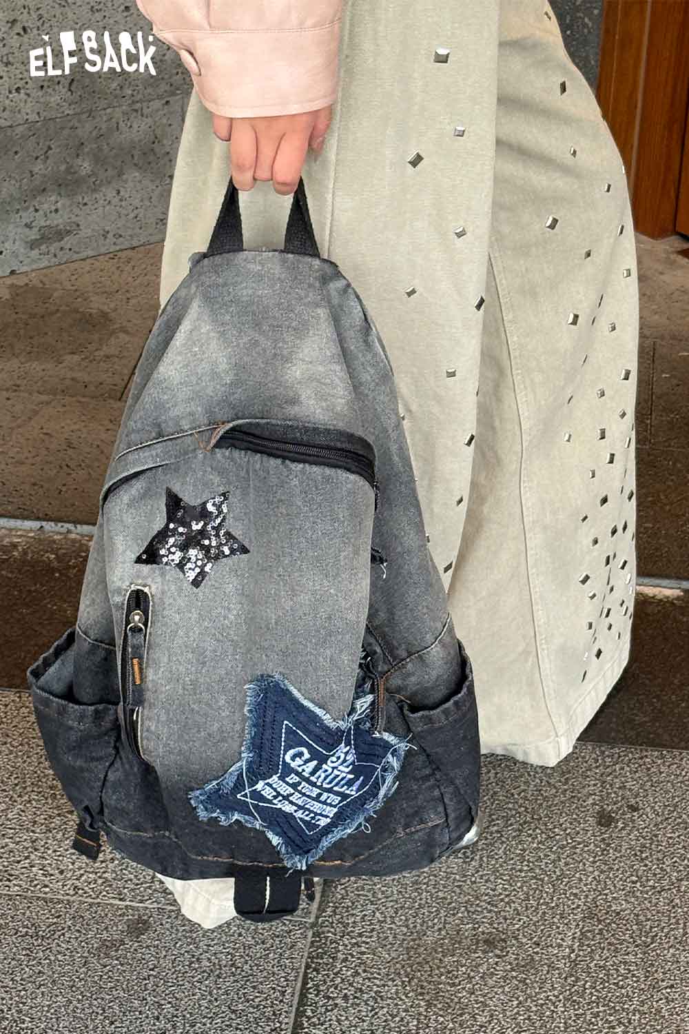 Cotton Washed Gradient Denim Large Star Embroidery Y2K Backpack