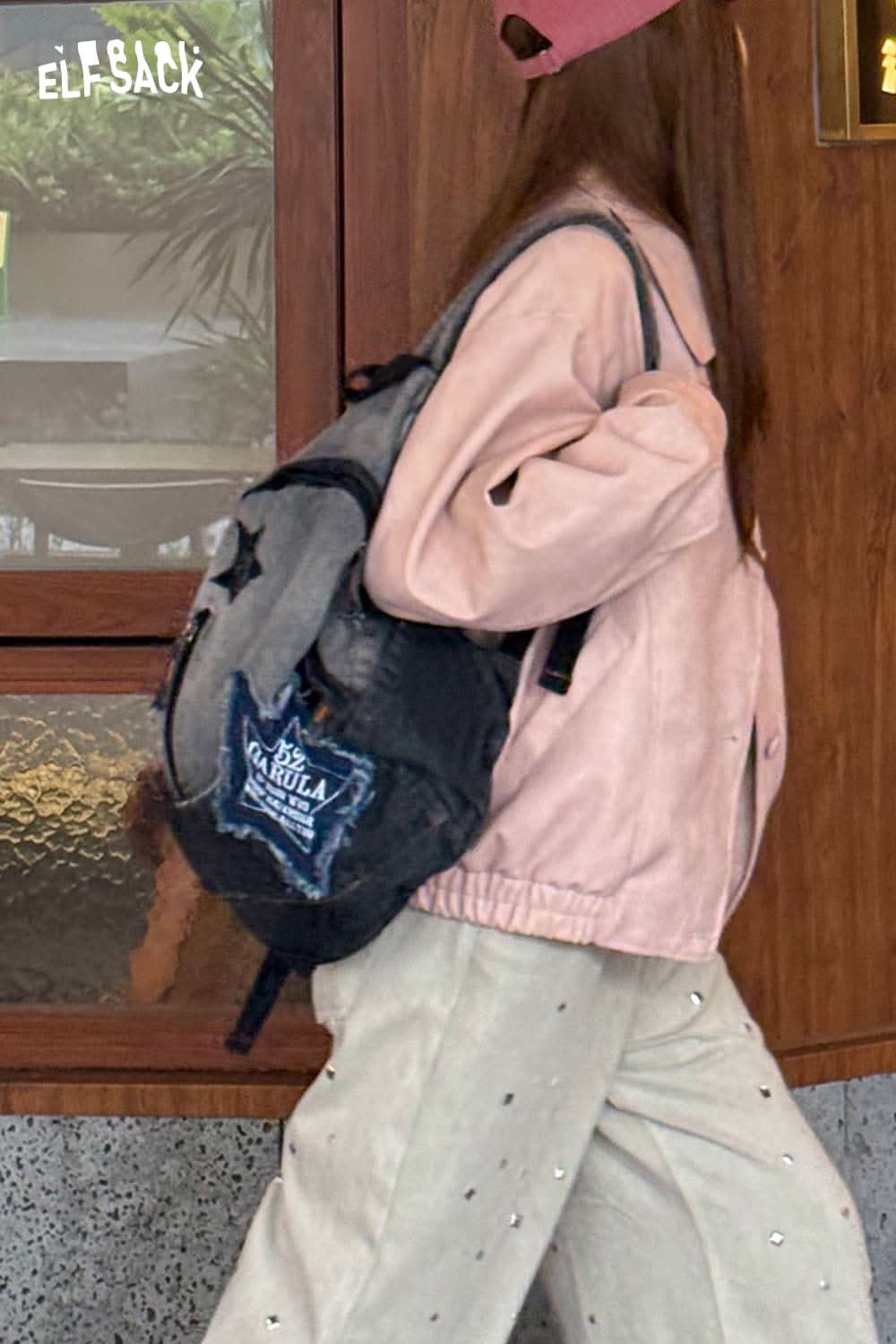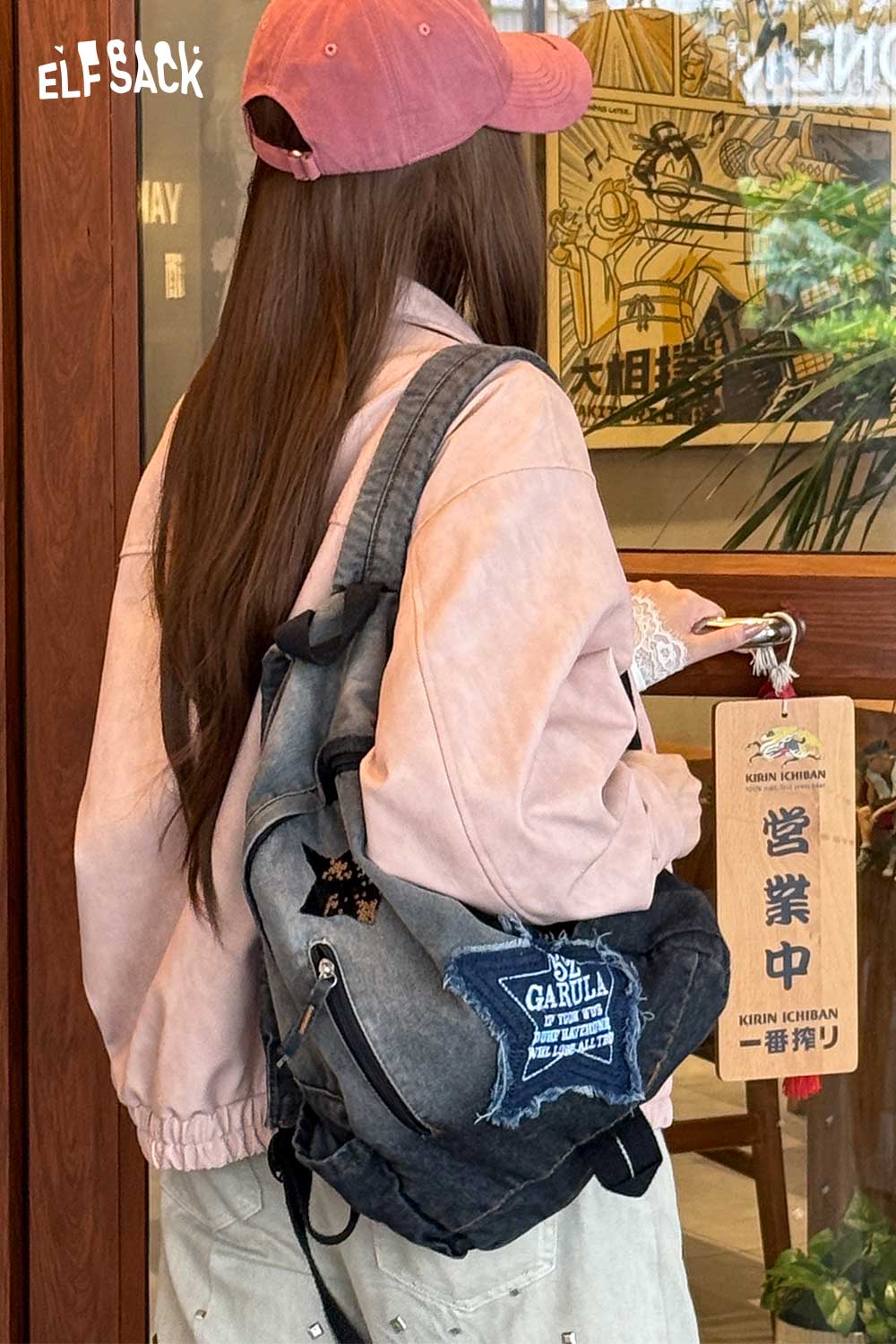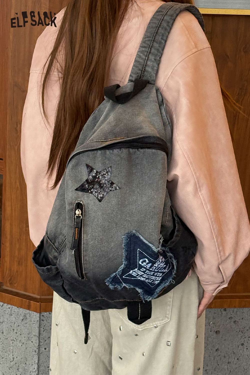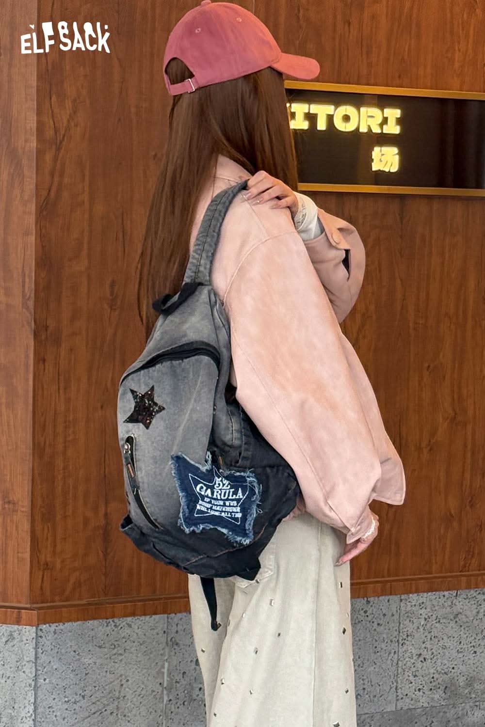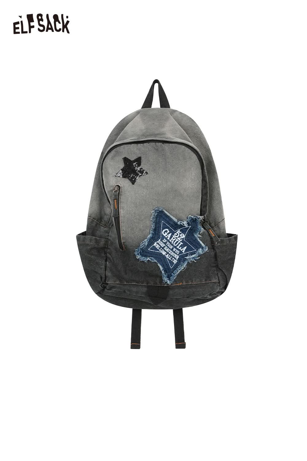 Cotton Washed Gradient Denim Large Star Embroidery Y2K Backpack