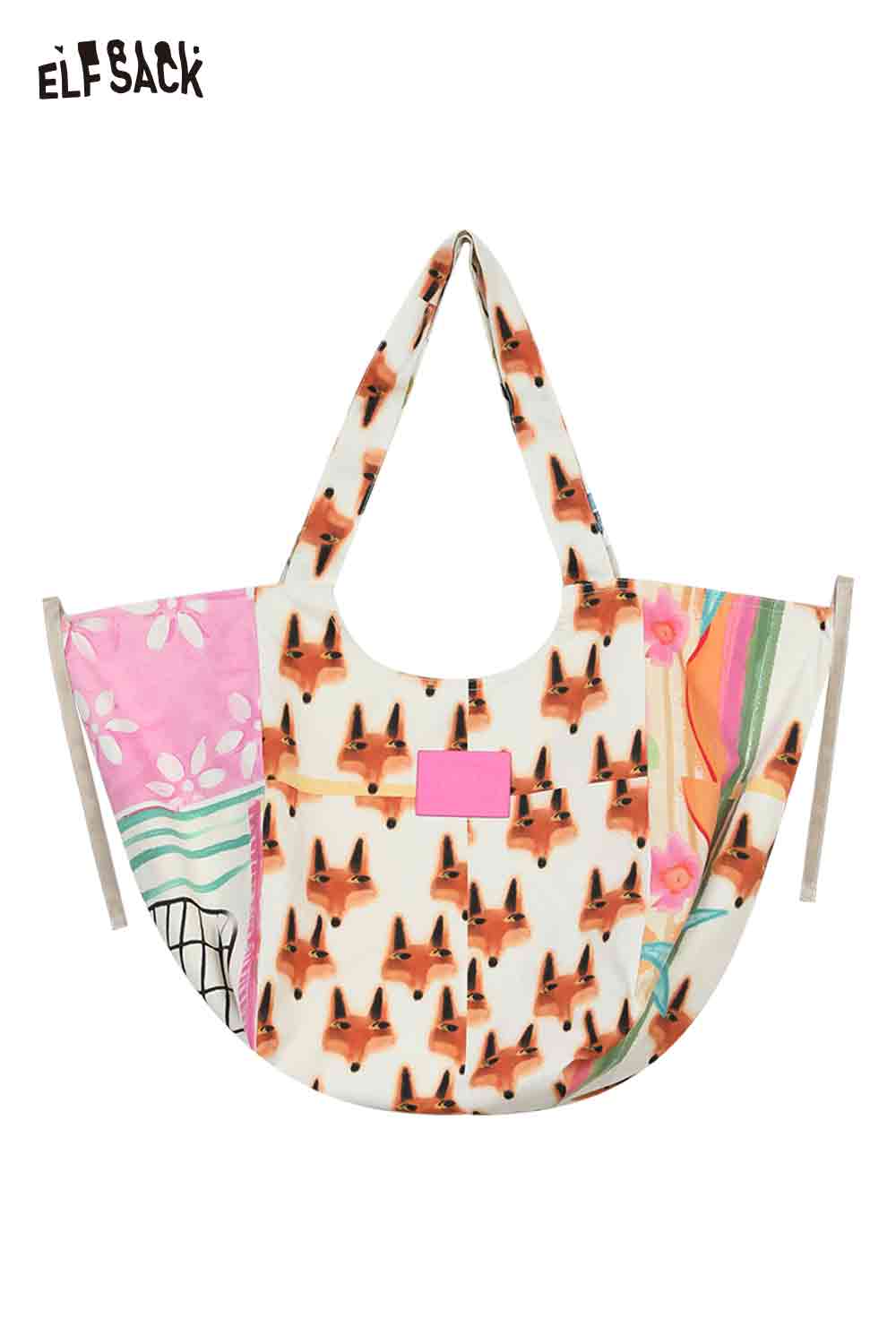 Polyester Oversized Structured Cartoon Patchwork Printed Canvas Shoulder Bag