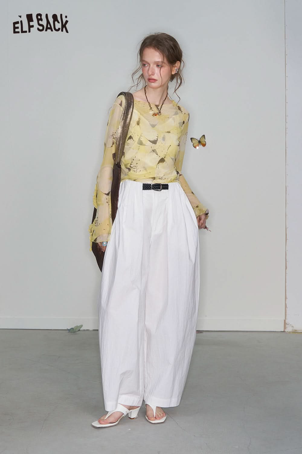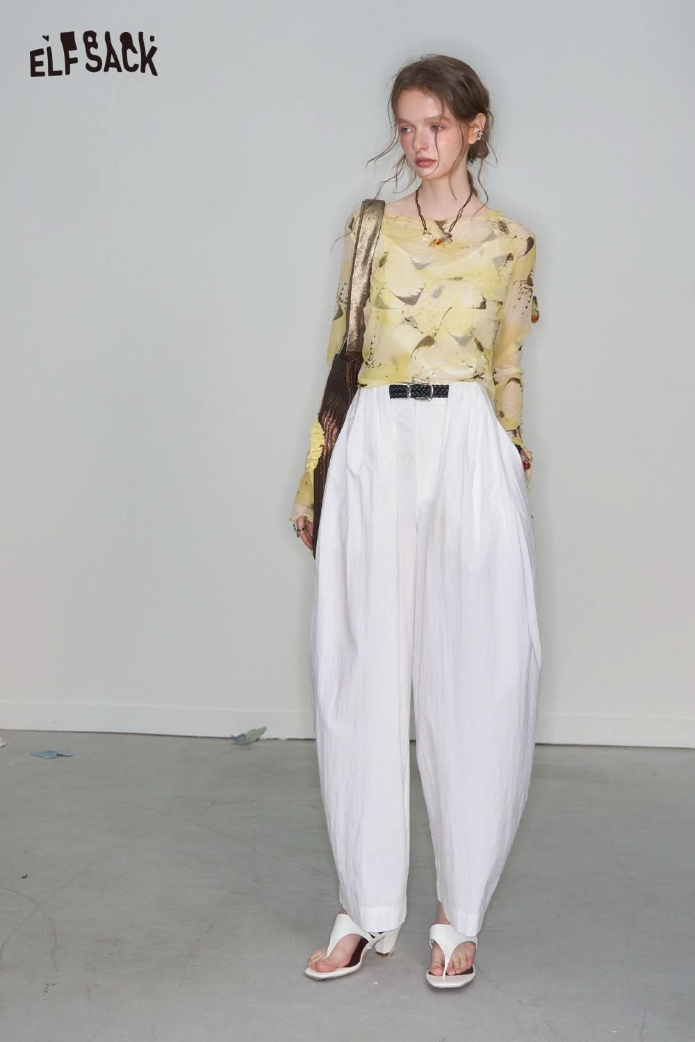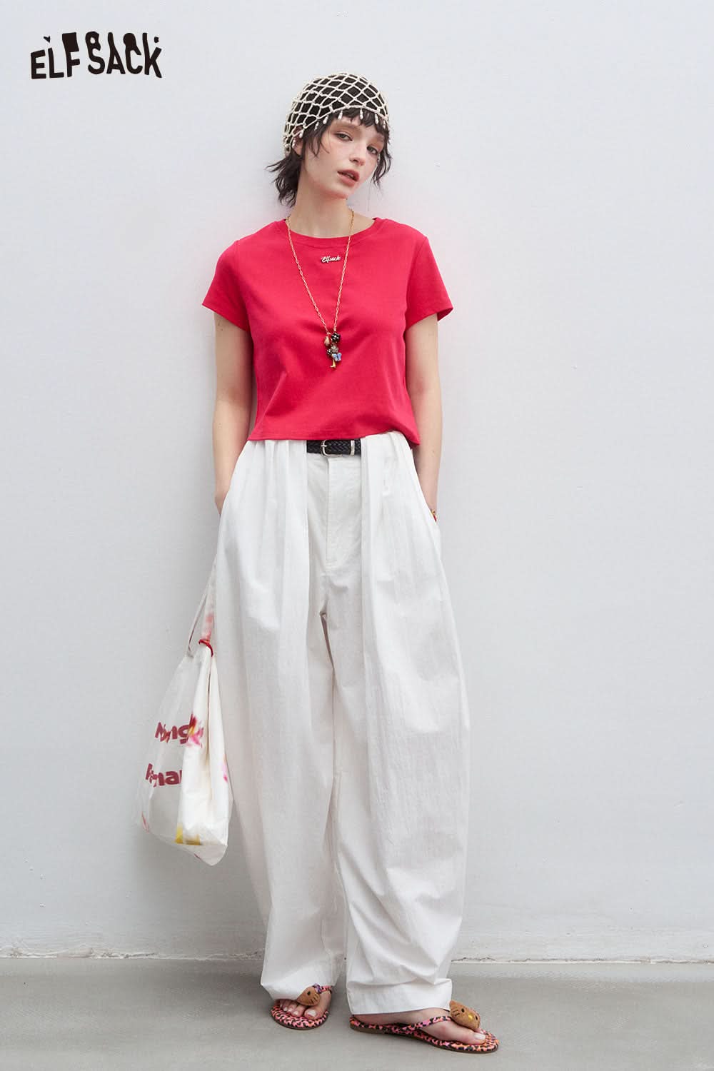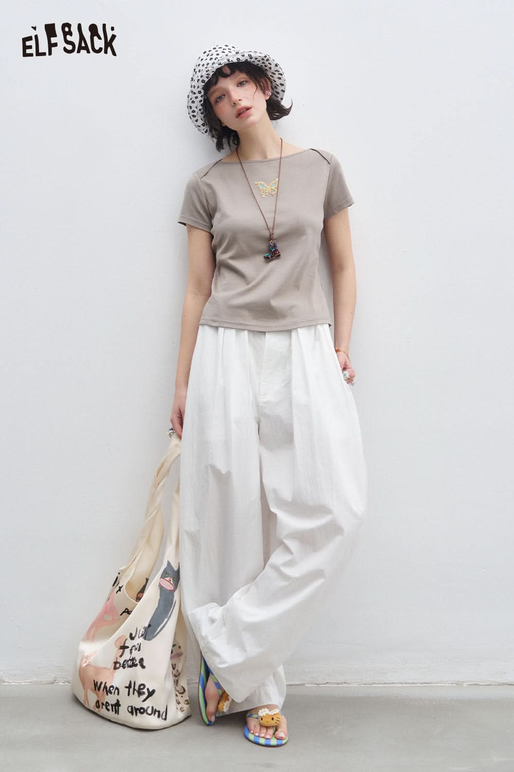 Cotton Blend Wide Leg Cropped Pants