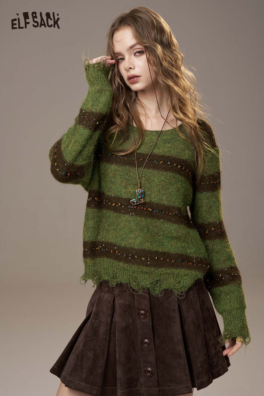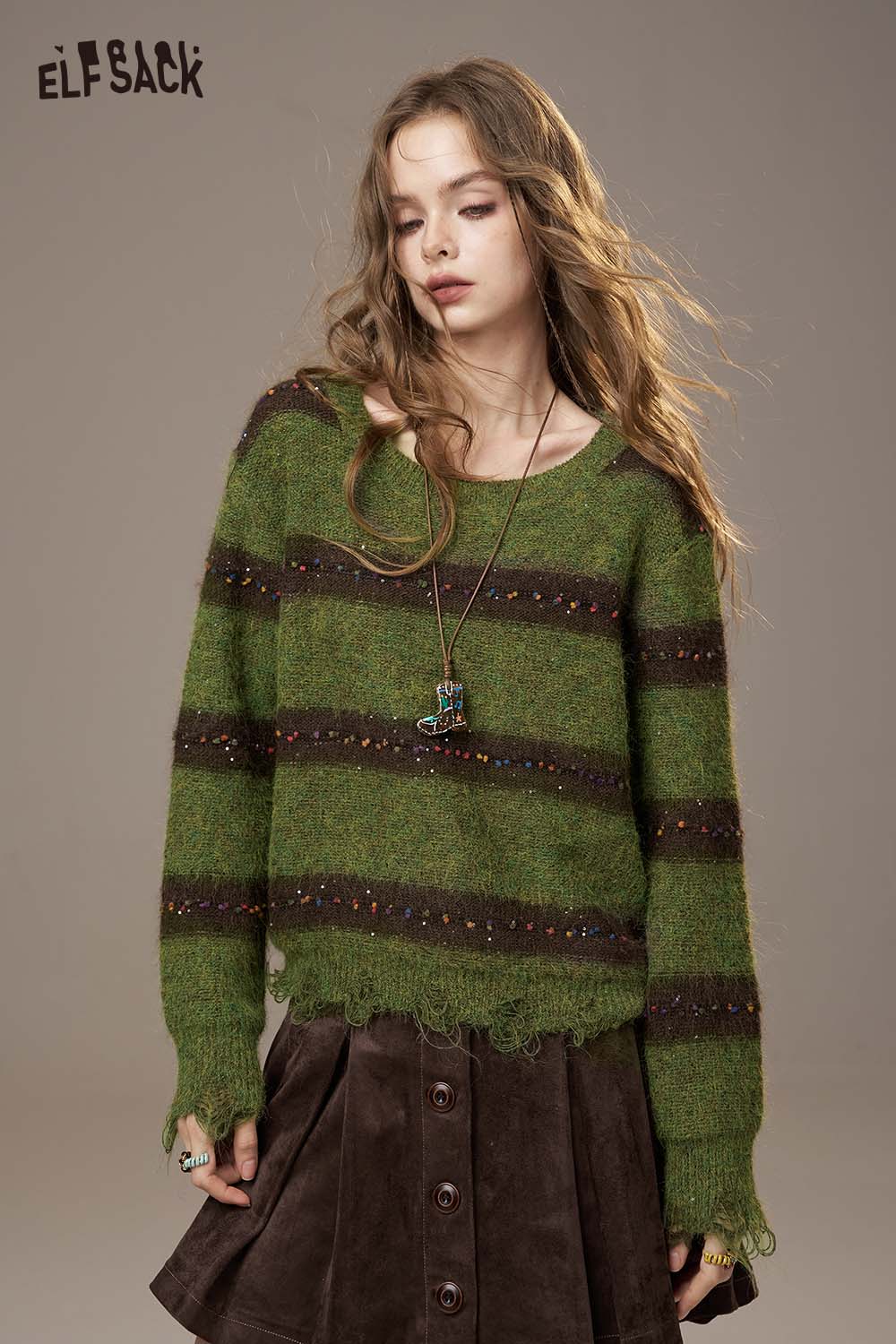 Soft Knit Color Block Striped Design Loose Fit Sweater