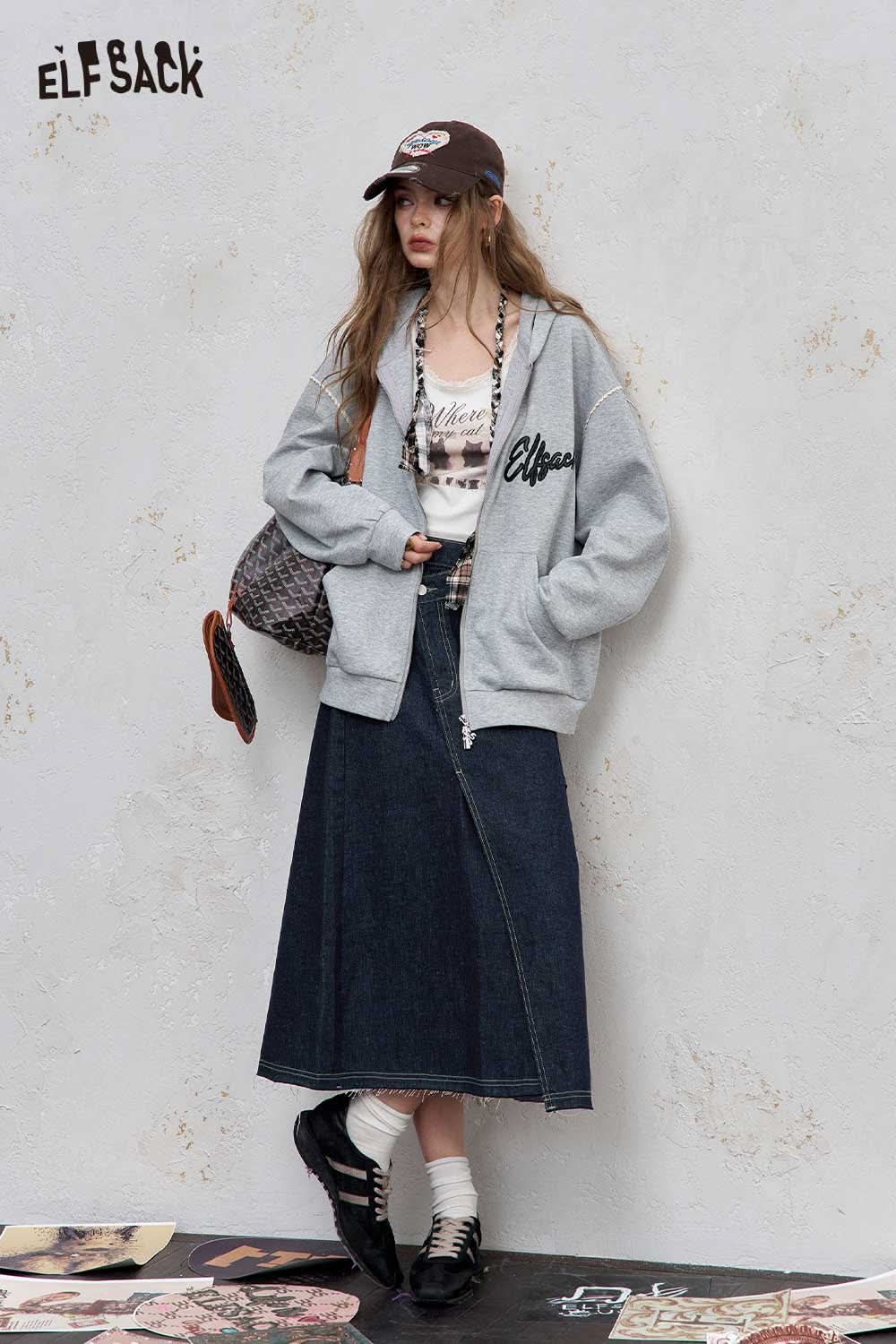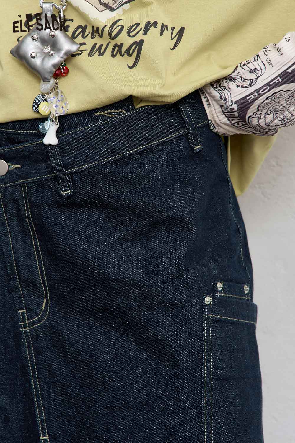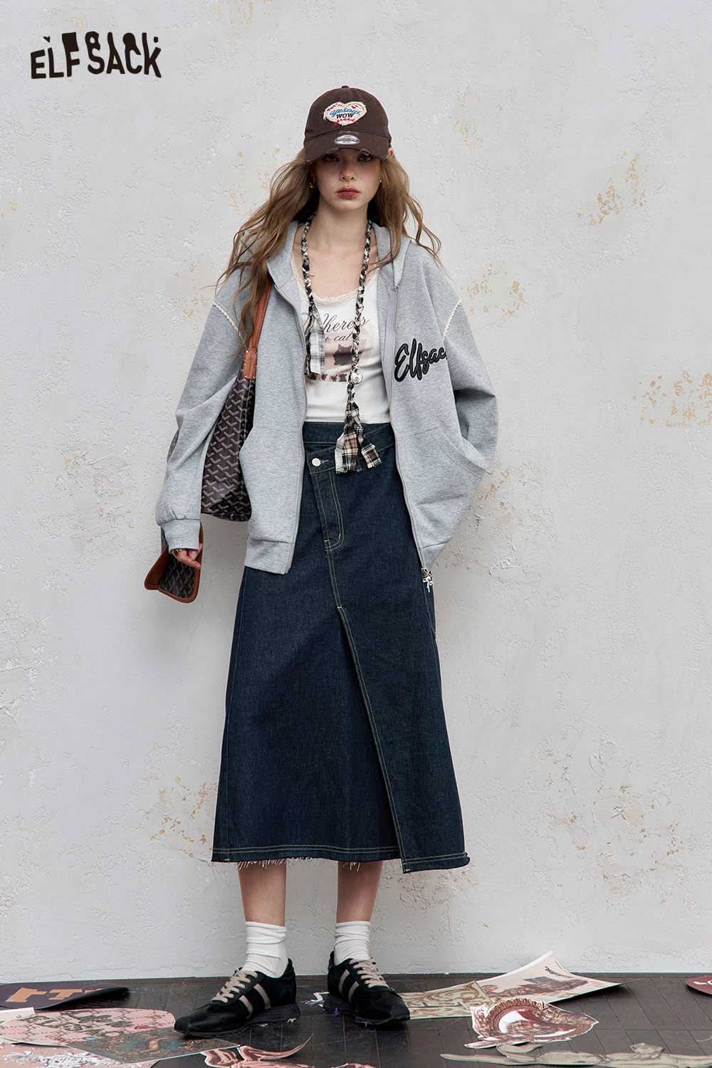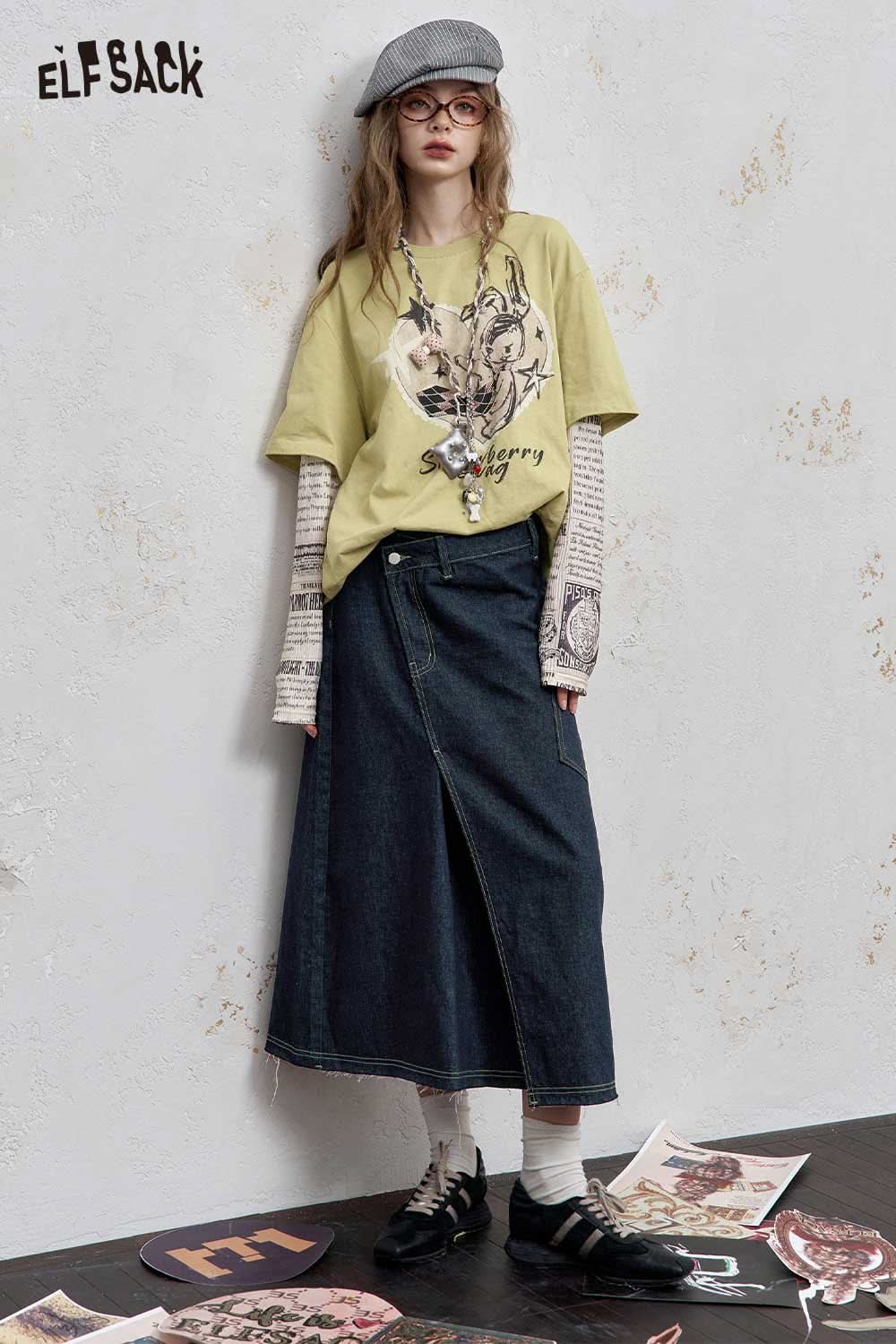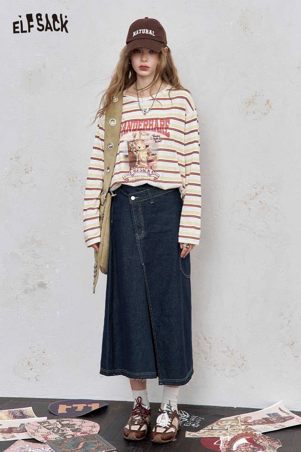 Stretch Denim Bias Cut Asymmetrical Hem Maxi Skirt