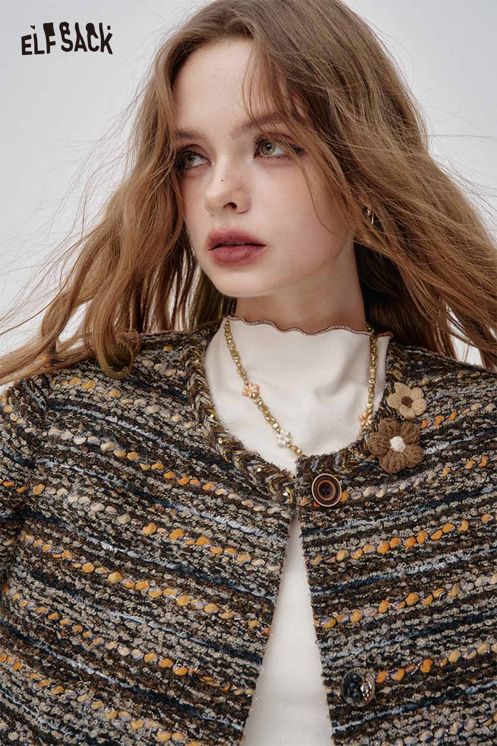 Wool Blend Coarse Knit 3D Flower Detail Structured Coat