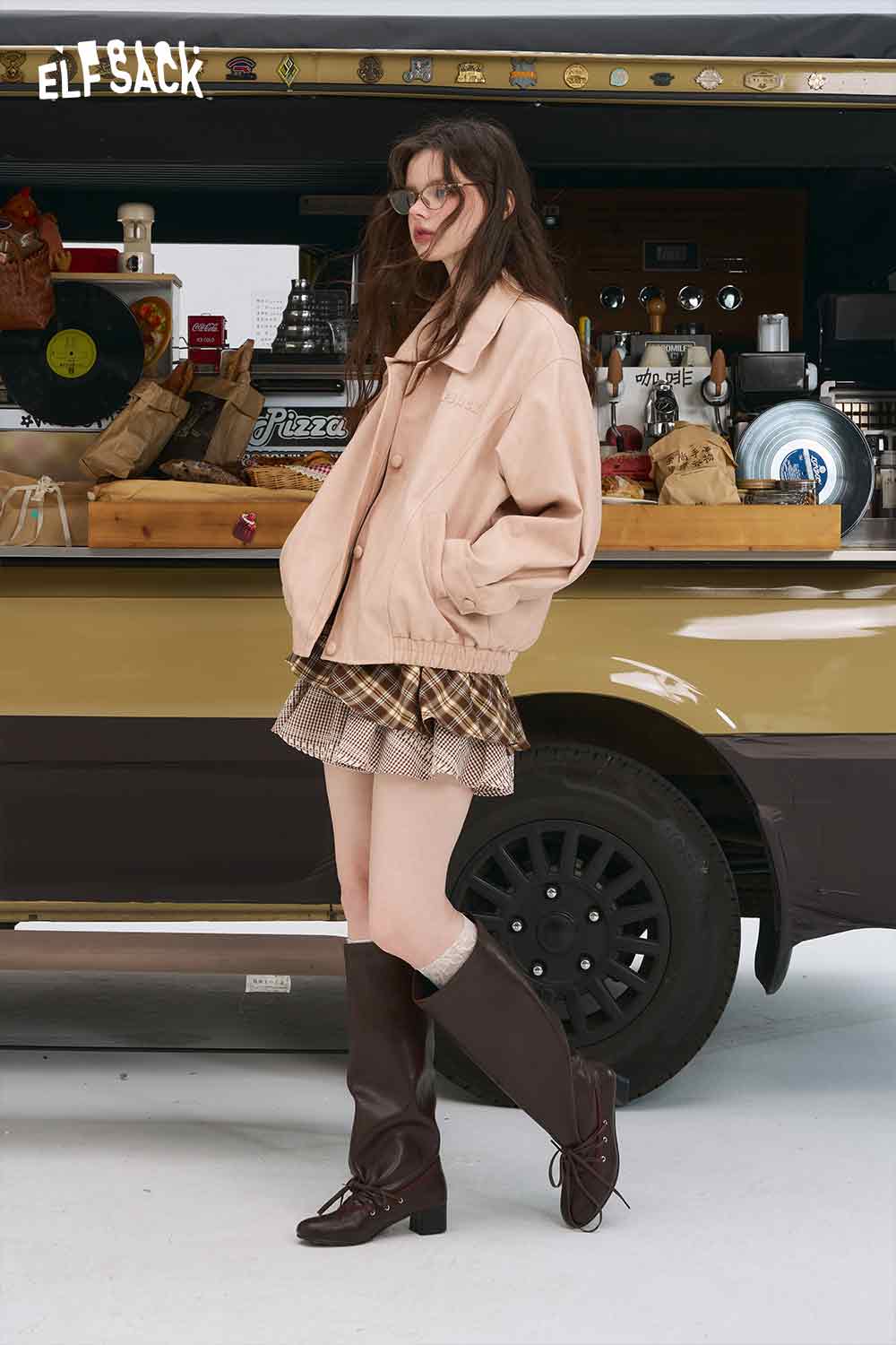 Matte PU Tailored Collar Slim-Fit Moto Jacket
