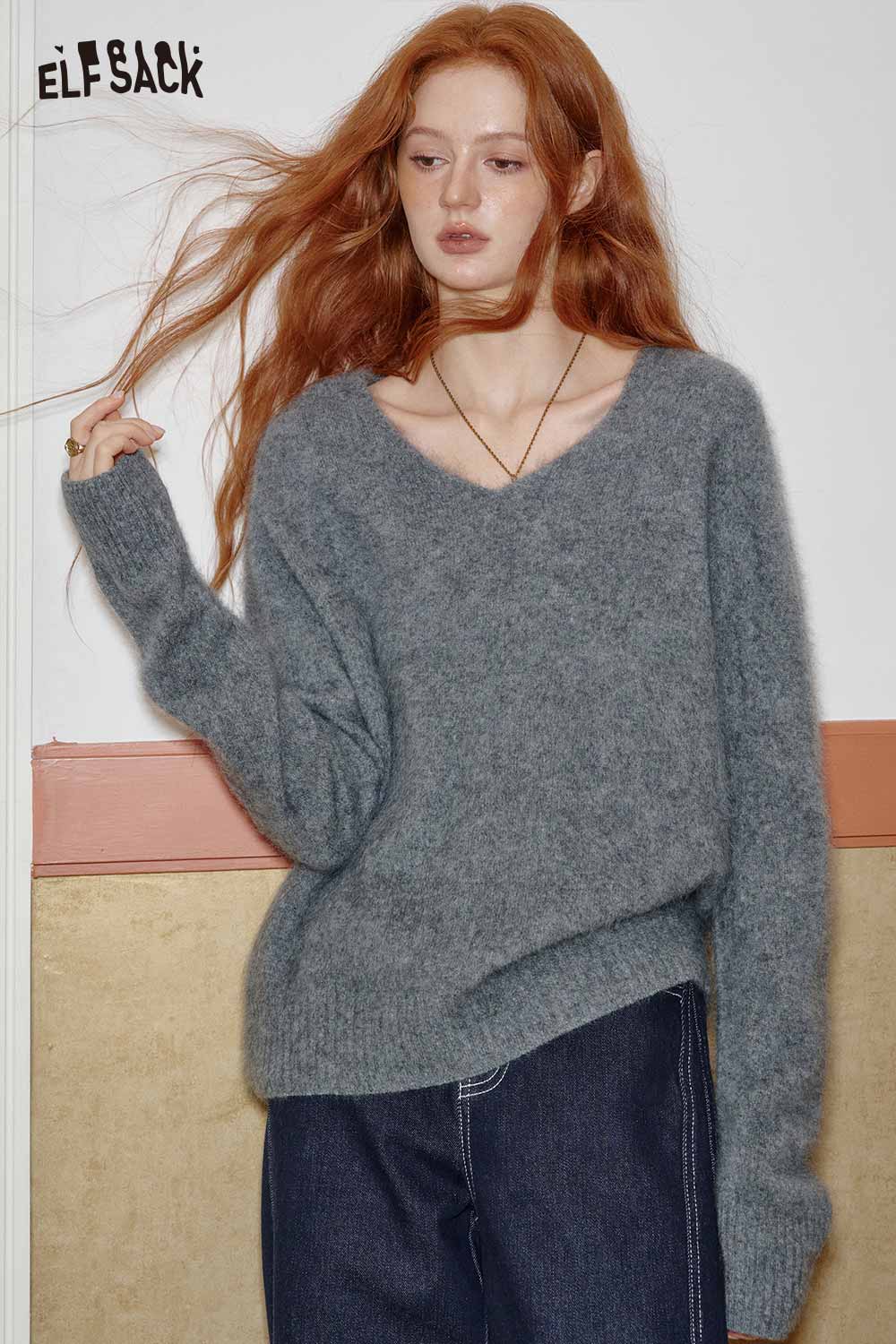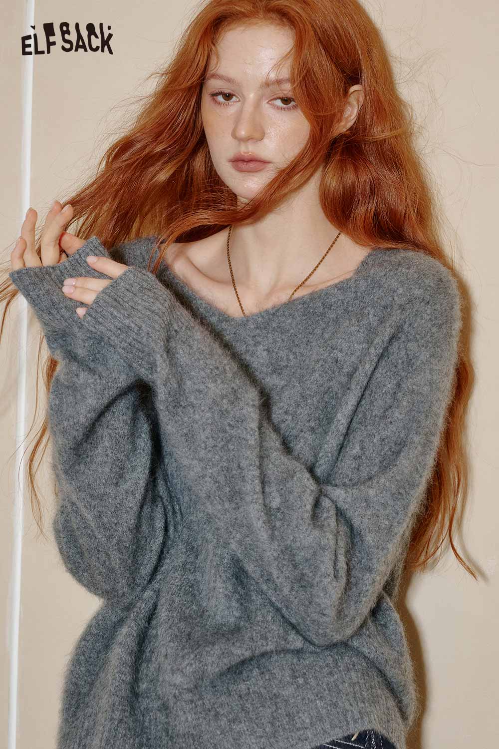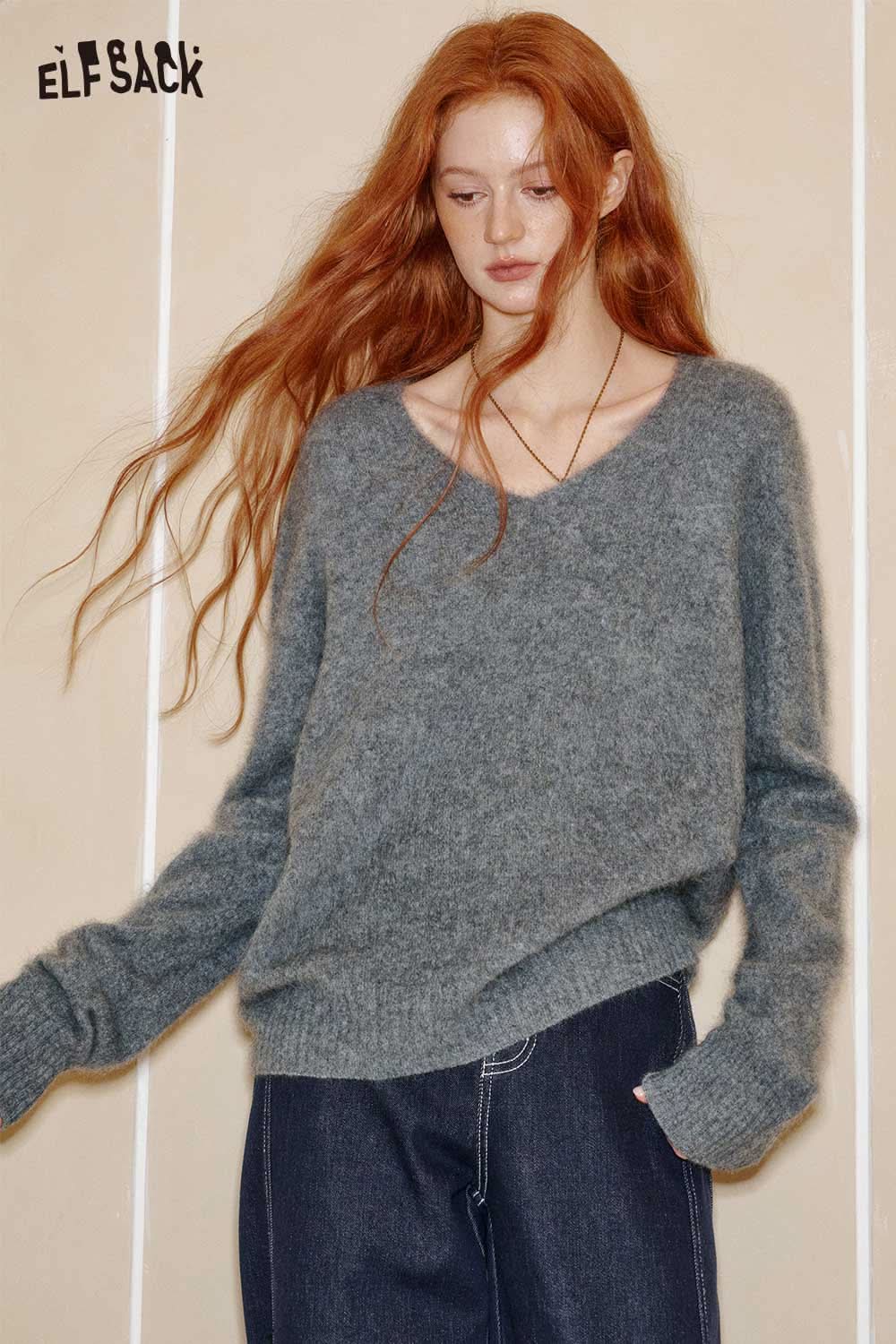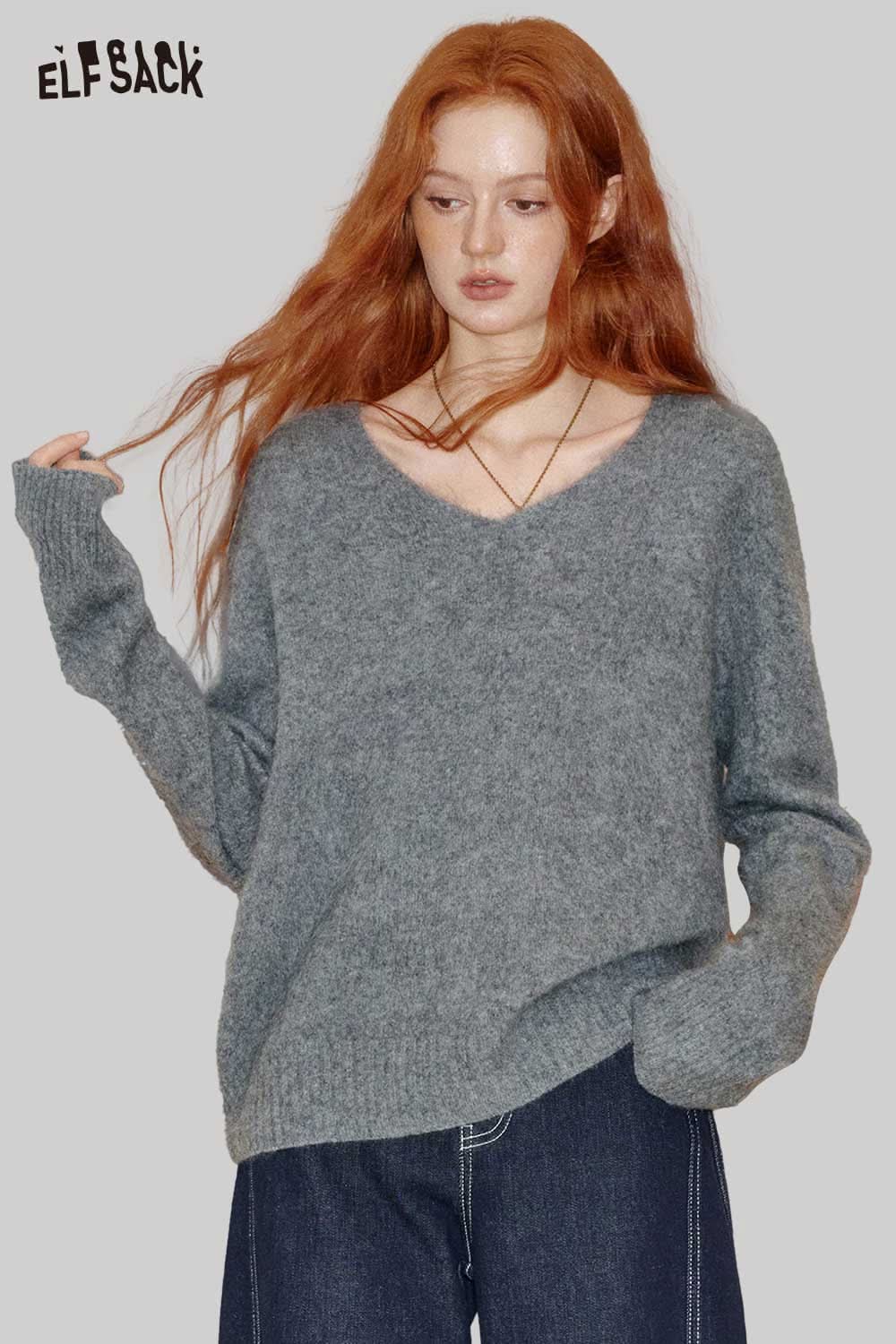 Wool Blend Oversized Crewneck Sweater Minimalist Design Relaxed Fit