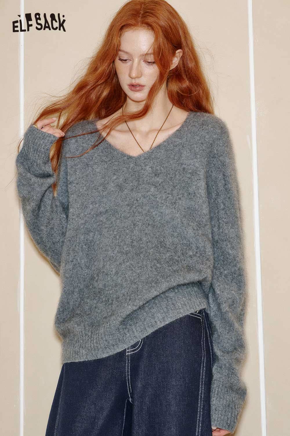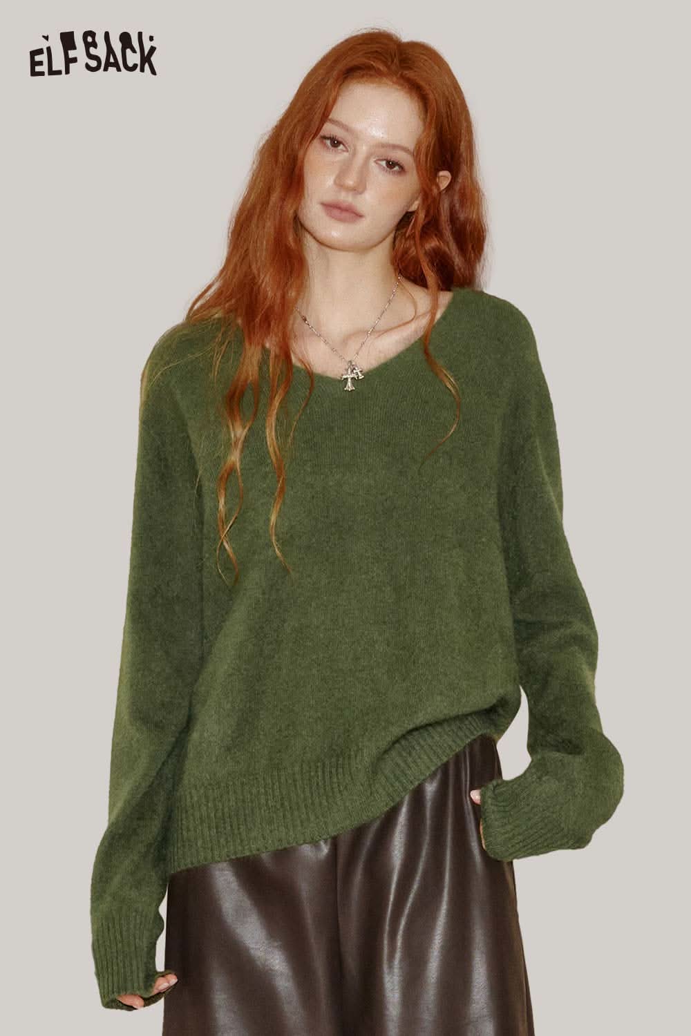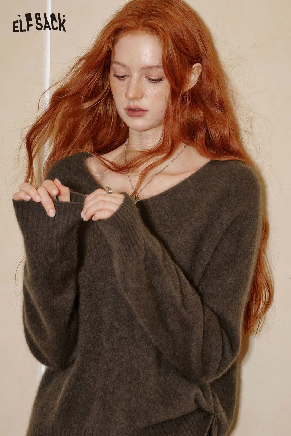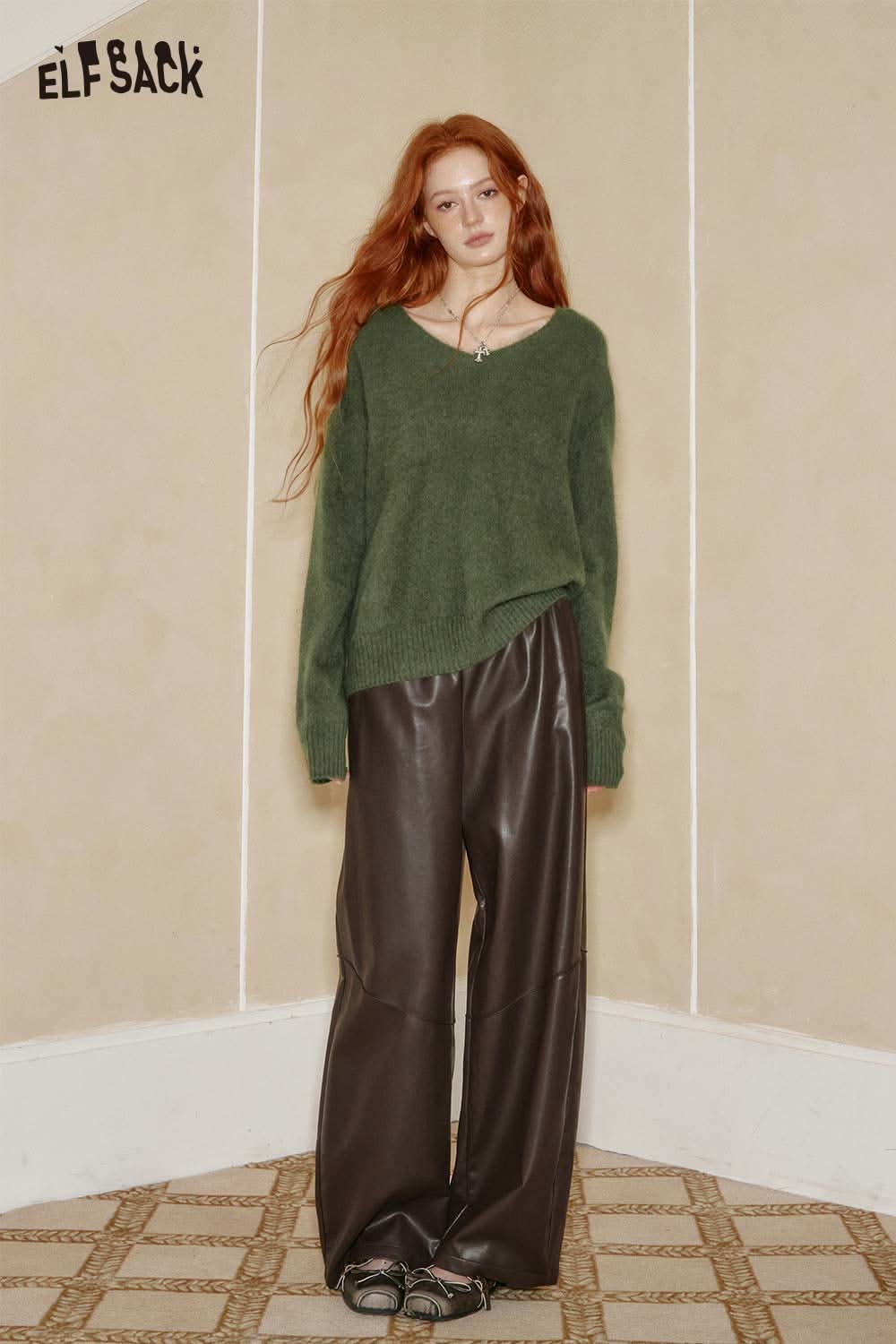 Wool Blend Oversized Crewneck Sweater Minimalist Design Relaxed Fit