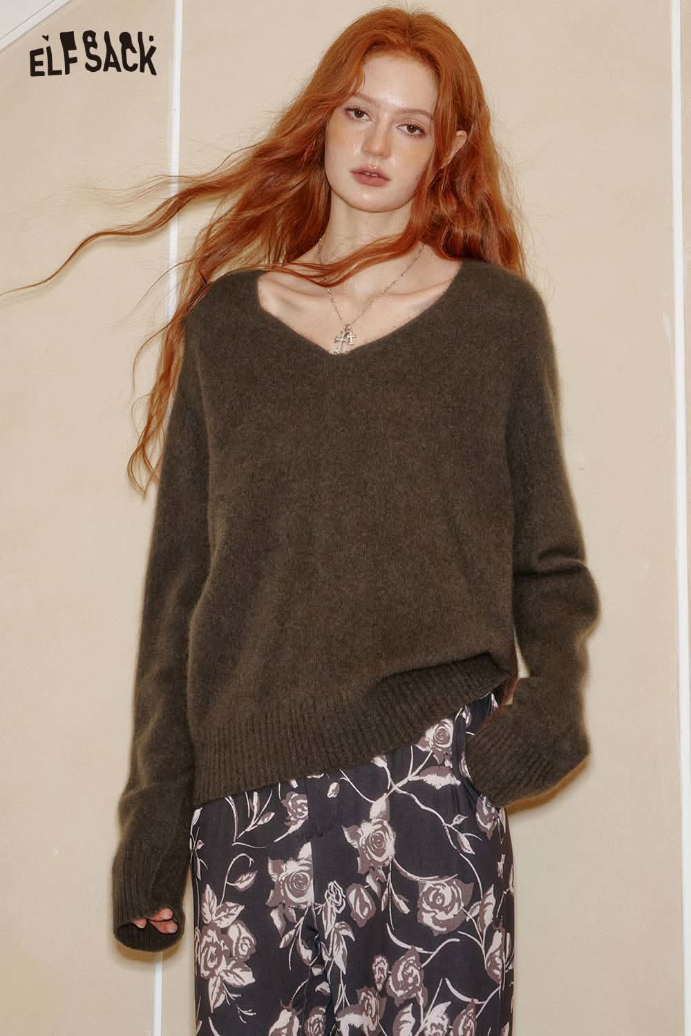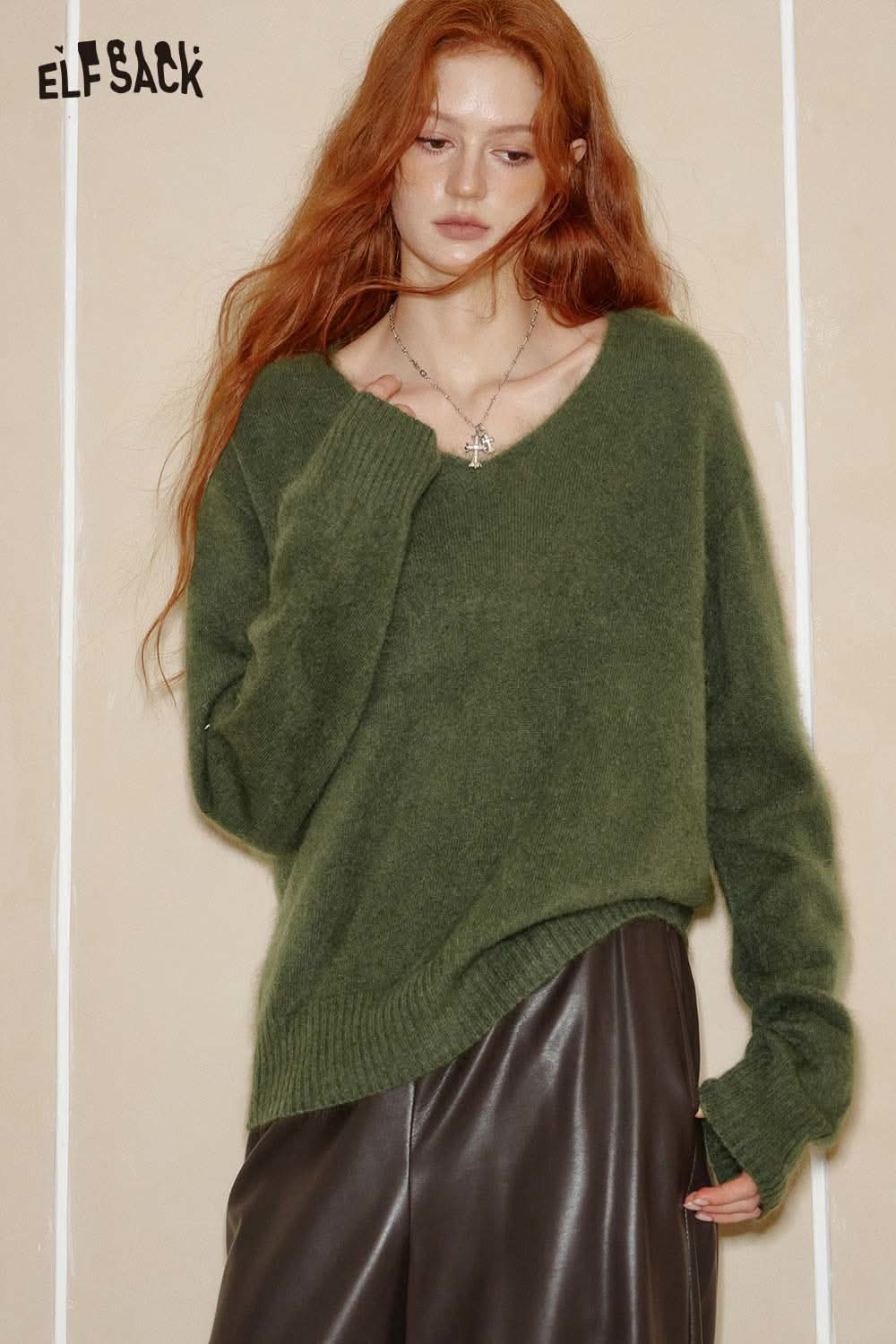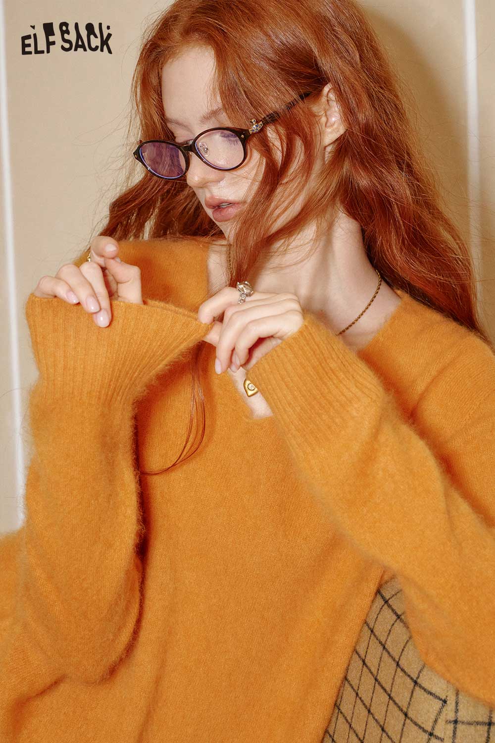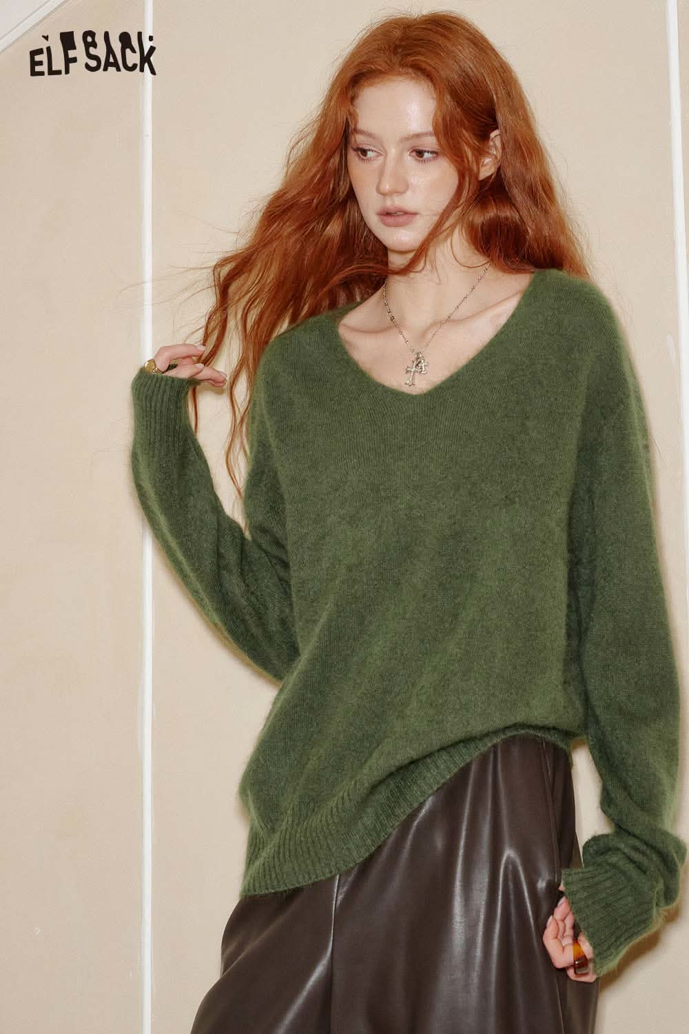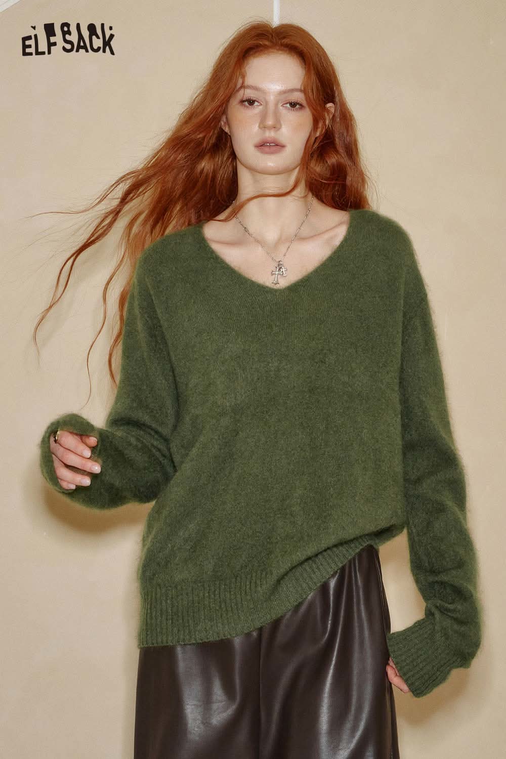 Wool Blend Oversized Crewneck Sweater Minimalist Design Relaxed Fit