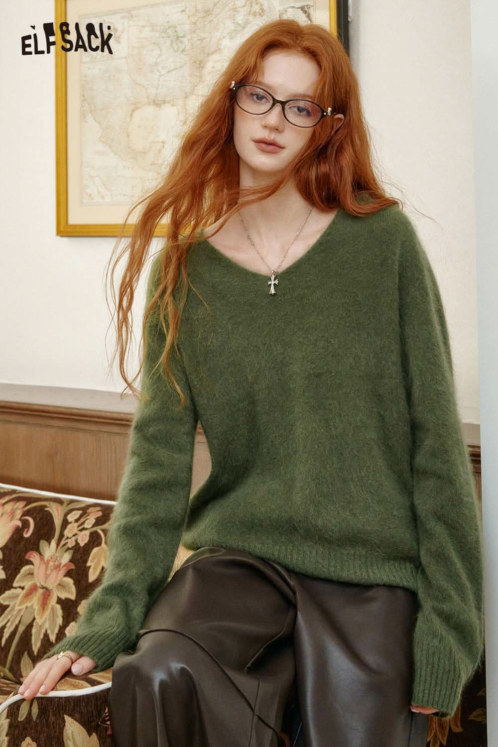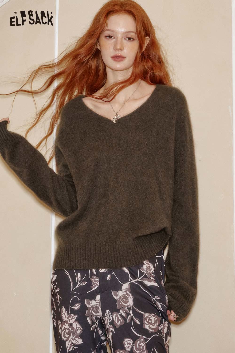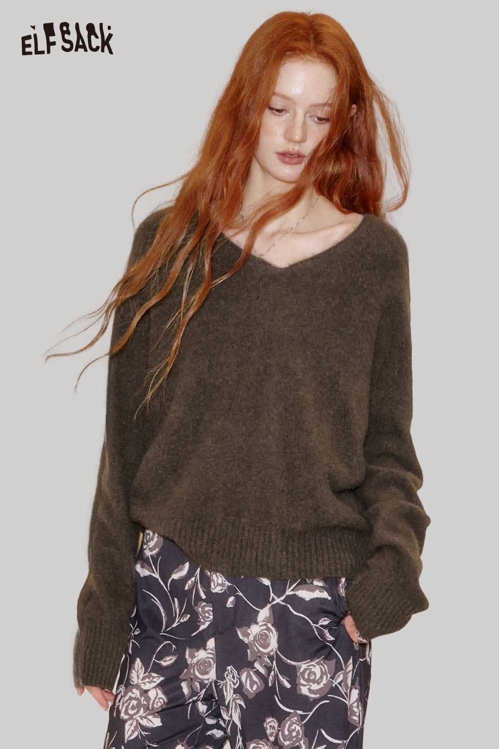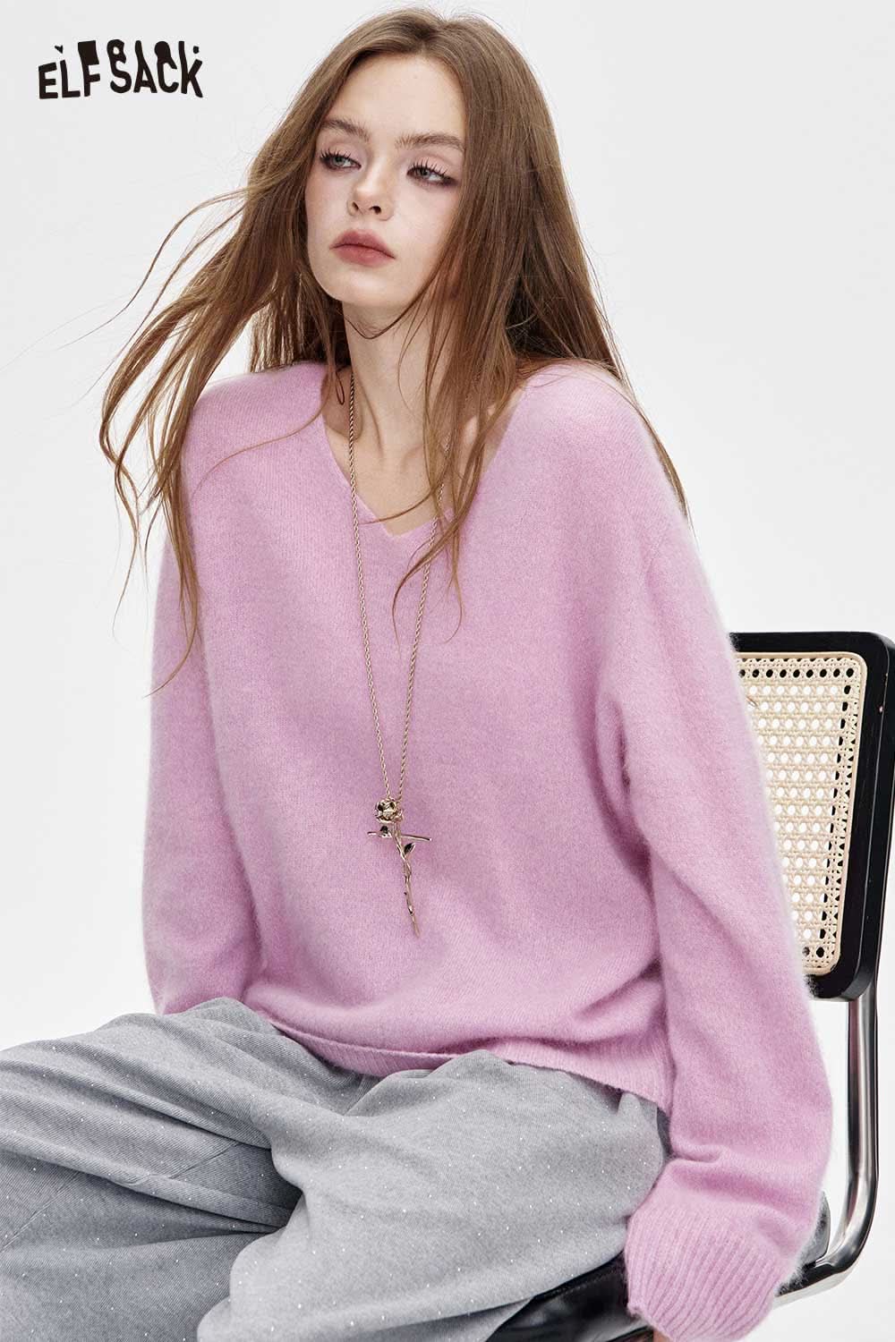 Wool Blend Oversized Crewneck Sweater Minimalist Design Relaxed Fit