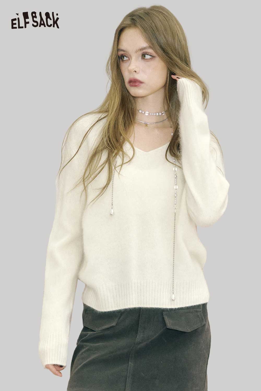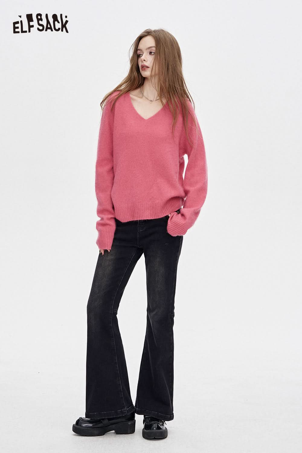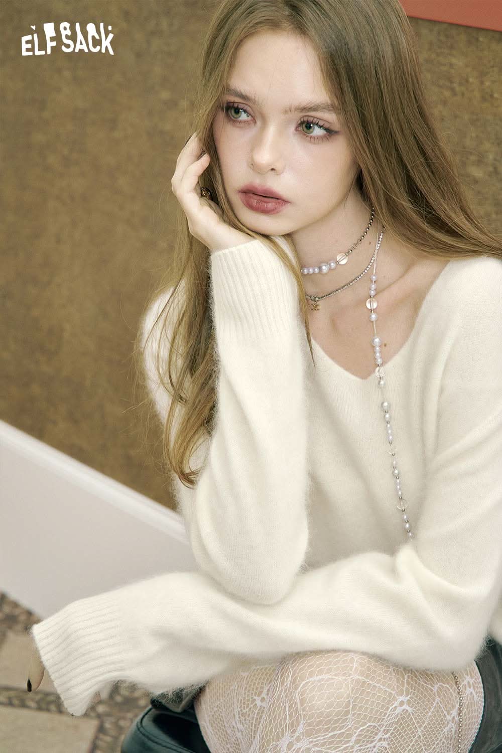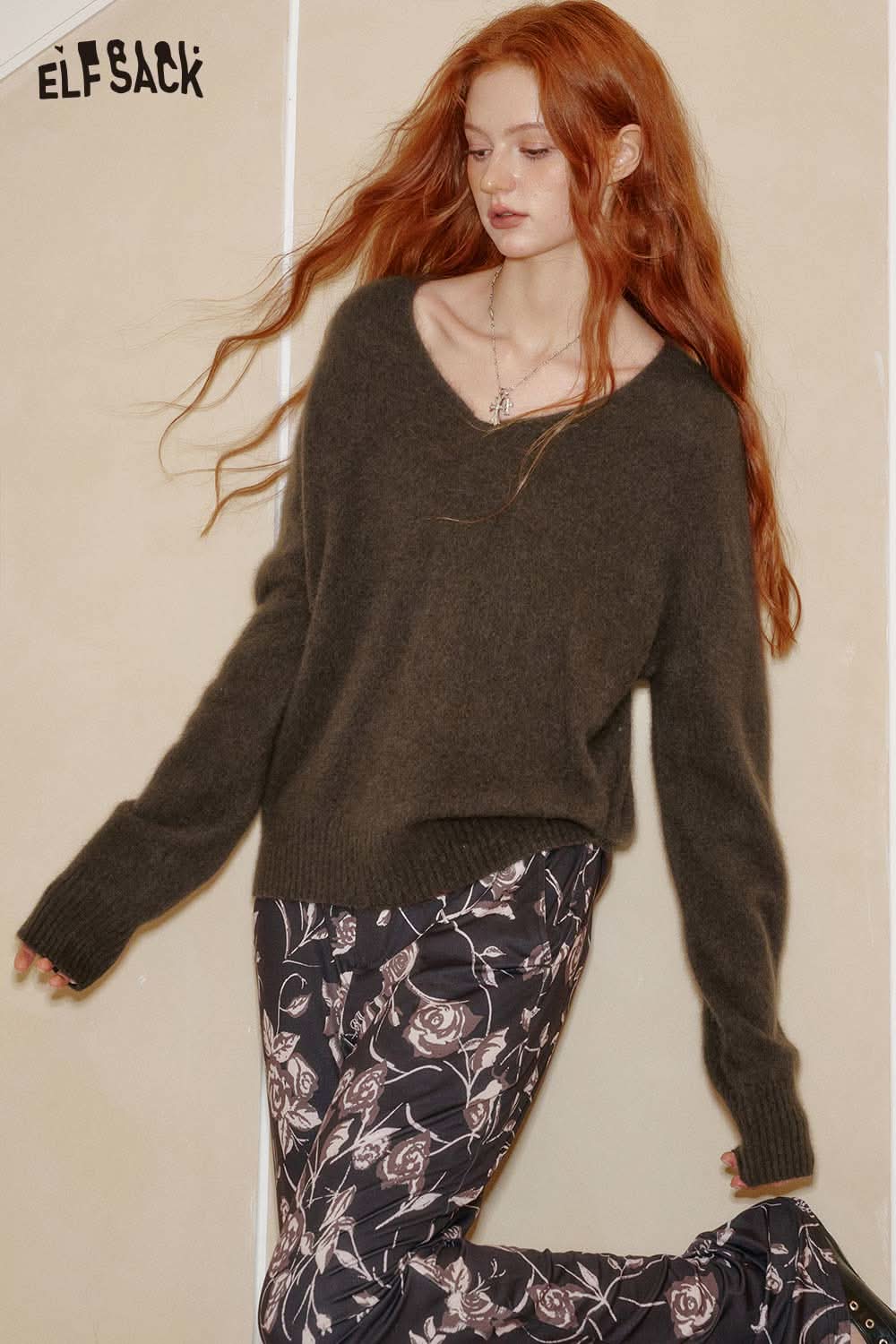 Wool Blend Oversized Crewneck Sweater Minimalist Design Relaxed Fit