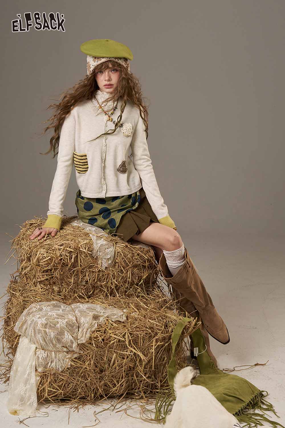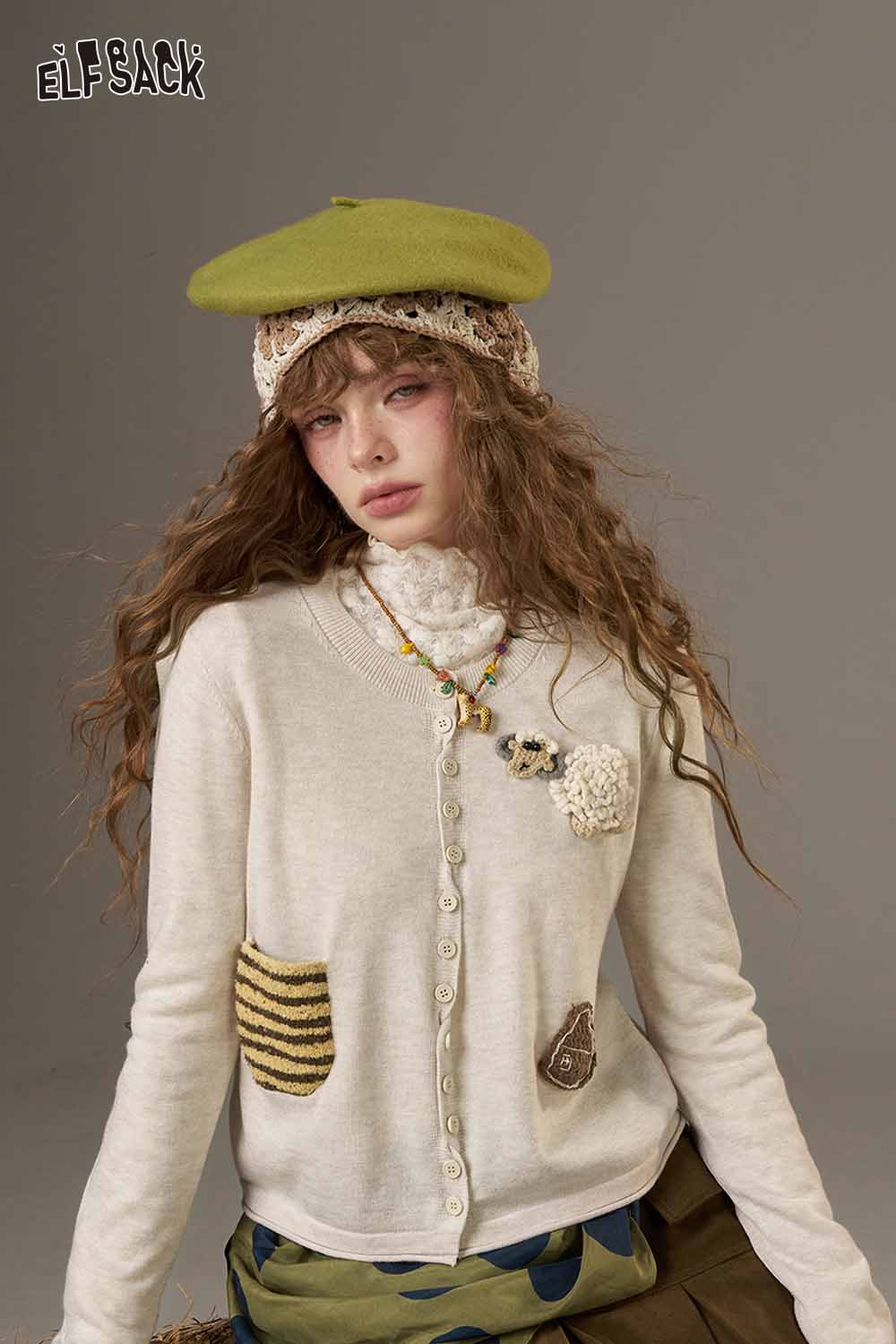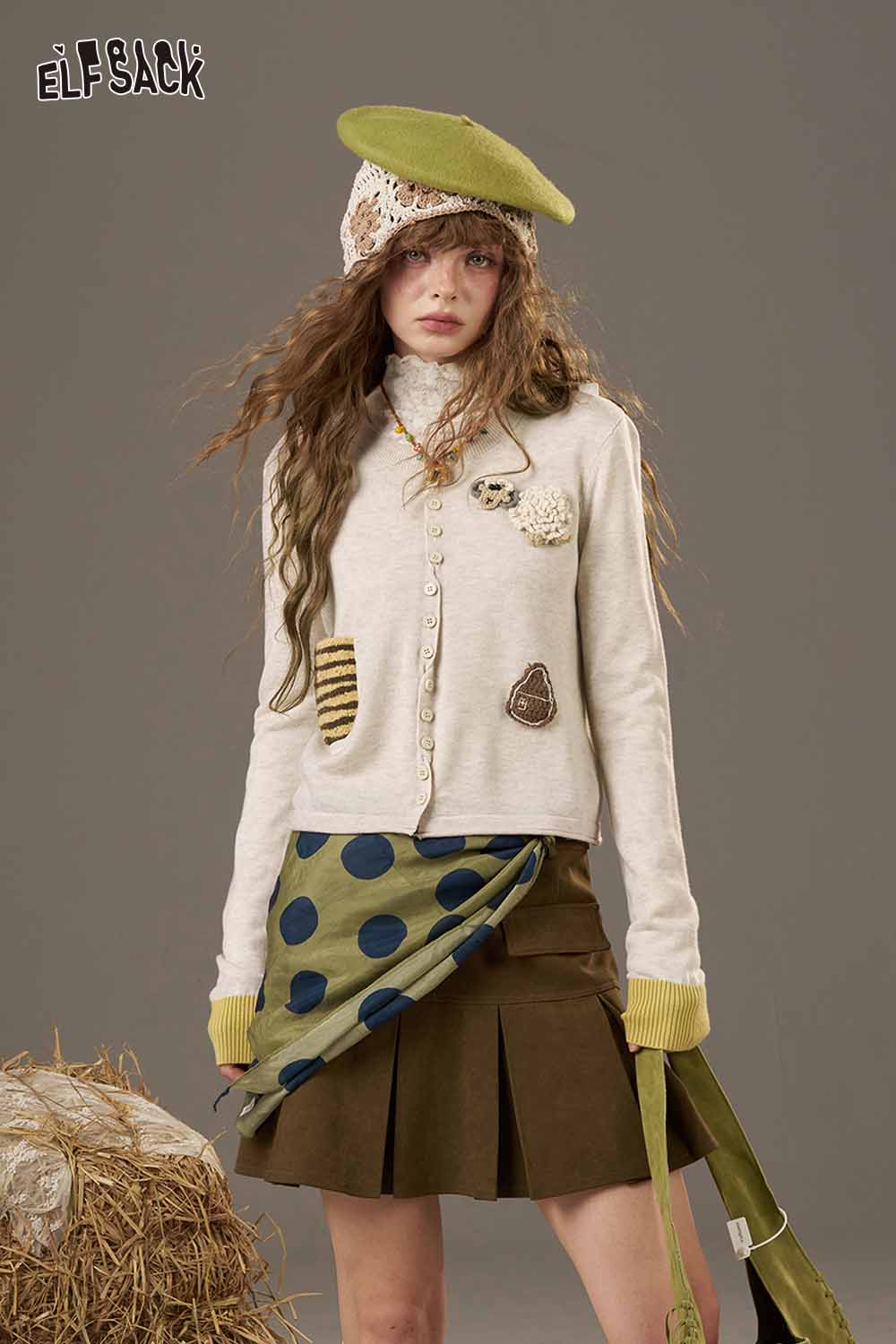 Soft Sheep Pattern Zebra Print Decoration Round Neck Knit Sweater