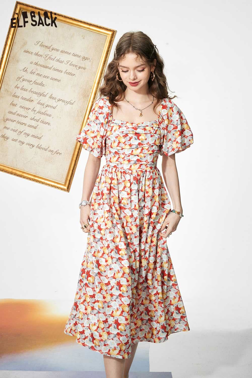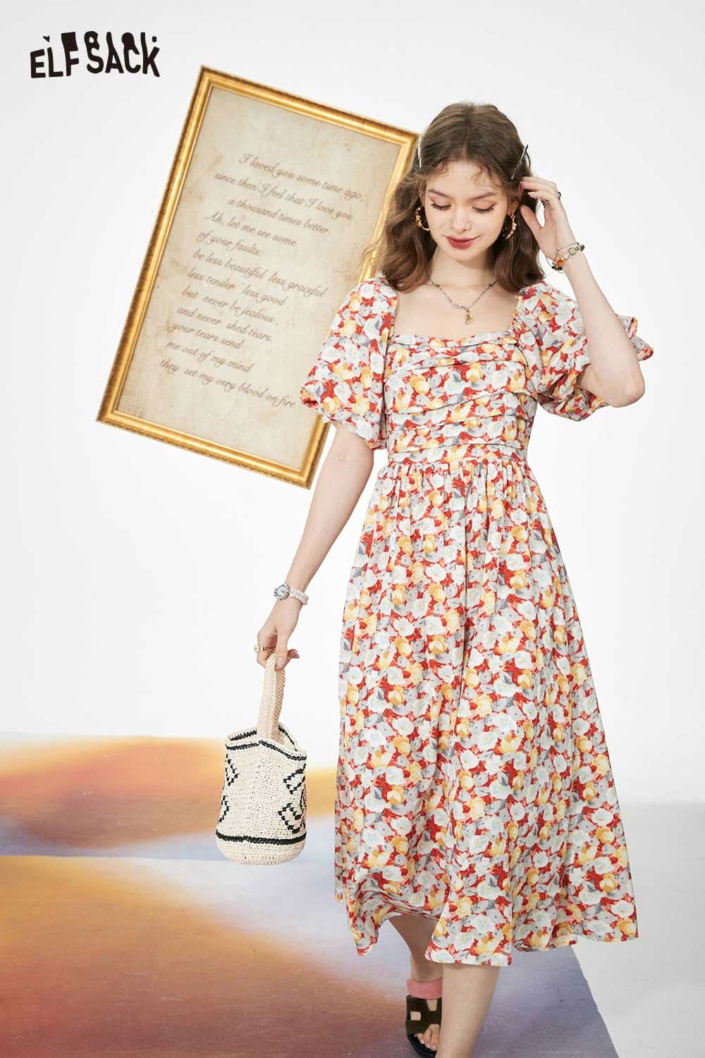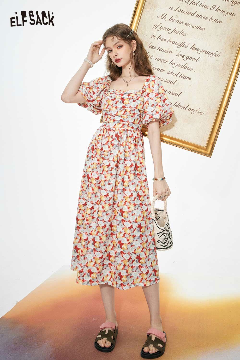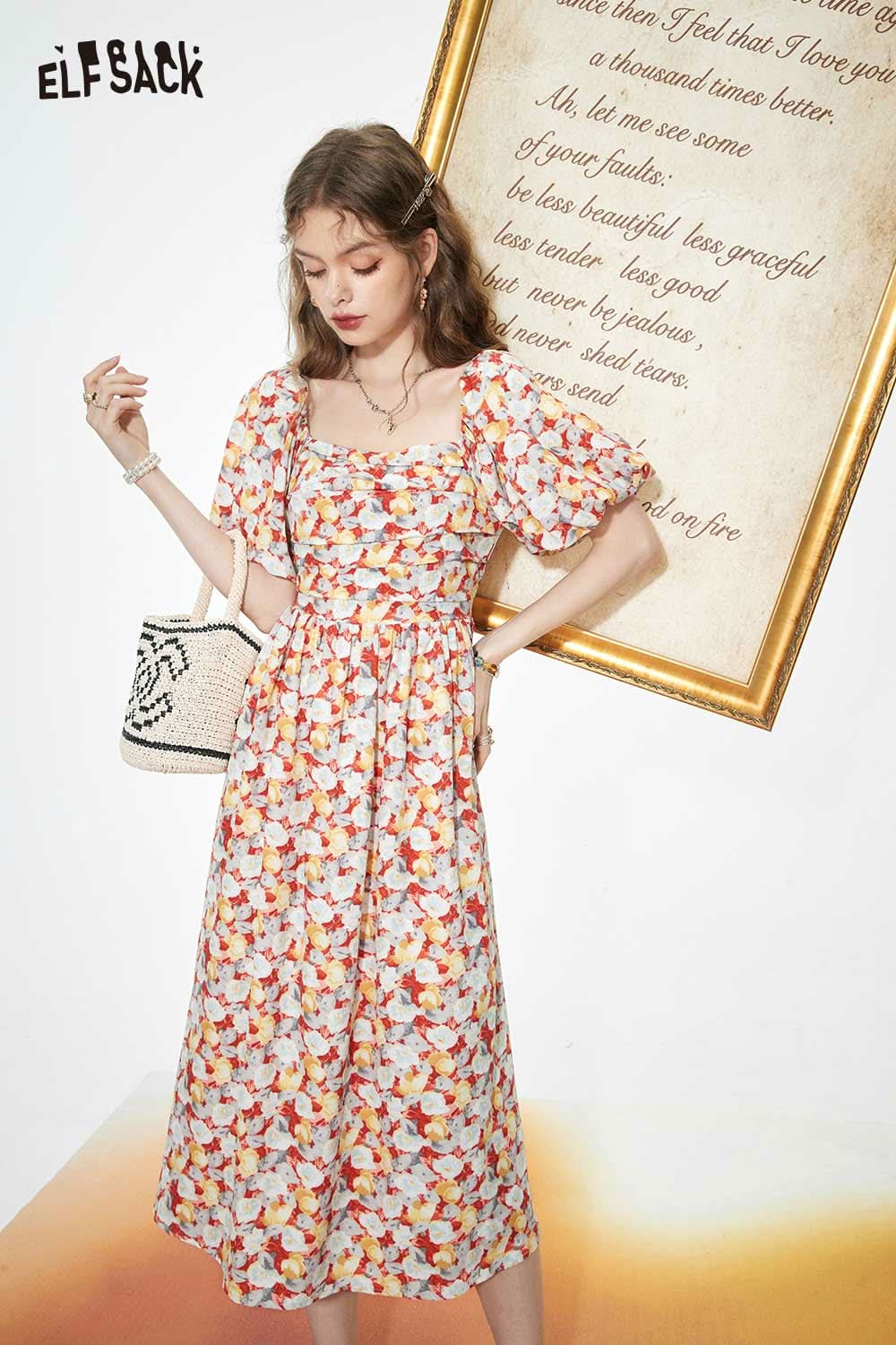 Light Slimming French Floral Waist Dress