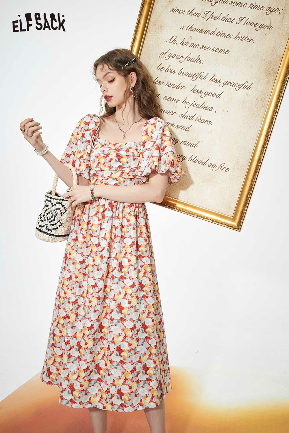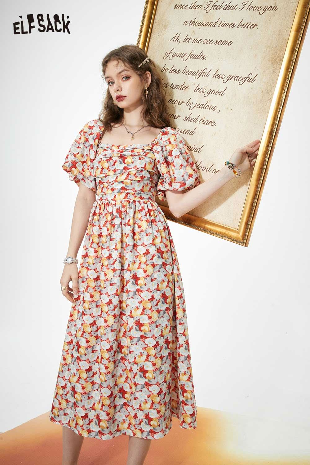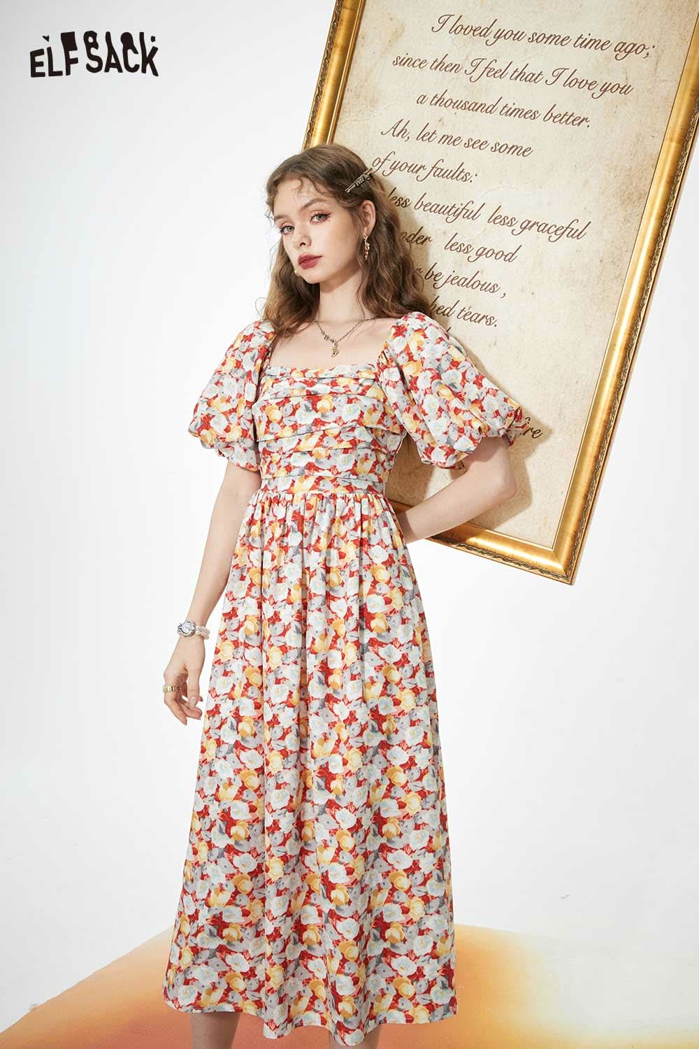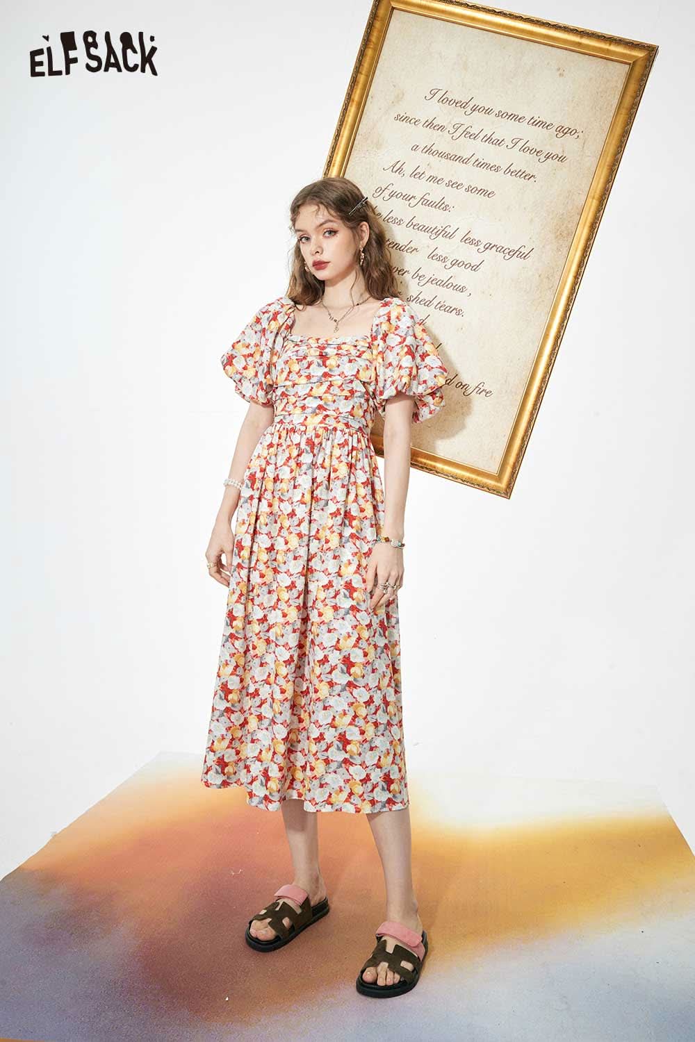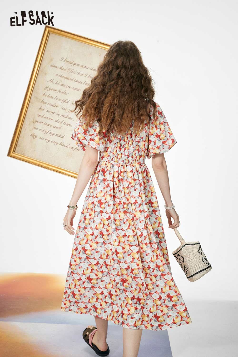 Light Slimming French Floral Waist Dress