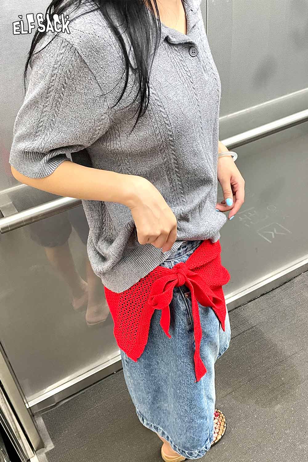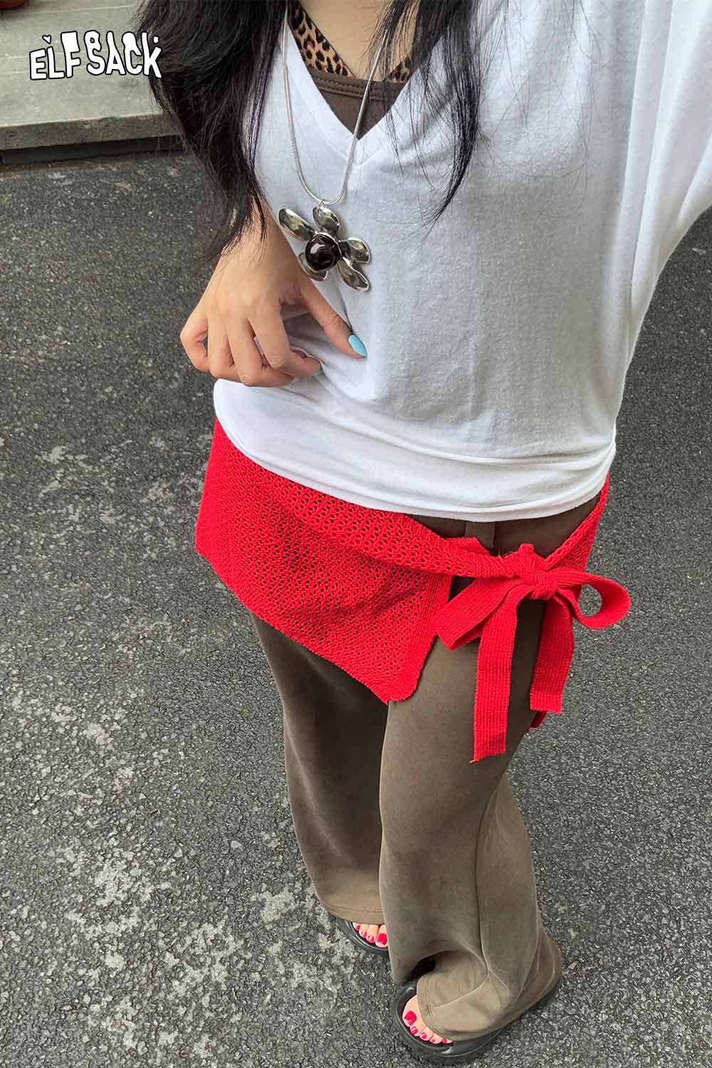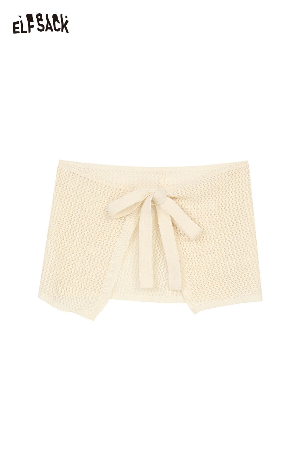 Cotton Blend Knit Skirt Detachable Waist Apron Openwork Detail