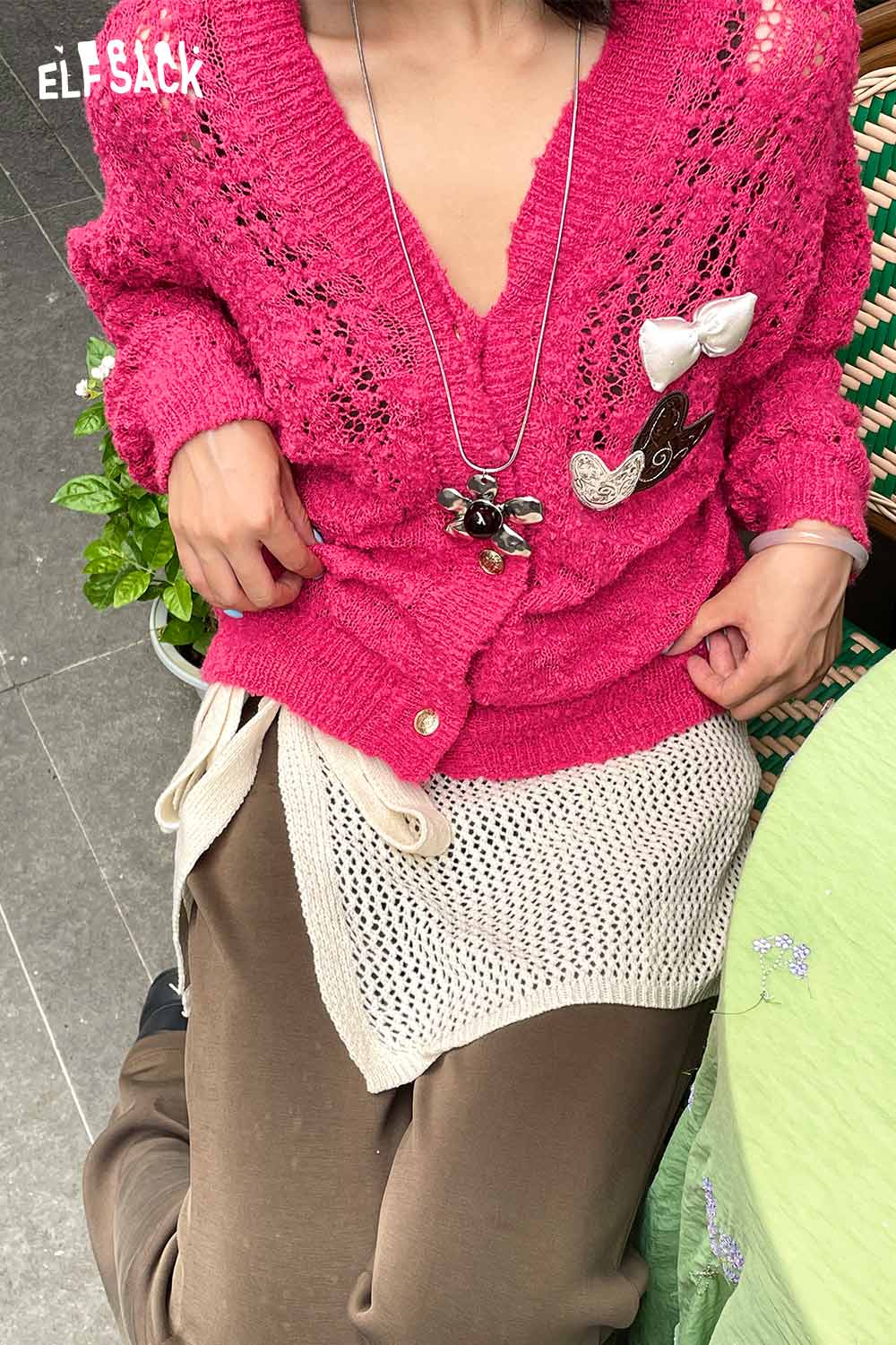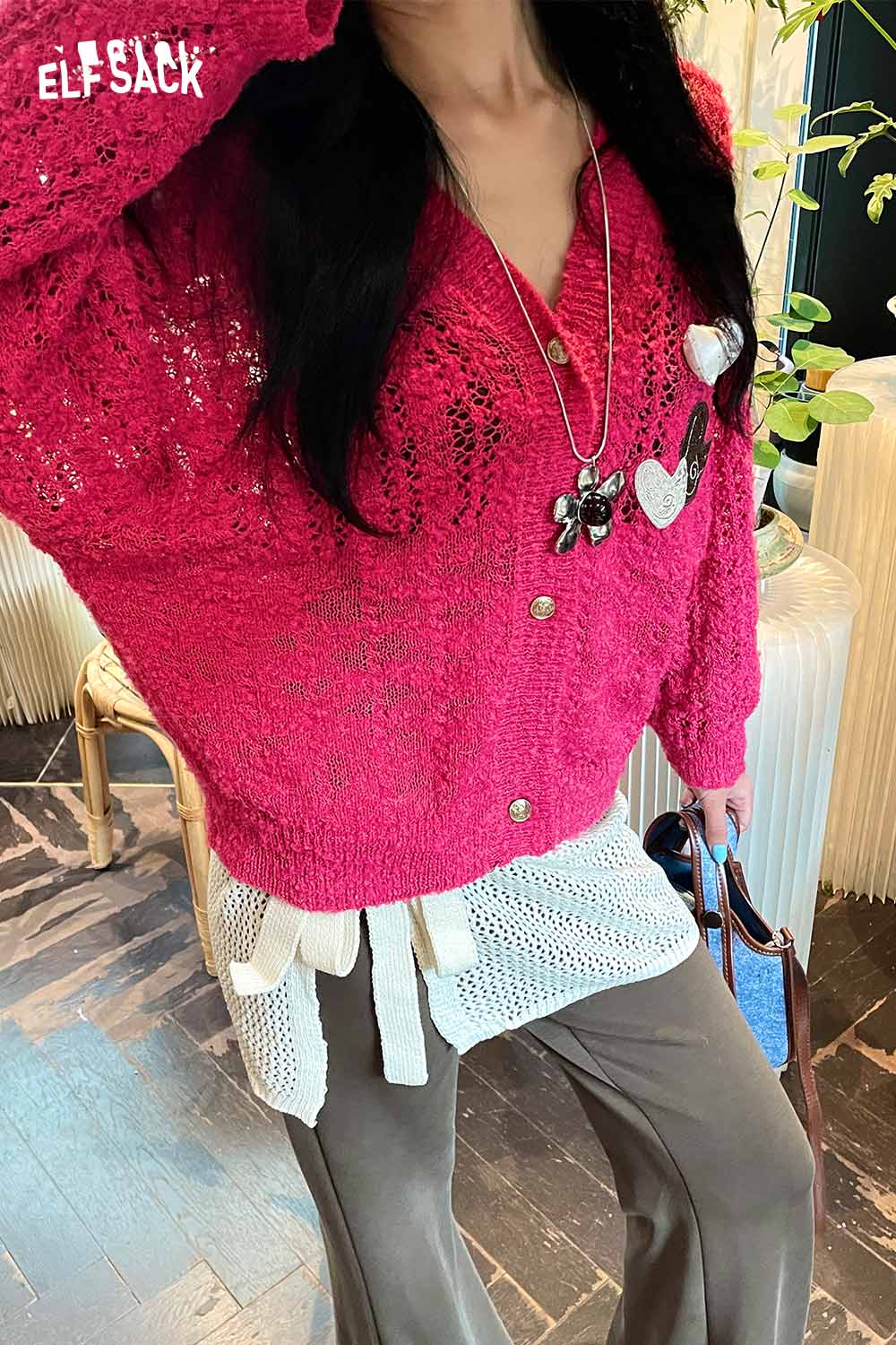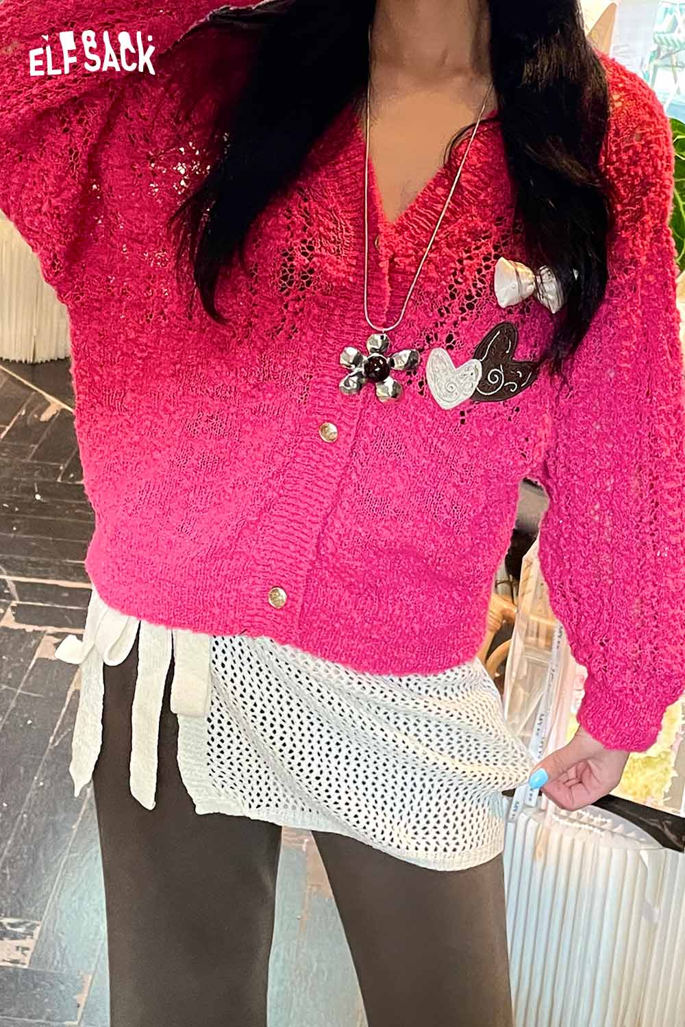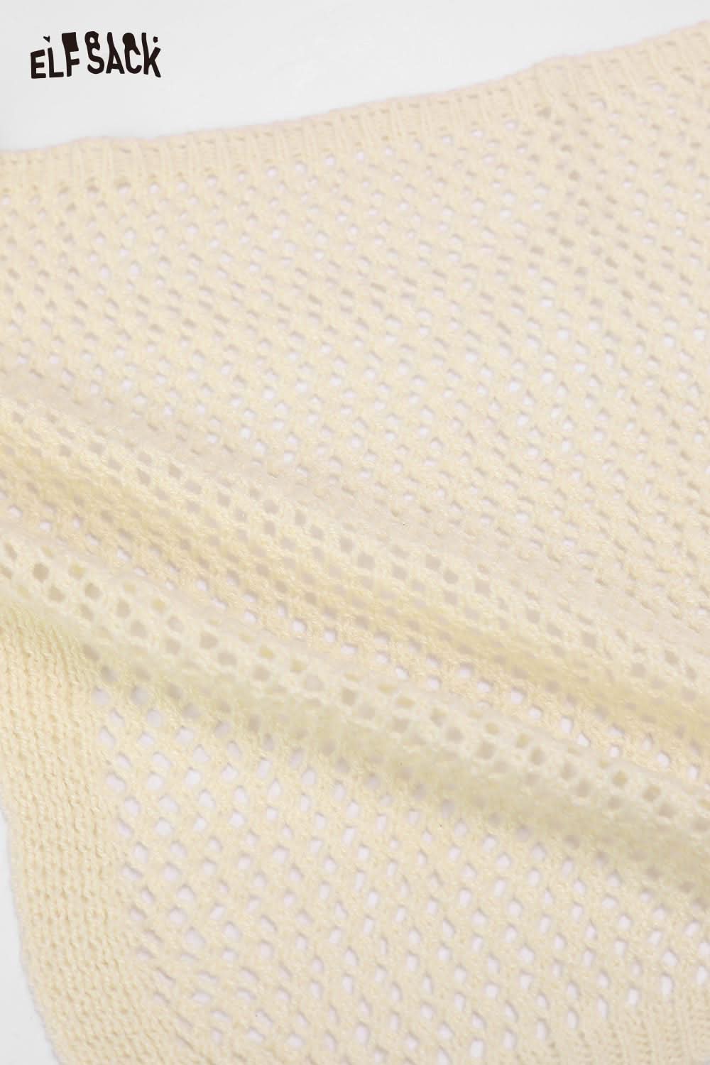 Cotton Blend Knit Skirt Detachable Waist Apron Openwork Detail