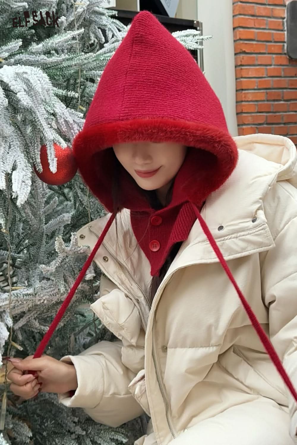Sweet and cute red fluffy knitted hat