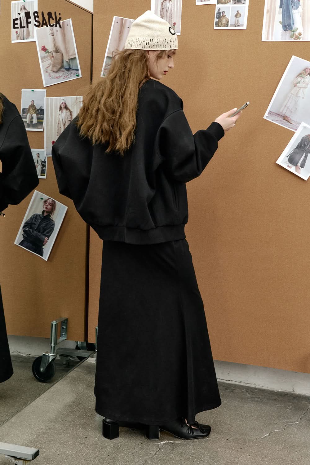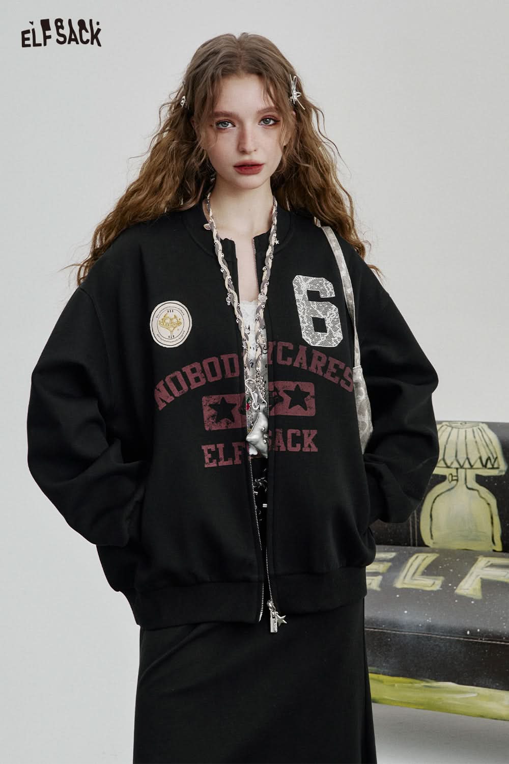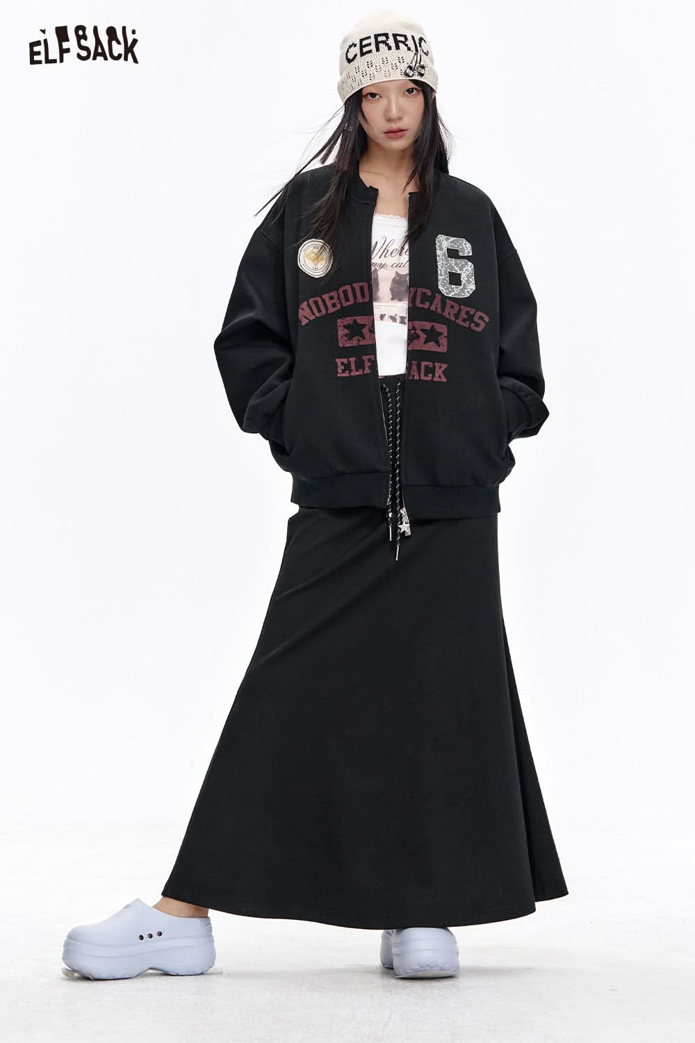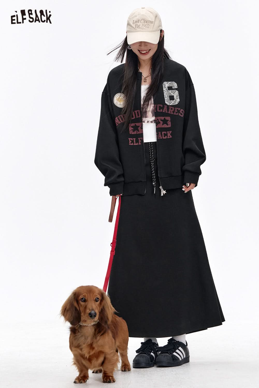 Sweet and cool black printed skirt baseball jacket two-piece suit female casual sports suit