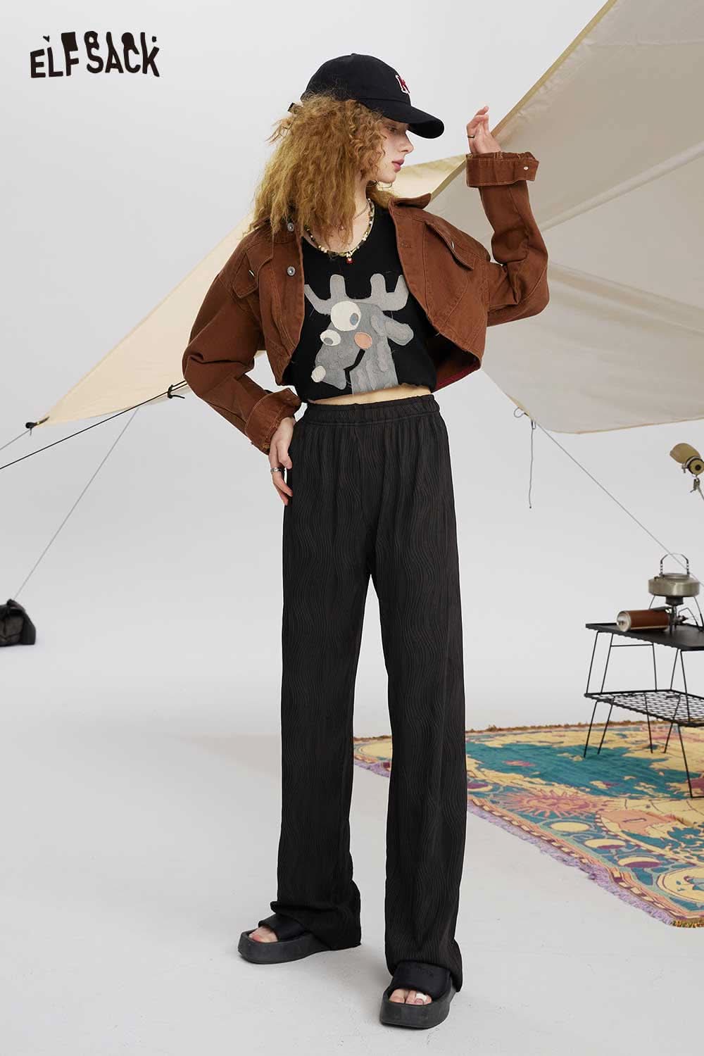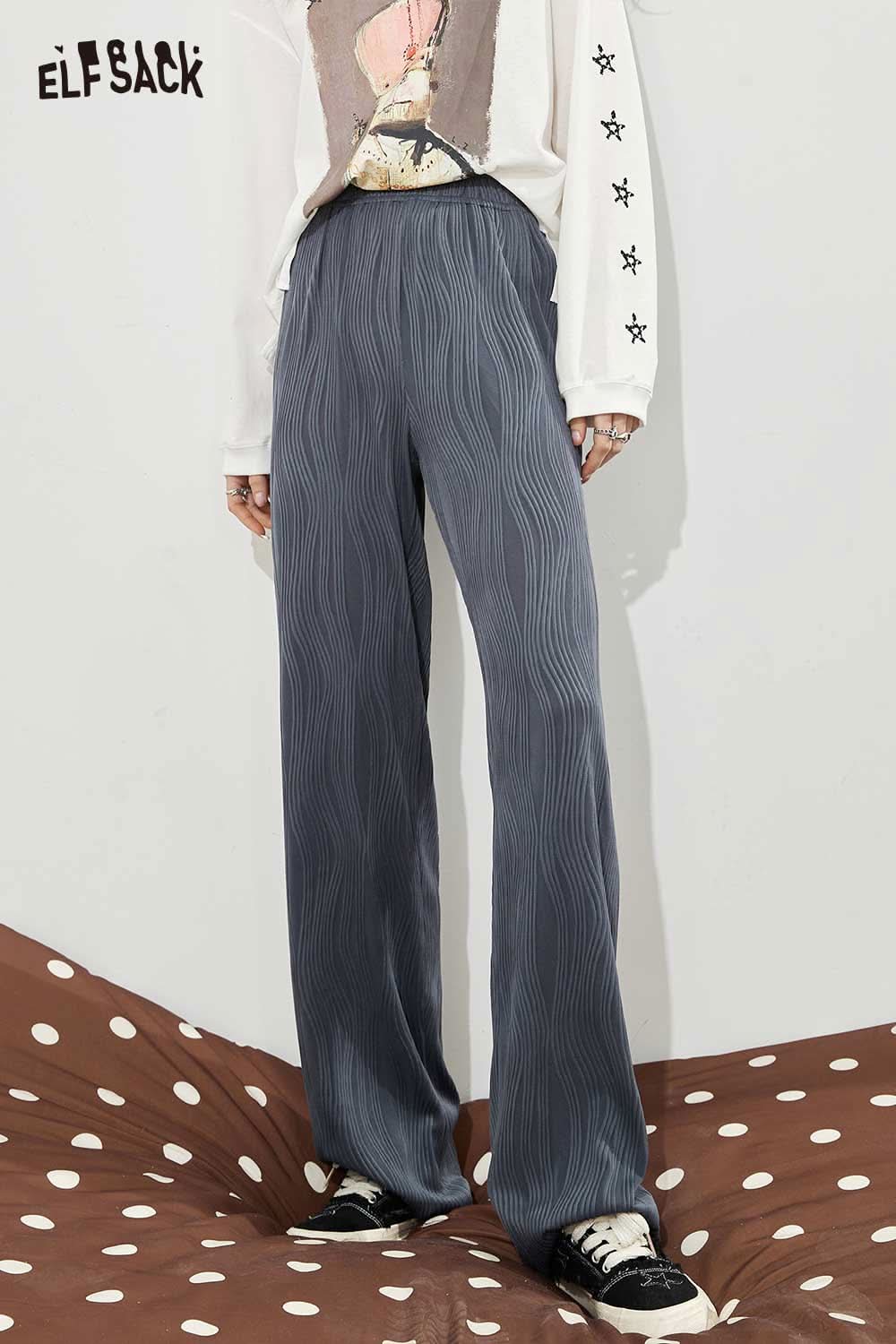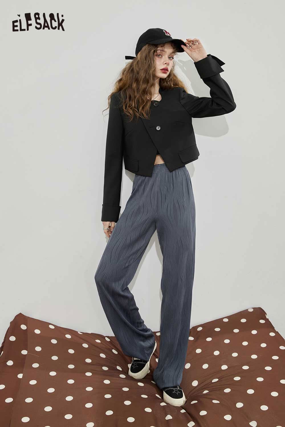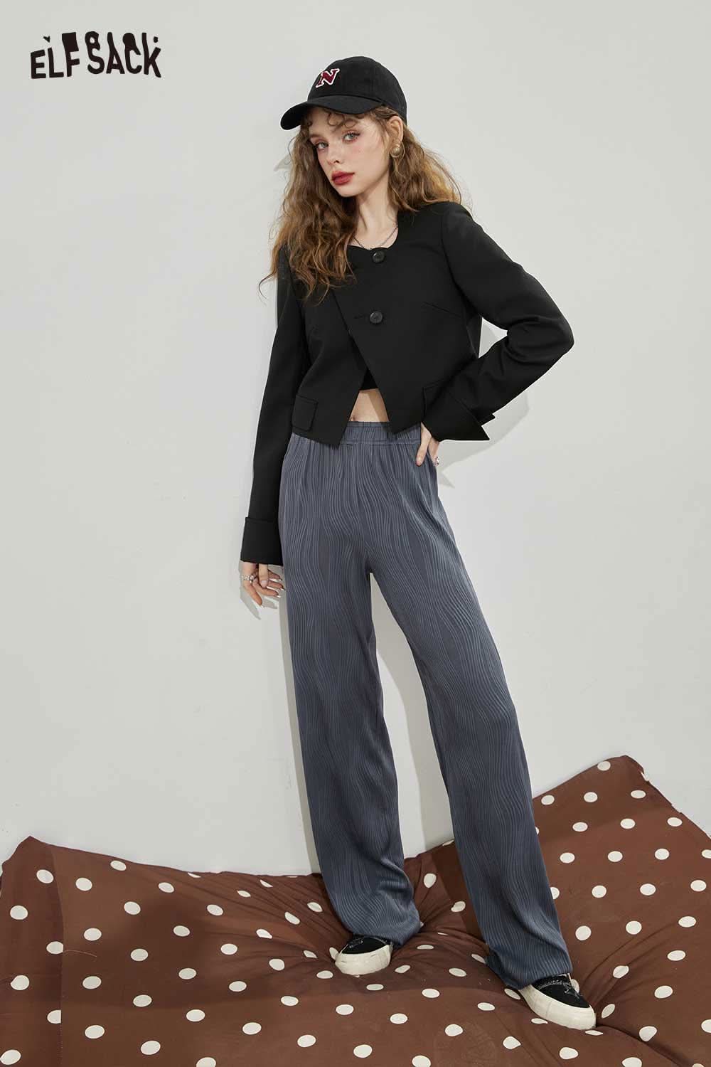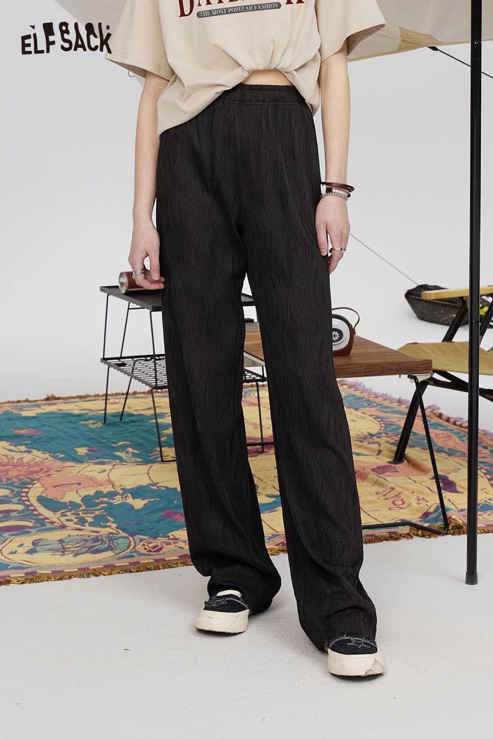 Soft Black Ribbed Draping Wide Leg Slim Pants