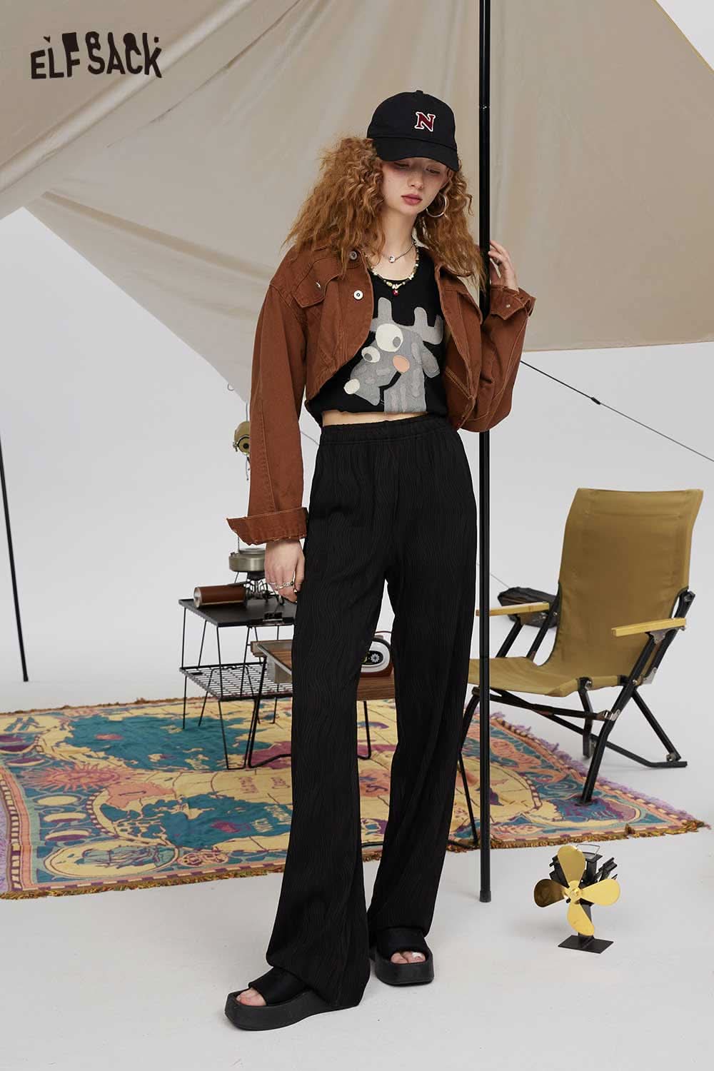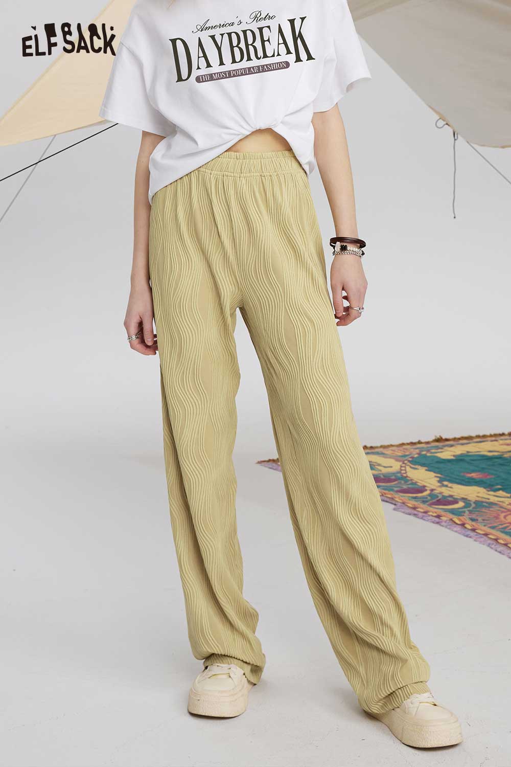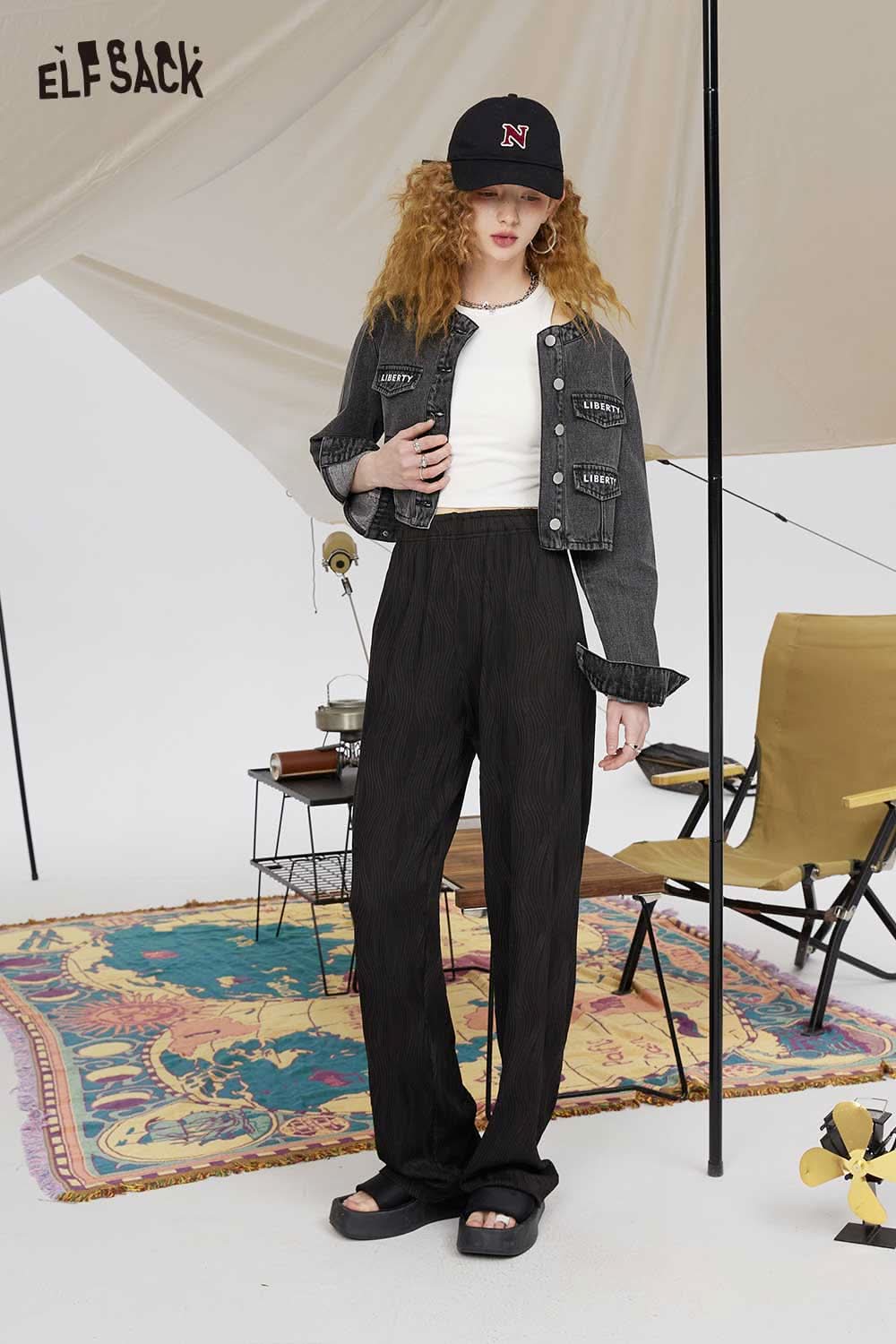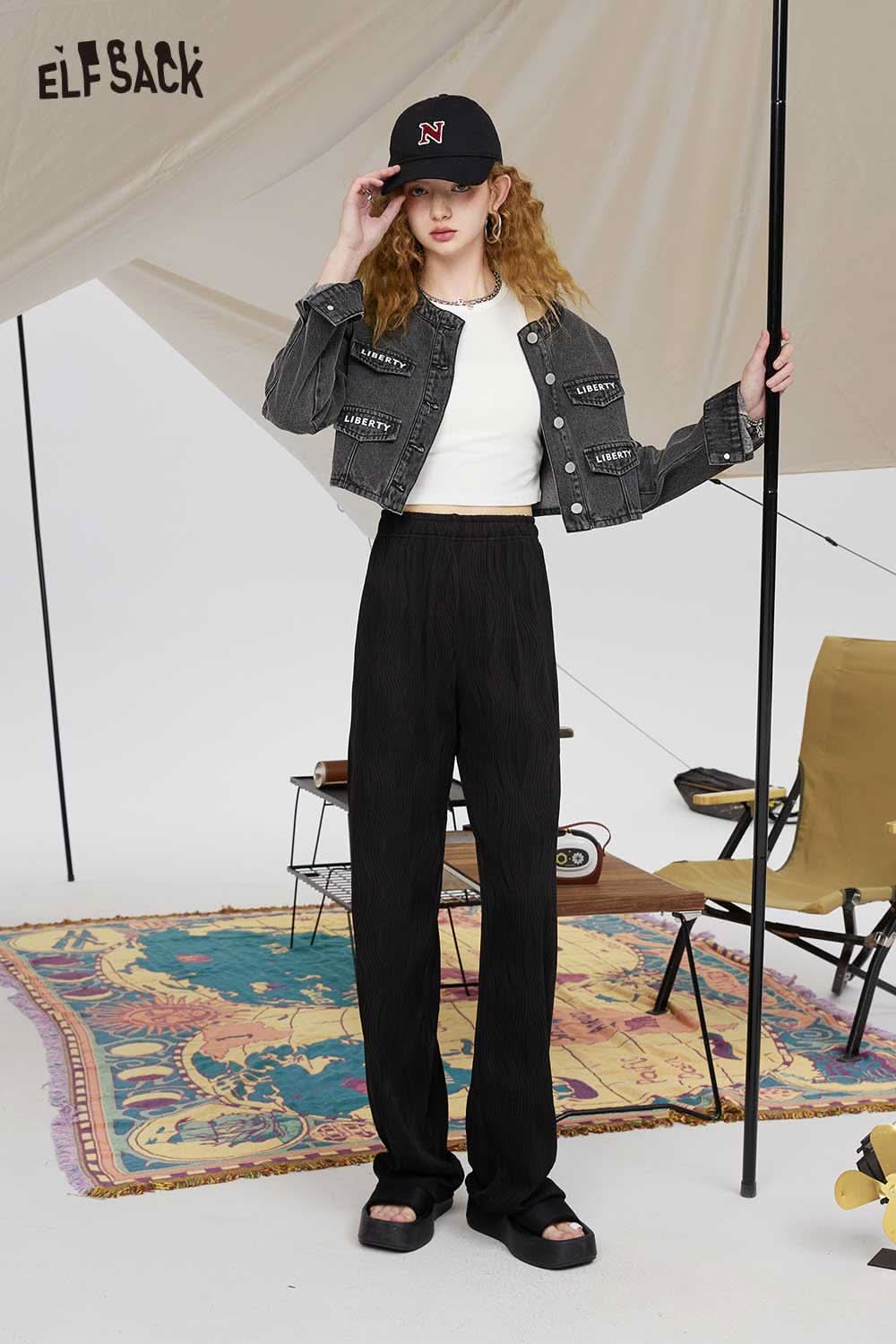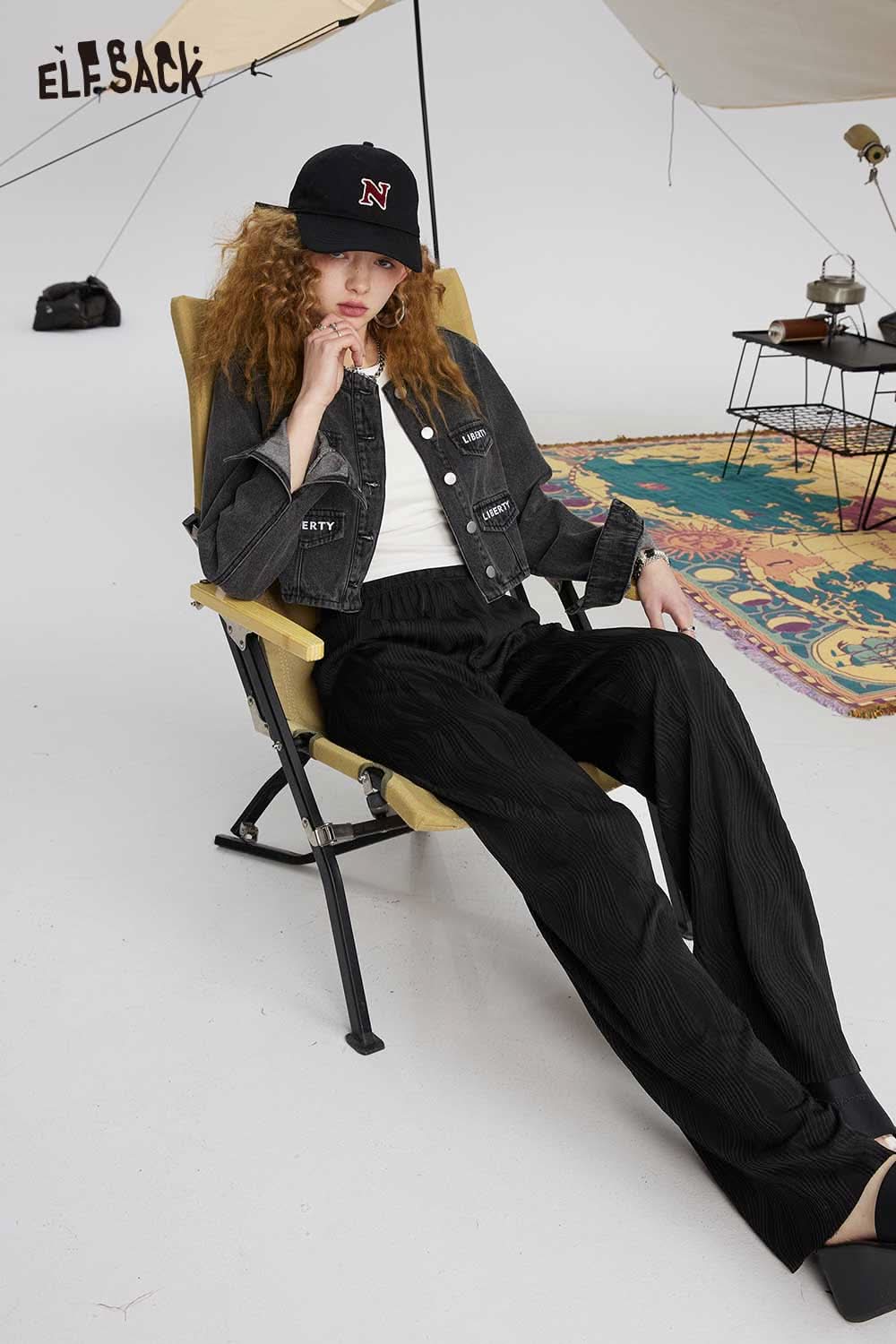 Soft Black Ribbed Draping Wide Leg Slim Pants