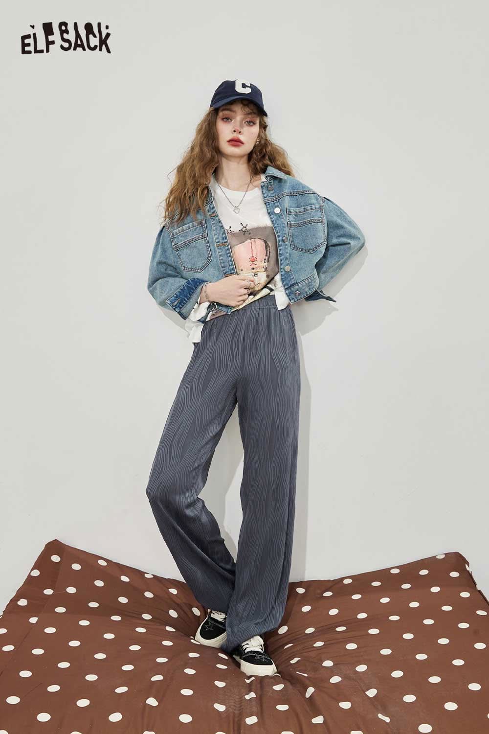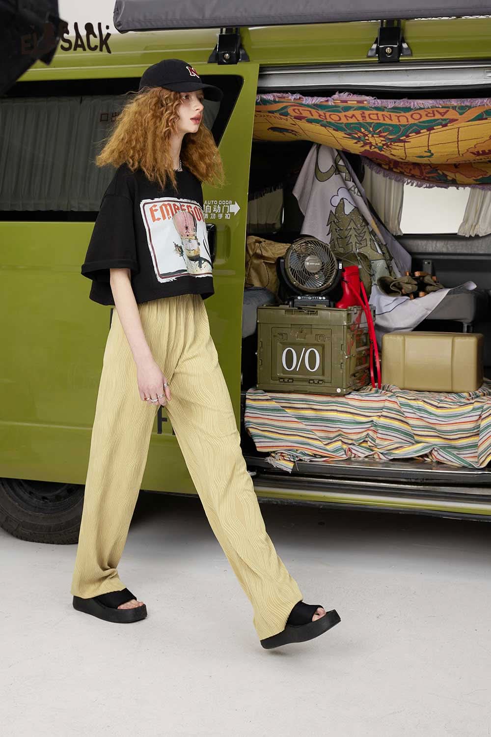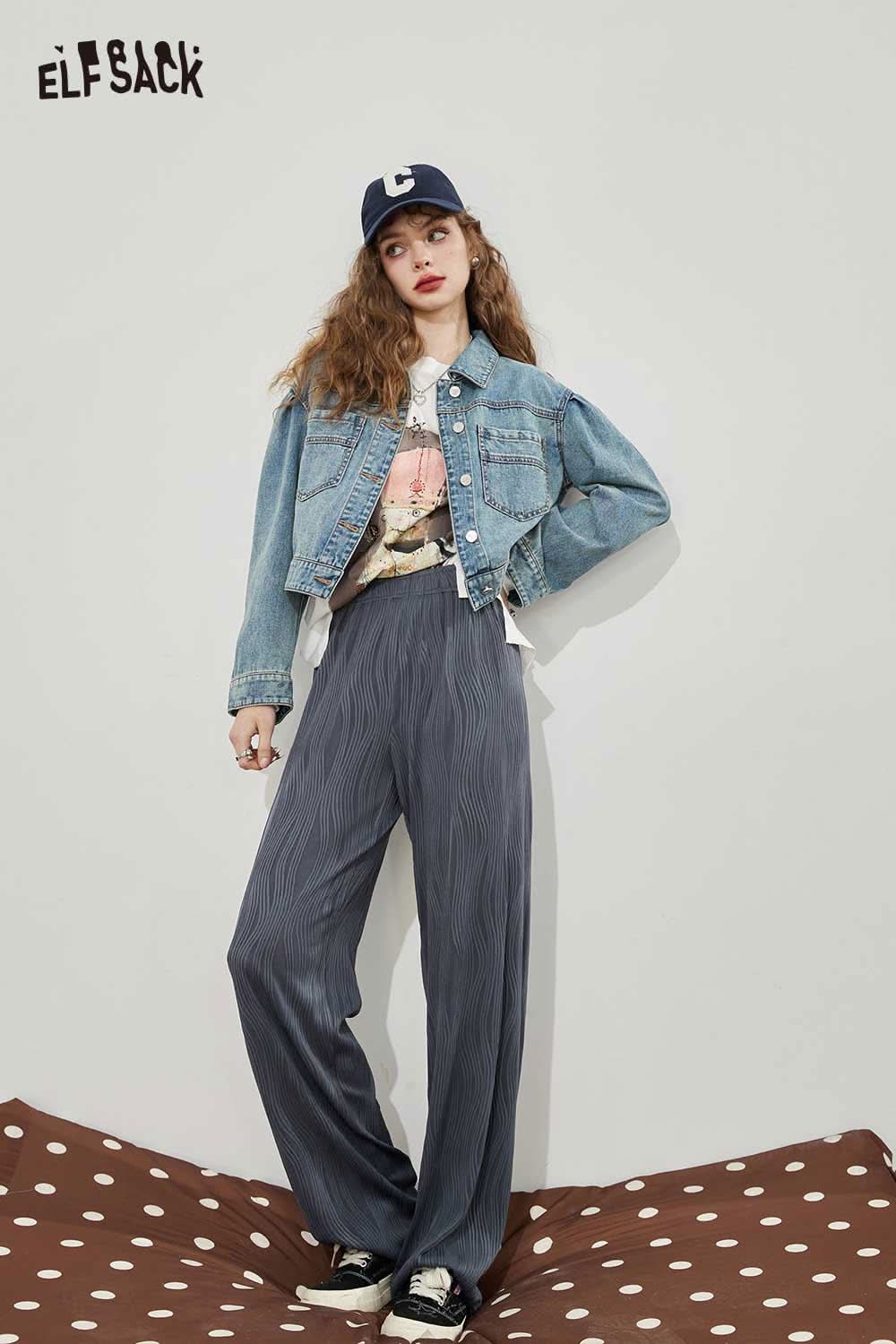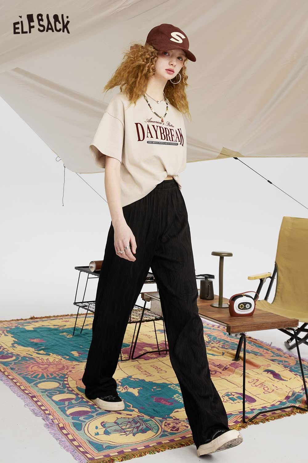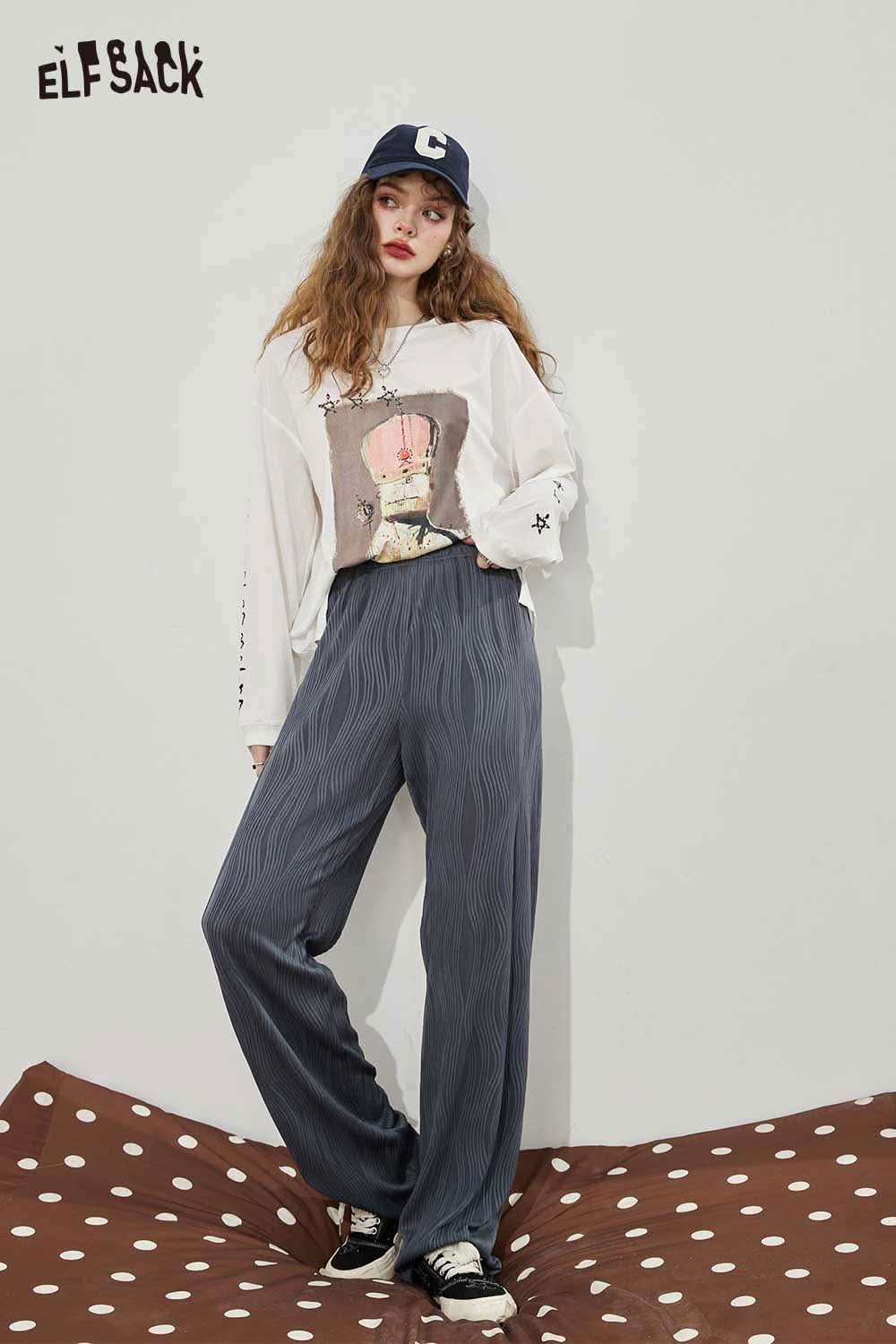 Soft Black Ribbed Draping Wide Leg Slim Pants