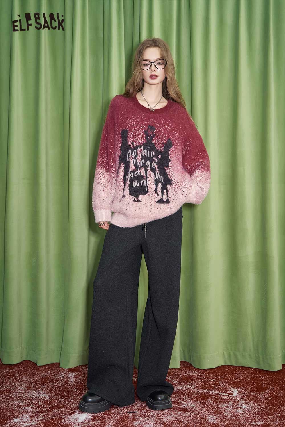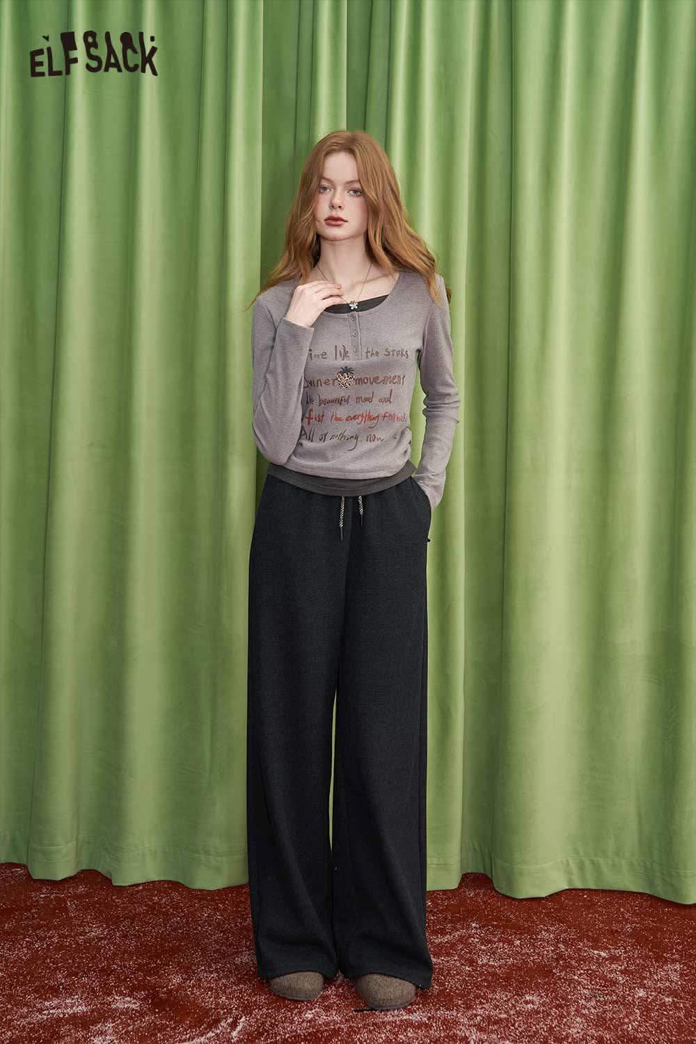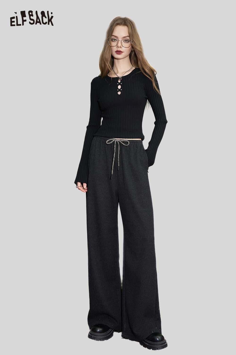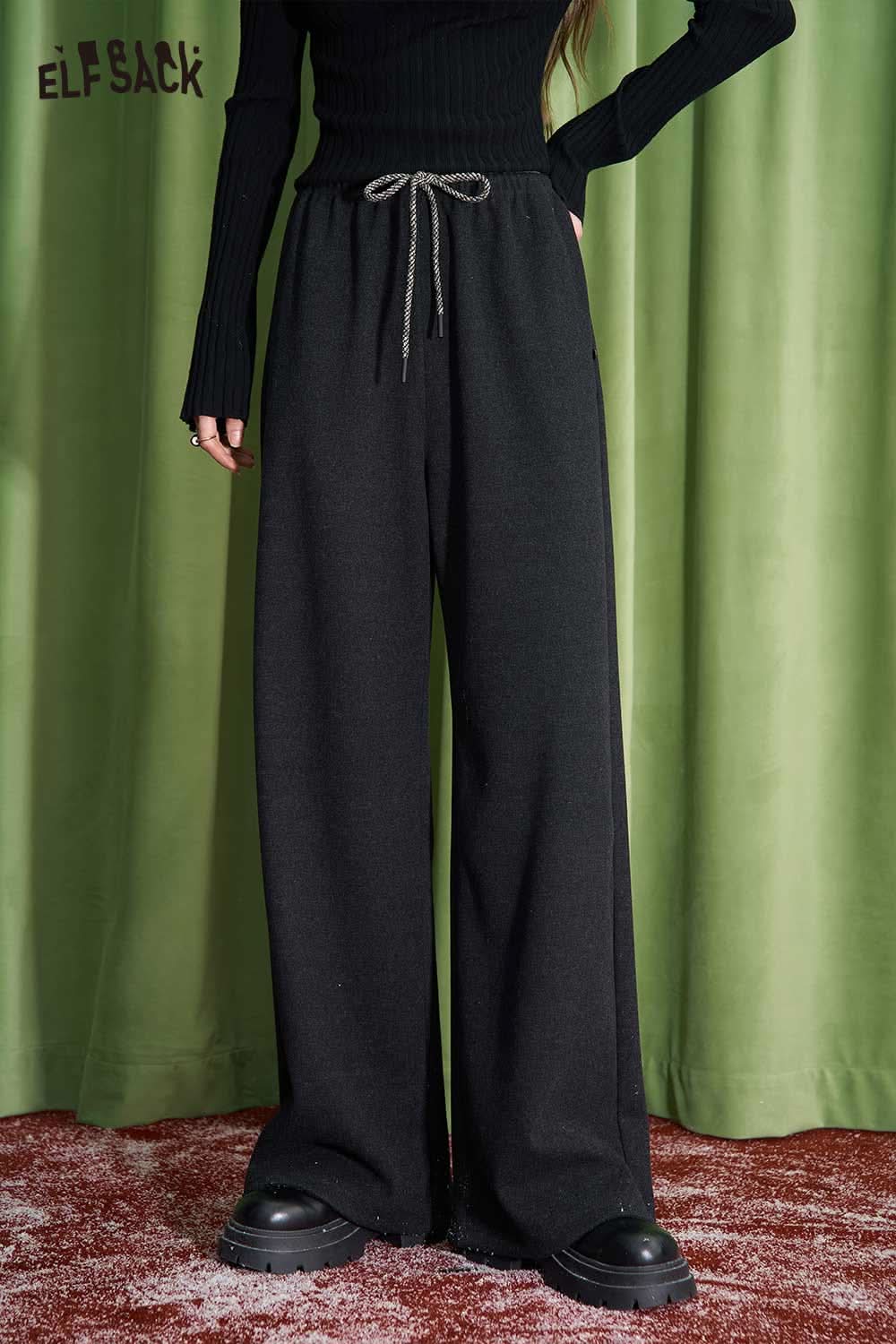 Soft Lazy Style Black Wide Leg Slimming Relaxed Pants