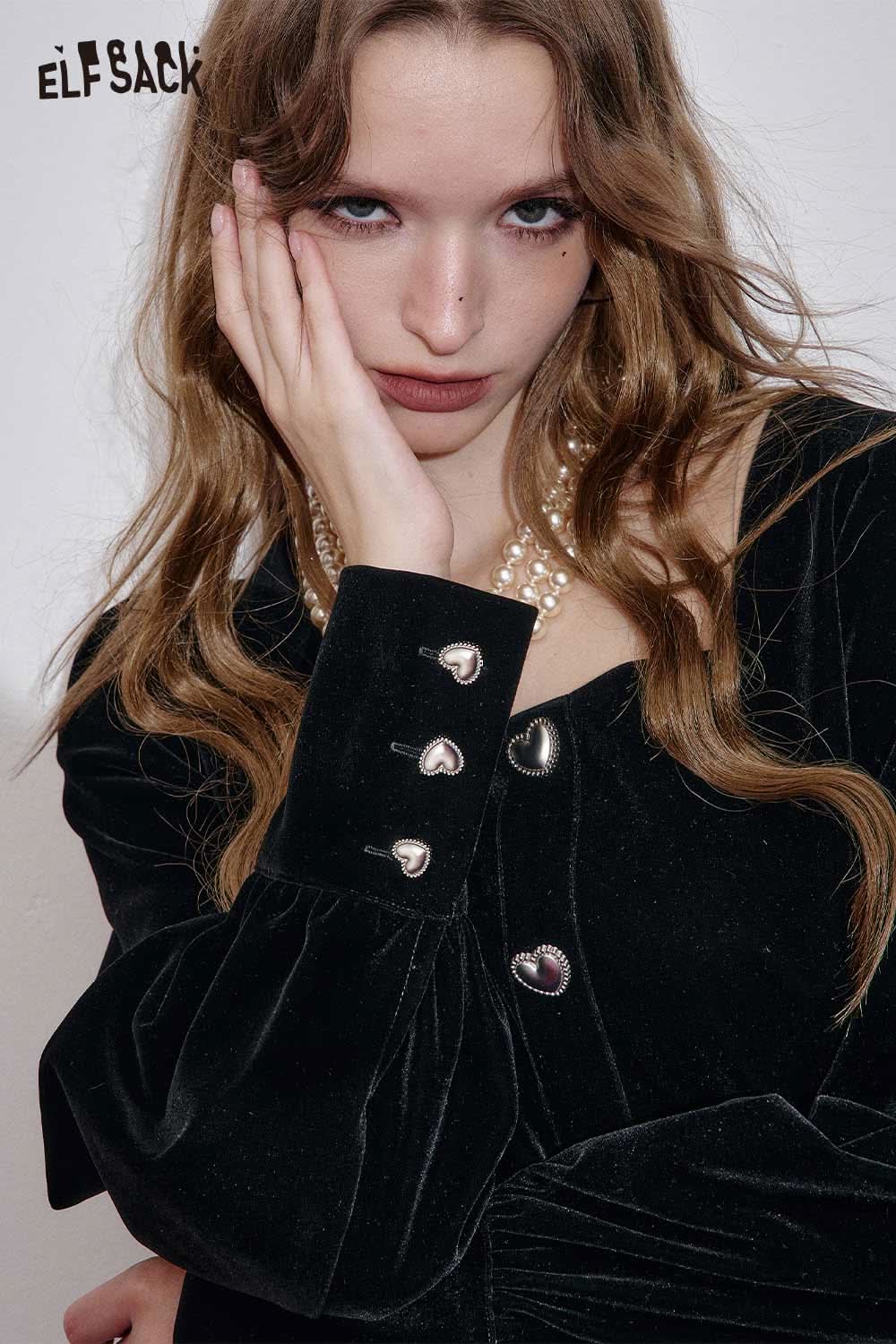 Stretch Poplin Square Neck Puffed Sleeves Dress