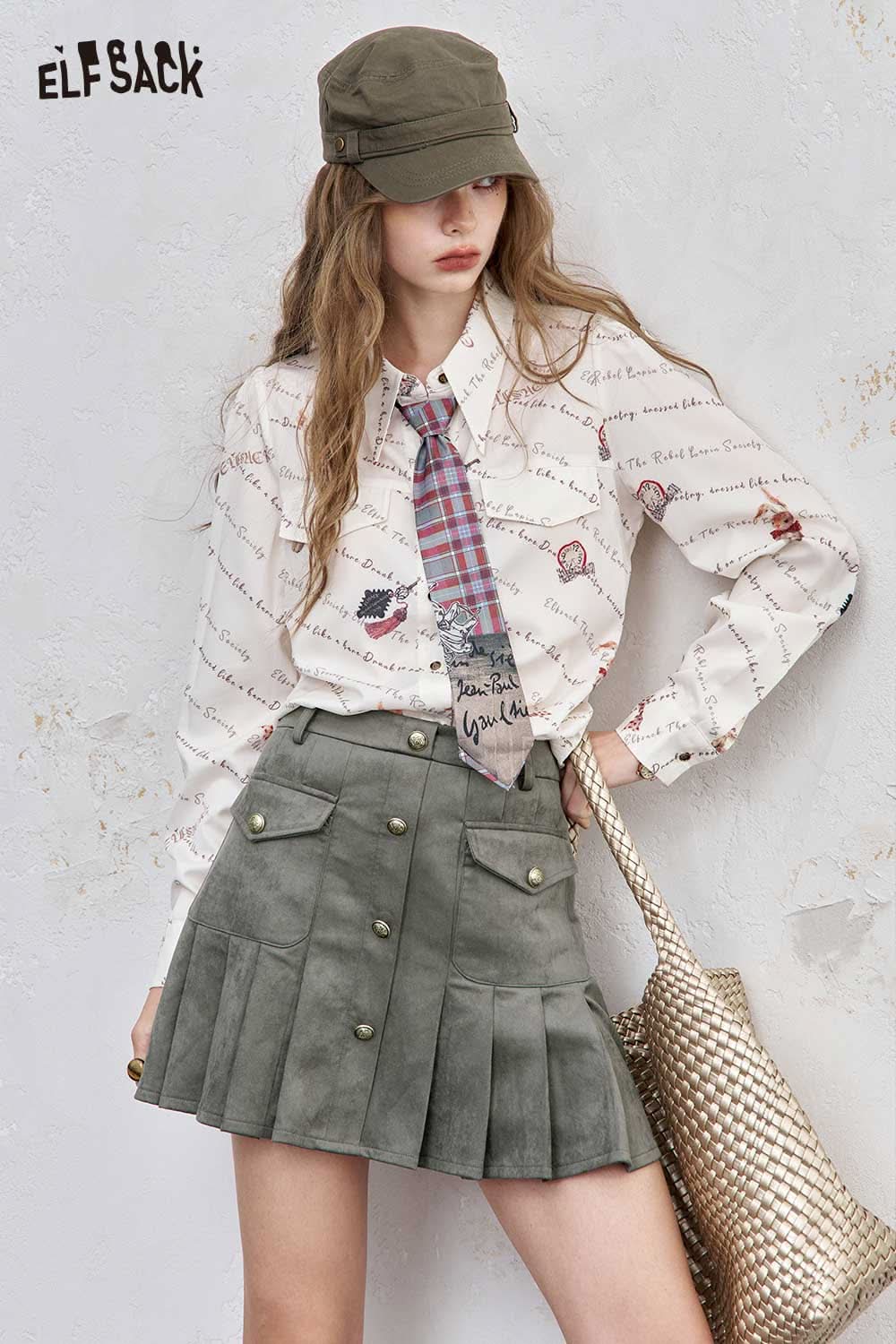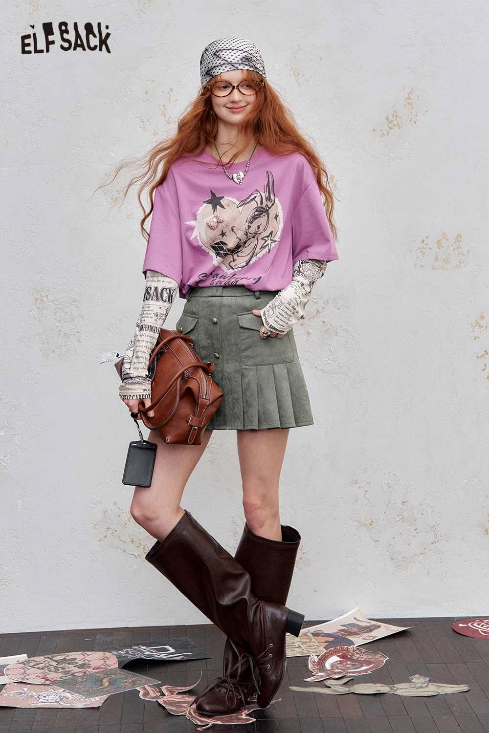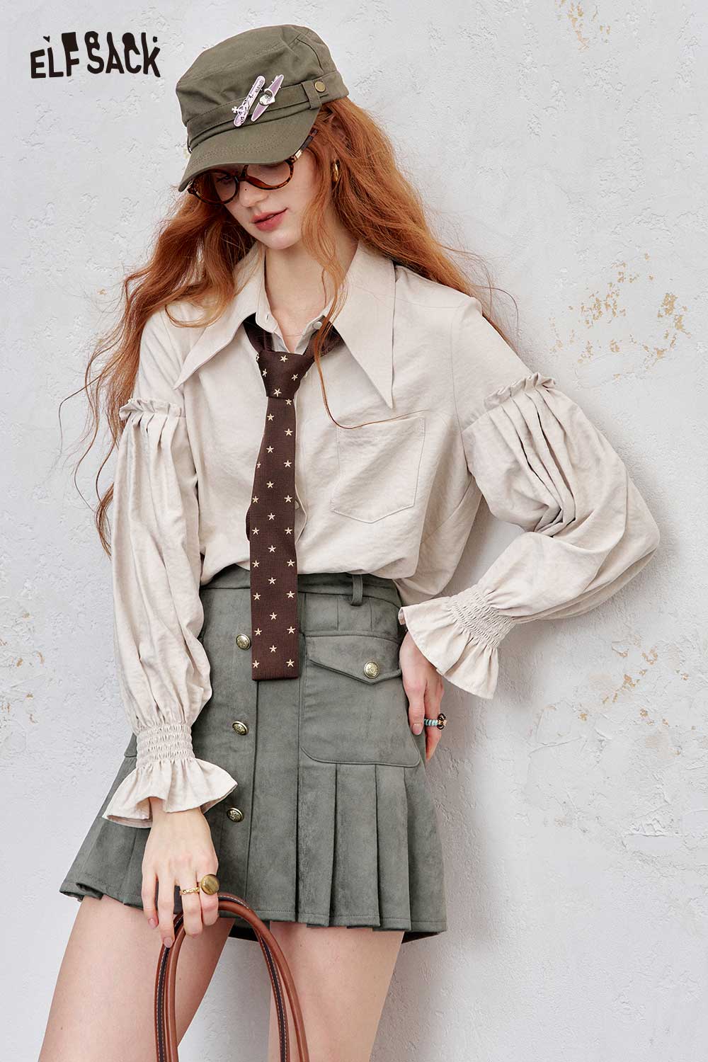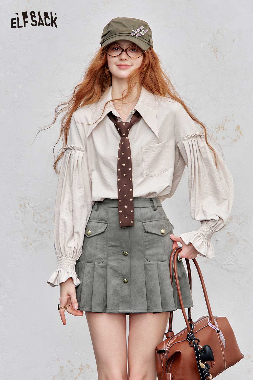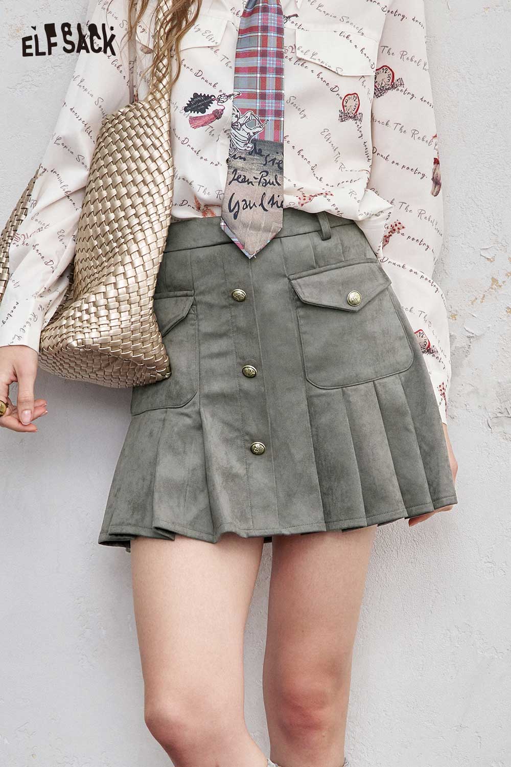 Stretch Cotton Blend High Waisted Soft Pleated A Line Mini Skirt